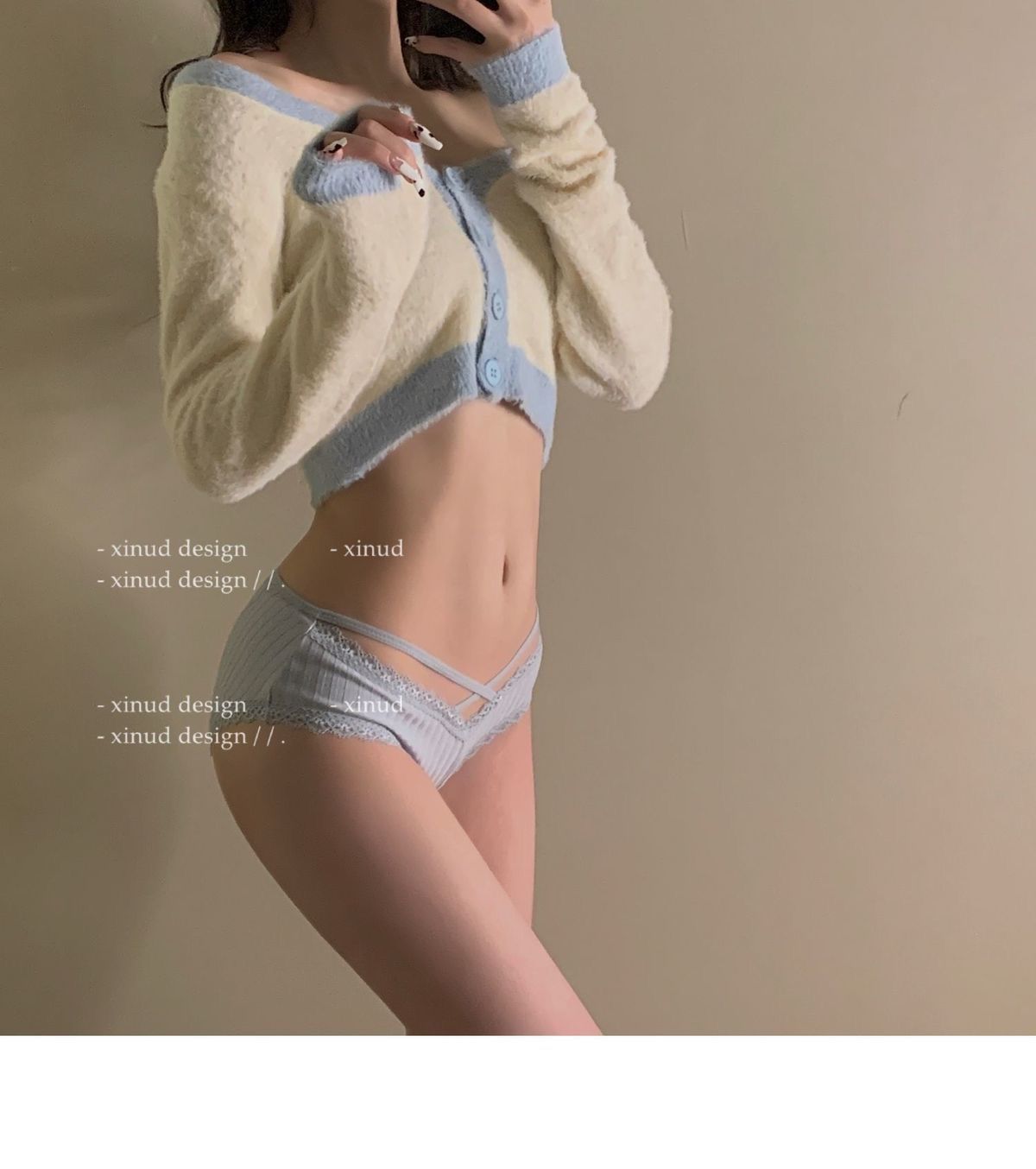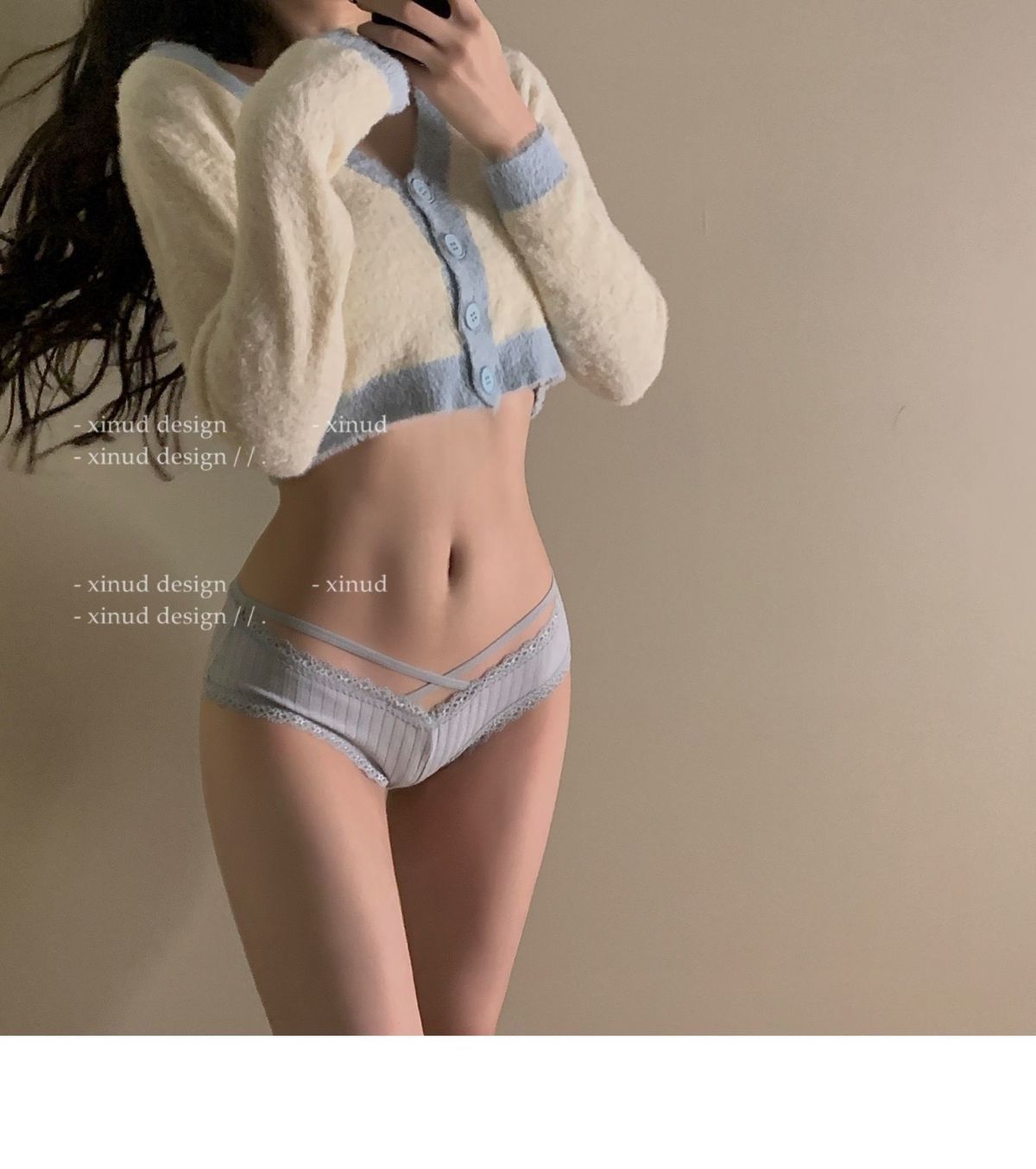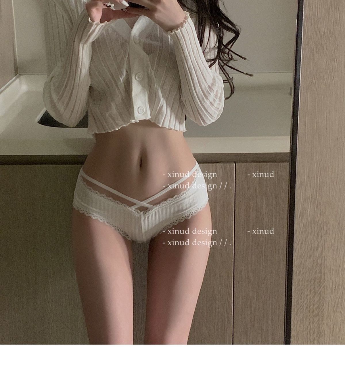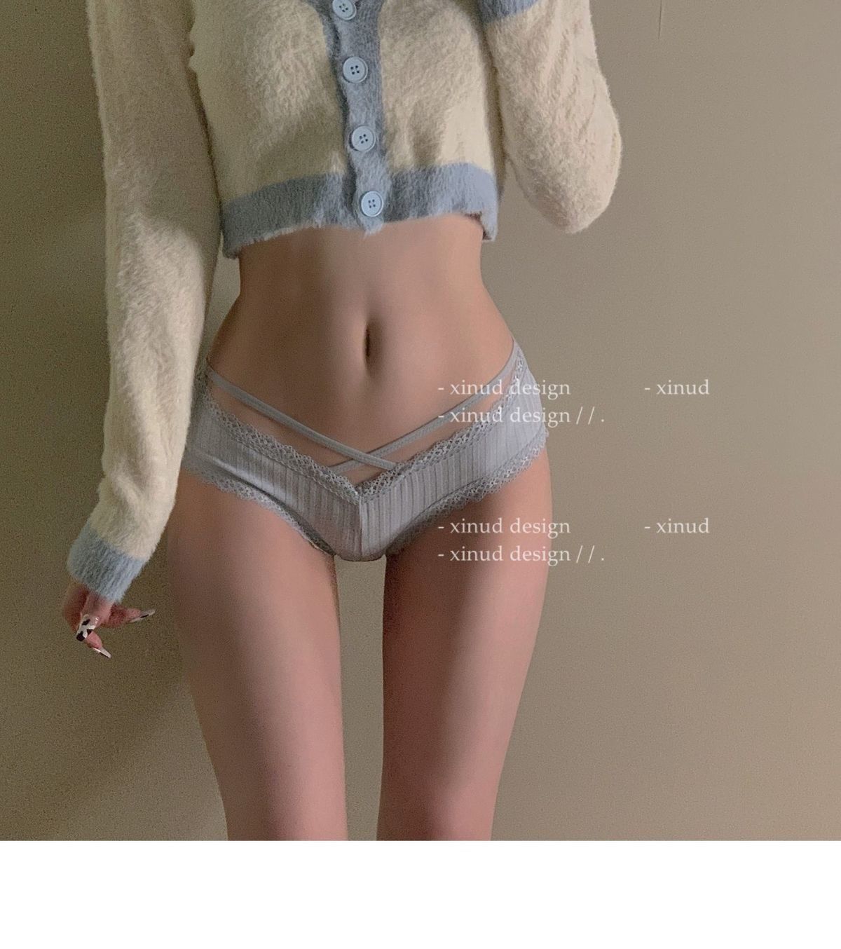 【3条优惠装】黛唯梵韩版交叉绑带性感女士内裤少女螺纹棉蕾丝边诱惑舒适三角裤底裤七夕情人节