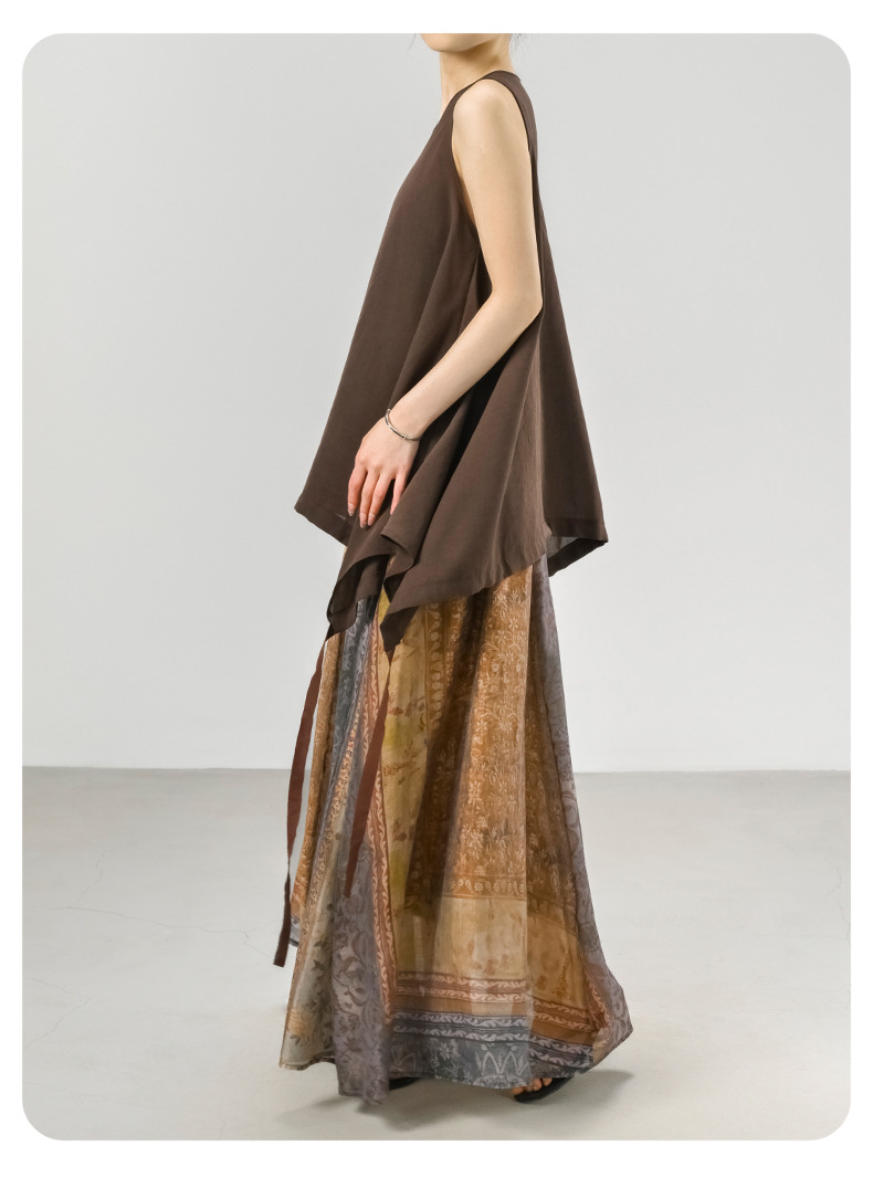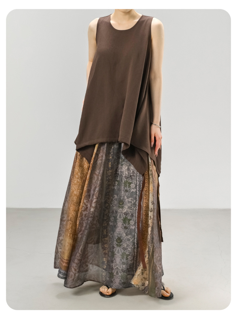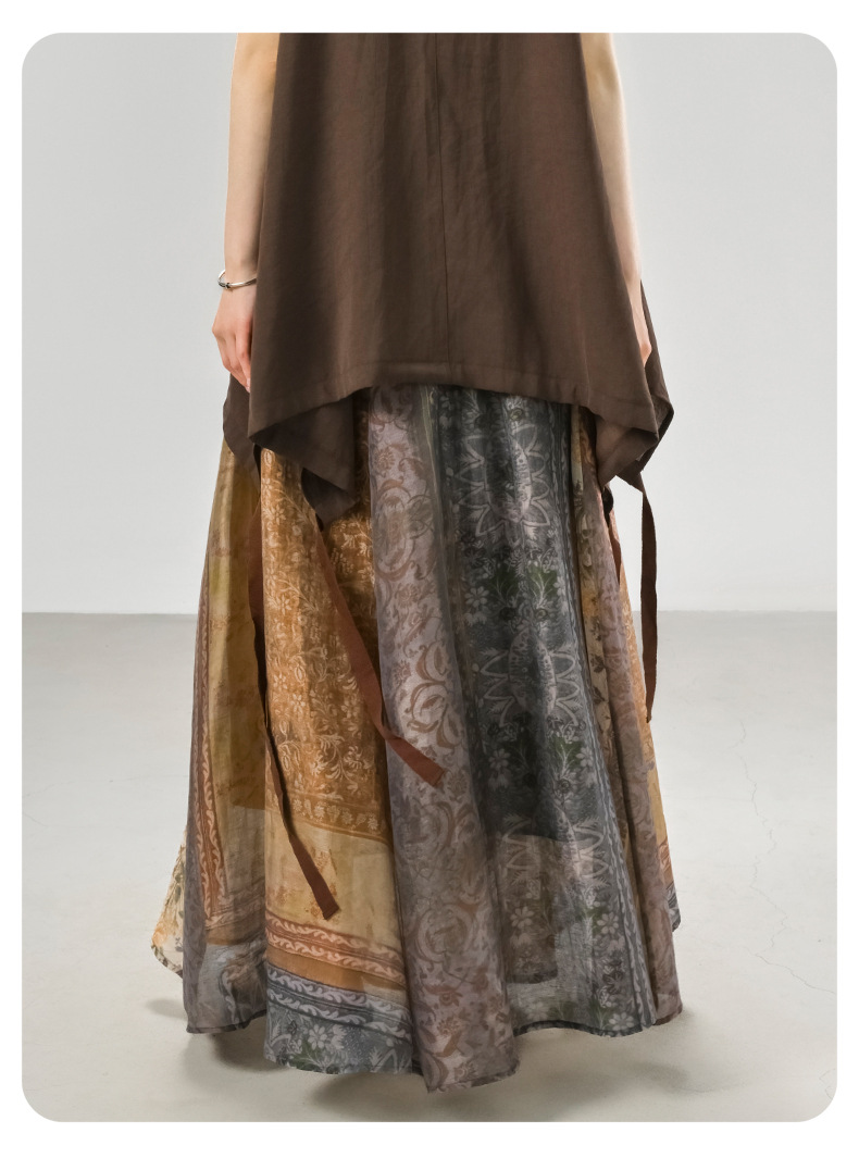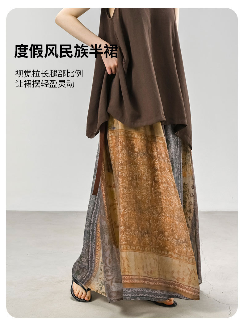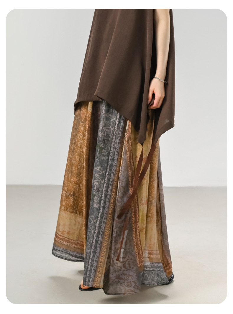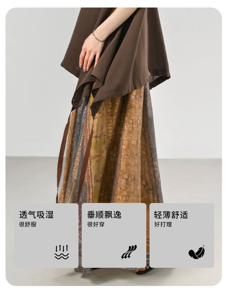 【莱赛尔﹢麻】不规则拼接净腰内衬长款天丝A字裙