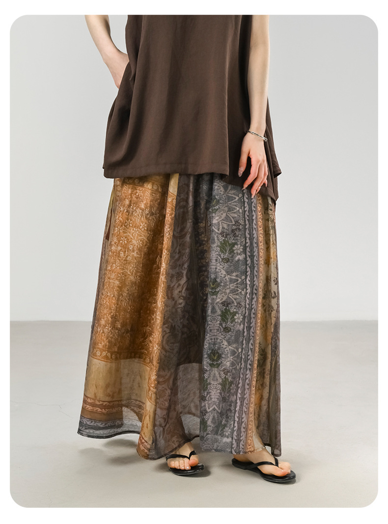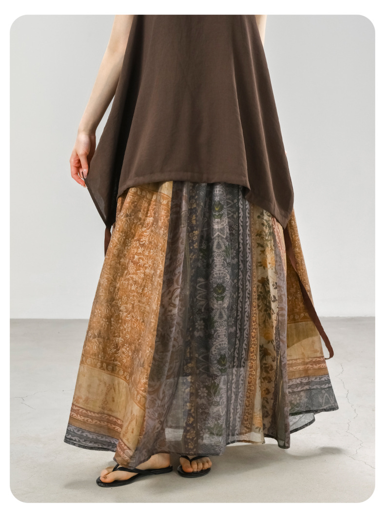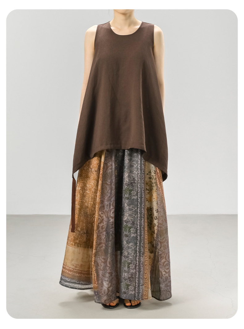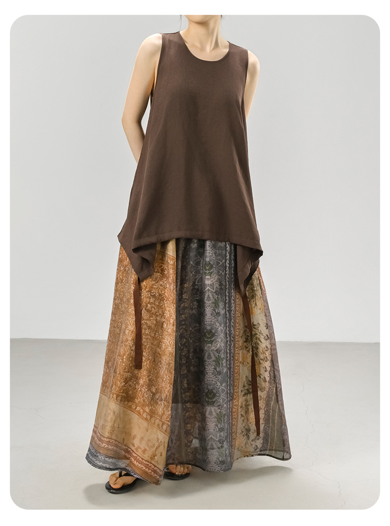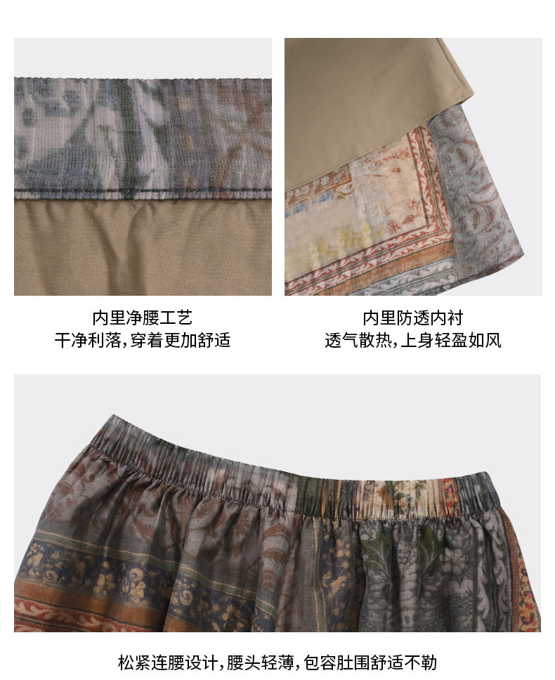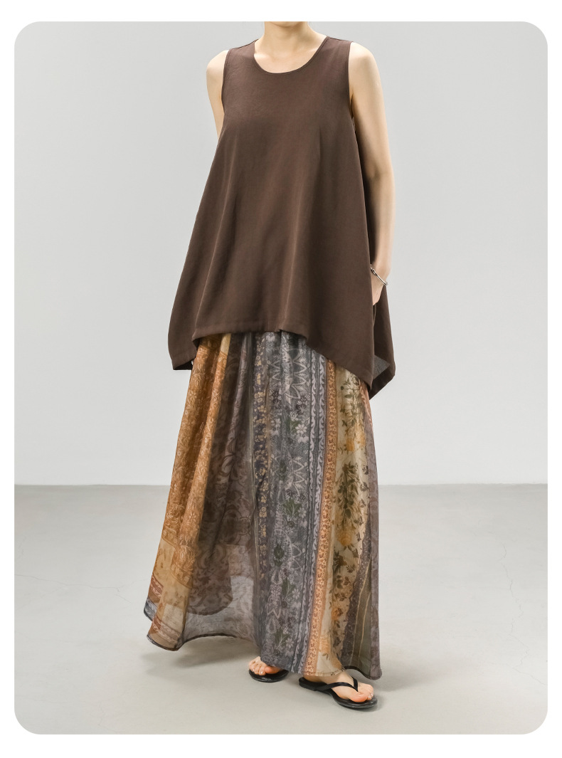 【莱赛尔﹢麻】不规则拼接净腰内衬长款天丝A字裙