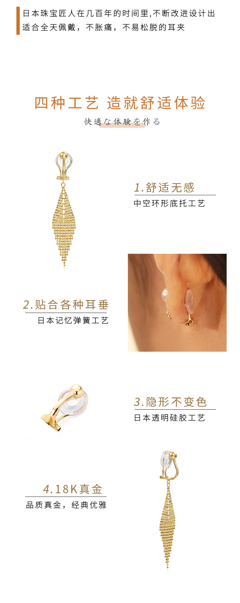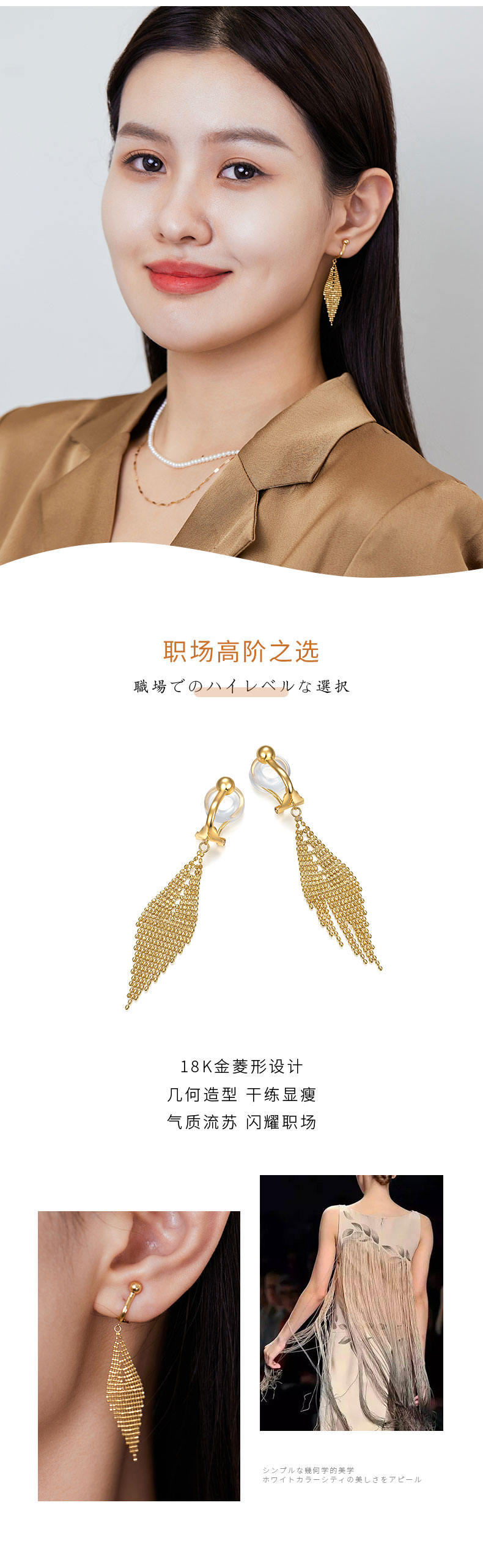 【天猫同款】悦甄 18K素金菱形流苏耳夹