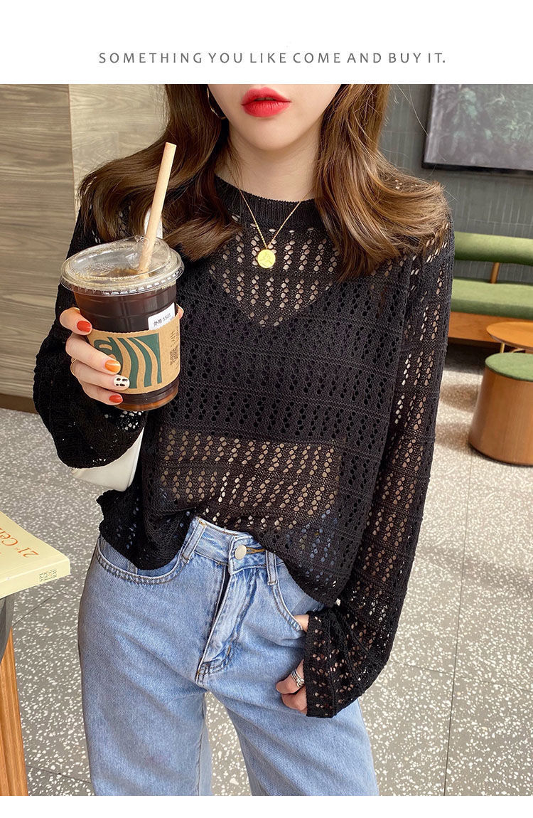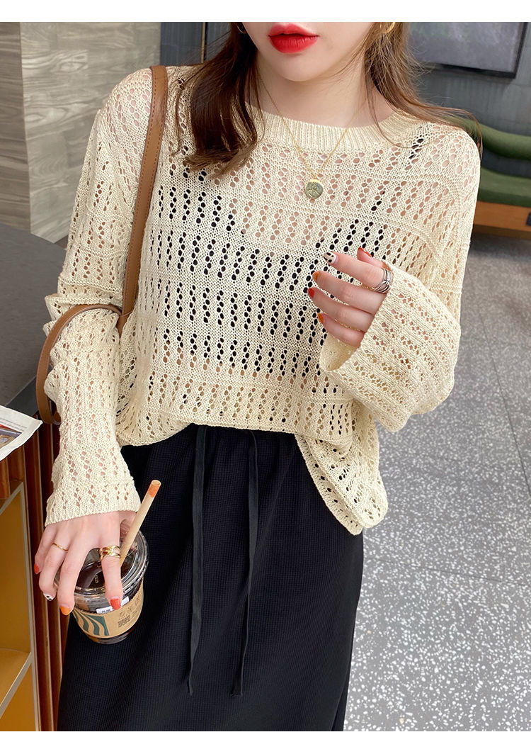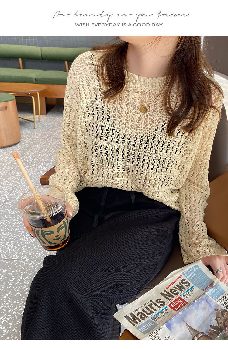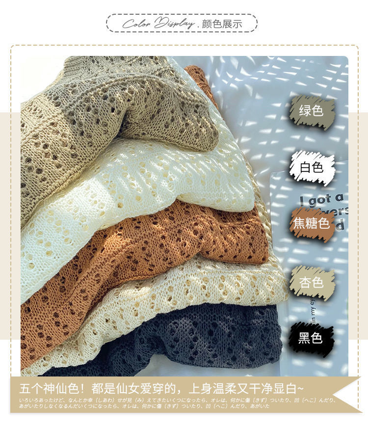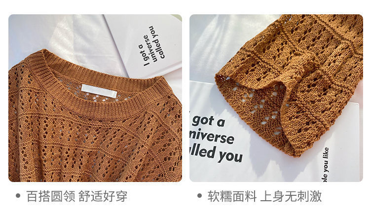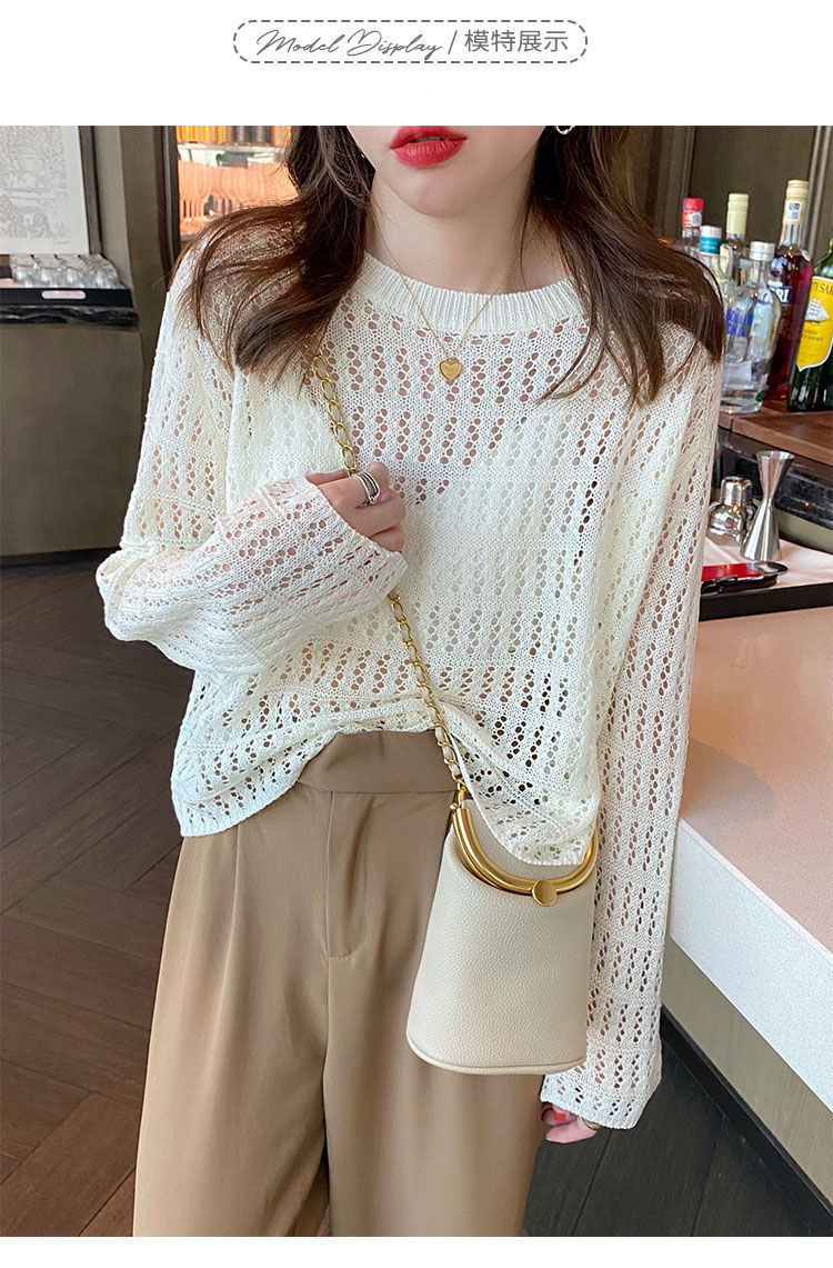 春夏新款【甜美减龄镂空针织衫】薄款宽松显瘦纯色罩衫上衣女潮 百搭不挑人