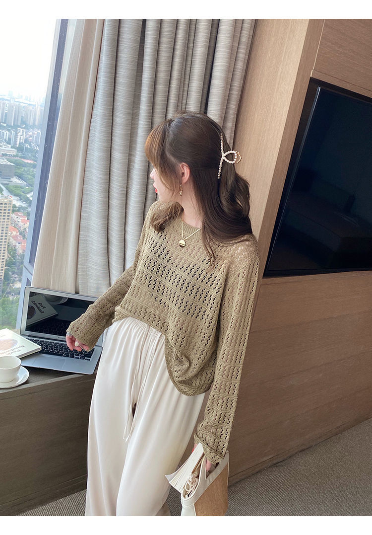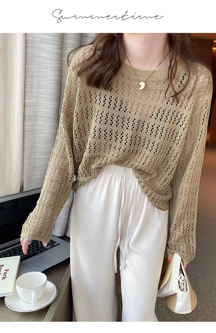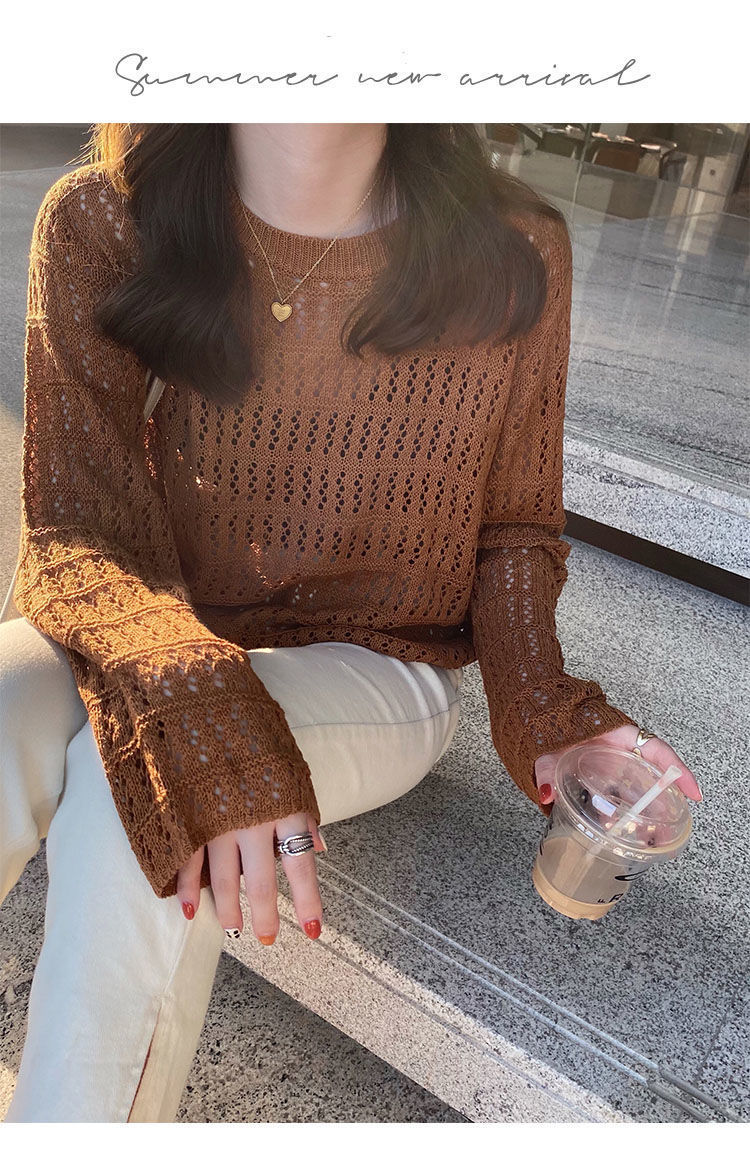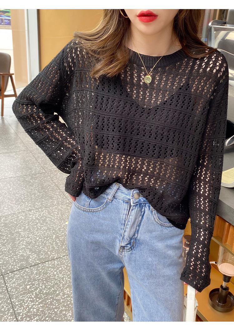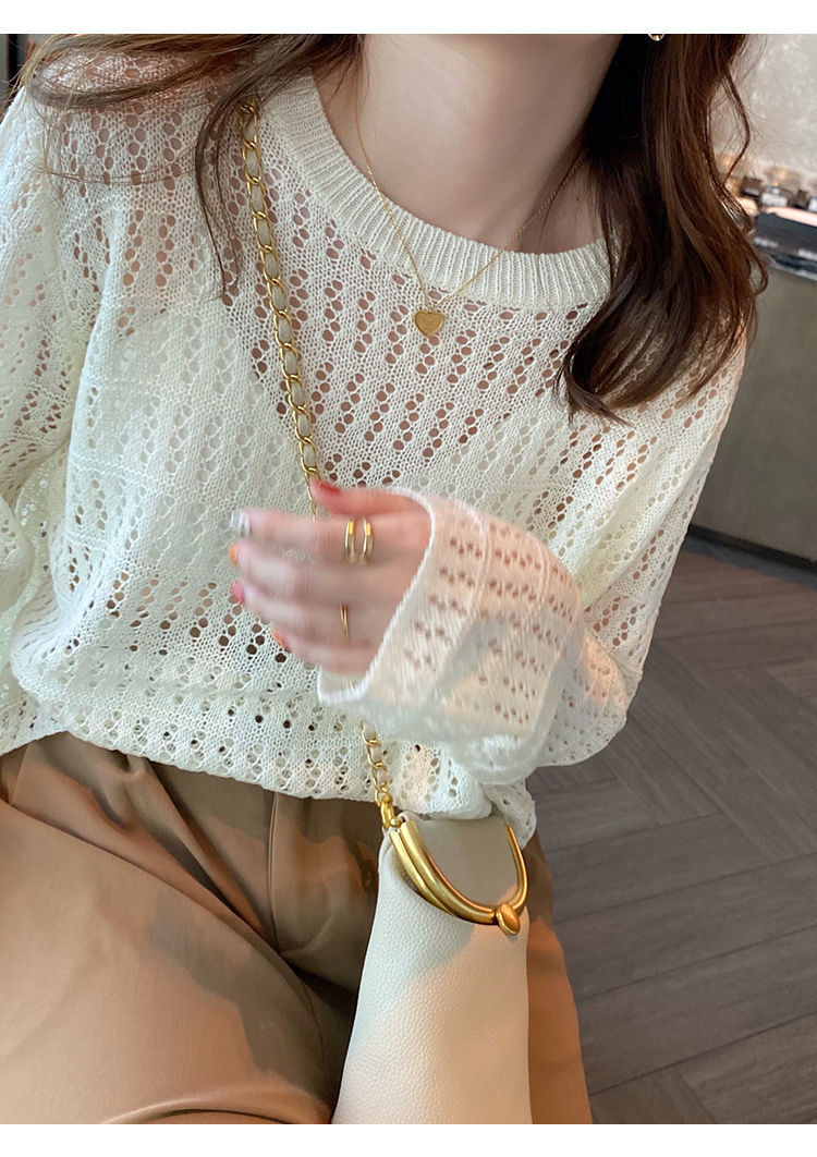 春夏新款【甜美减龄镂空针织衫】薄款宽松显瘦纯色罩衫上衣女潮 百搭不挑人