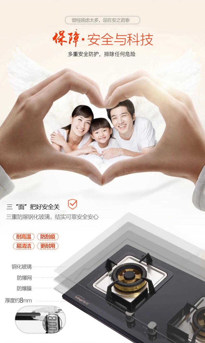 万和双灶 燃气灶 台式灶 大火力 聚能 台嵌两用 钢化玻璃面板 方形炉架 JZY-B8L03Q-(液化气4.2kw天然气4.5kw)