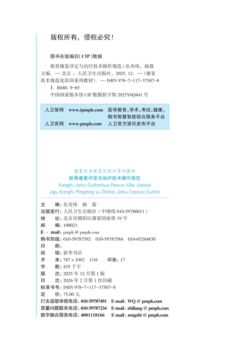 肌骨康复评定与治疗技术操作规范 康复技术规范化培训系列教材 岳寿伟 杨霖 本书是康复治疗师规范化培训的首套教材人民卫生出版社