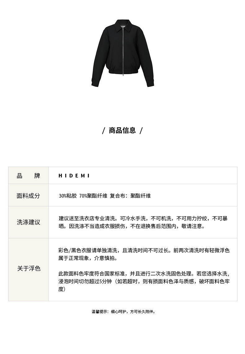 HIDEMI 简约拉链设计感夹克外套