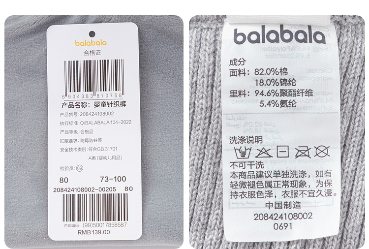 巴拉巴拉宝宝裤子女童打底裤加绒秋冬季婴儿长裤保暖新款时尚