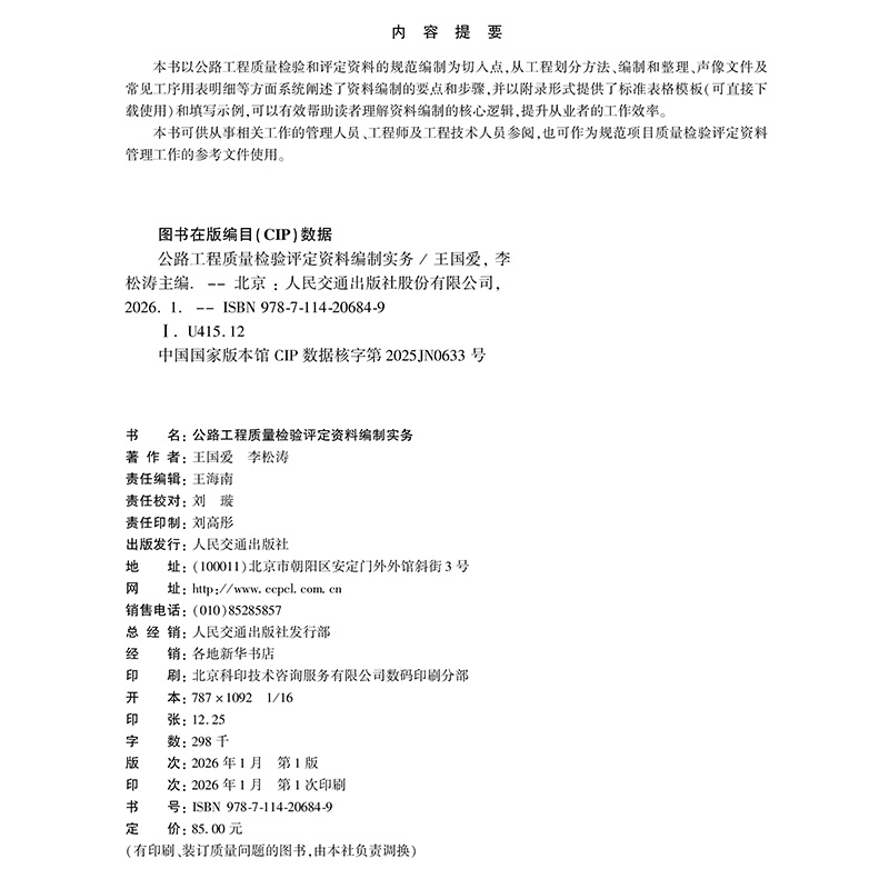 书名:公路工程质量检验评定资料编制实务