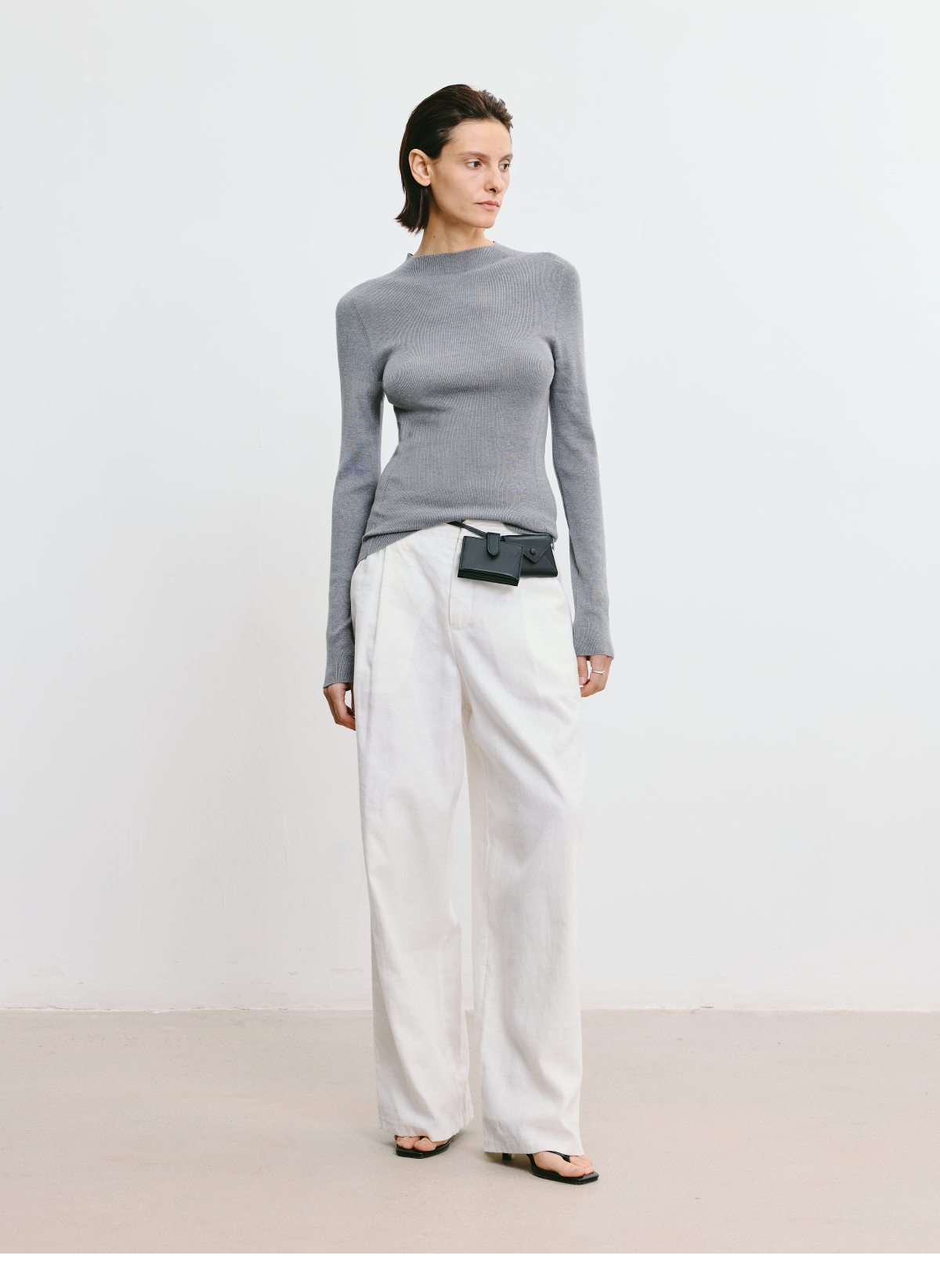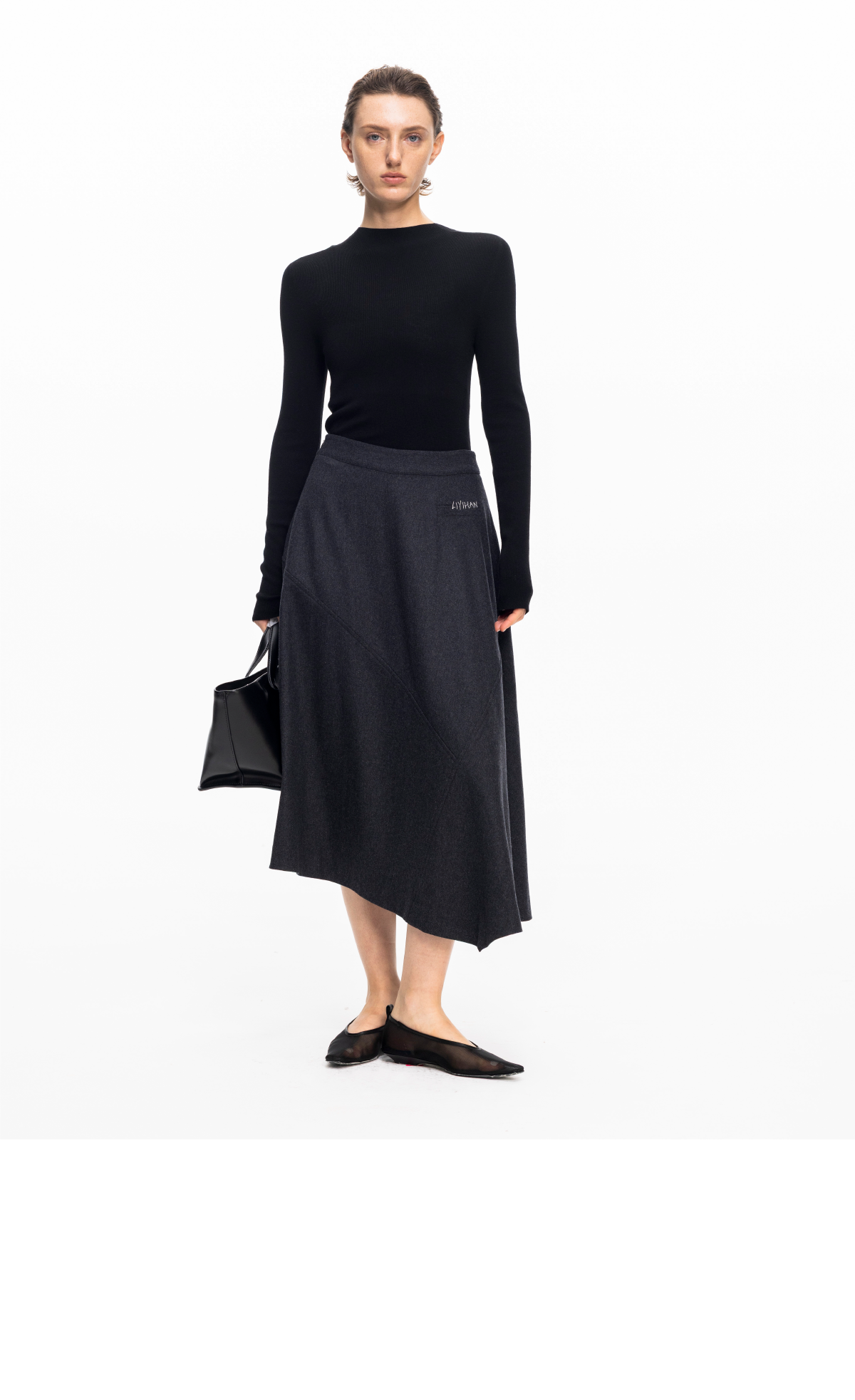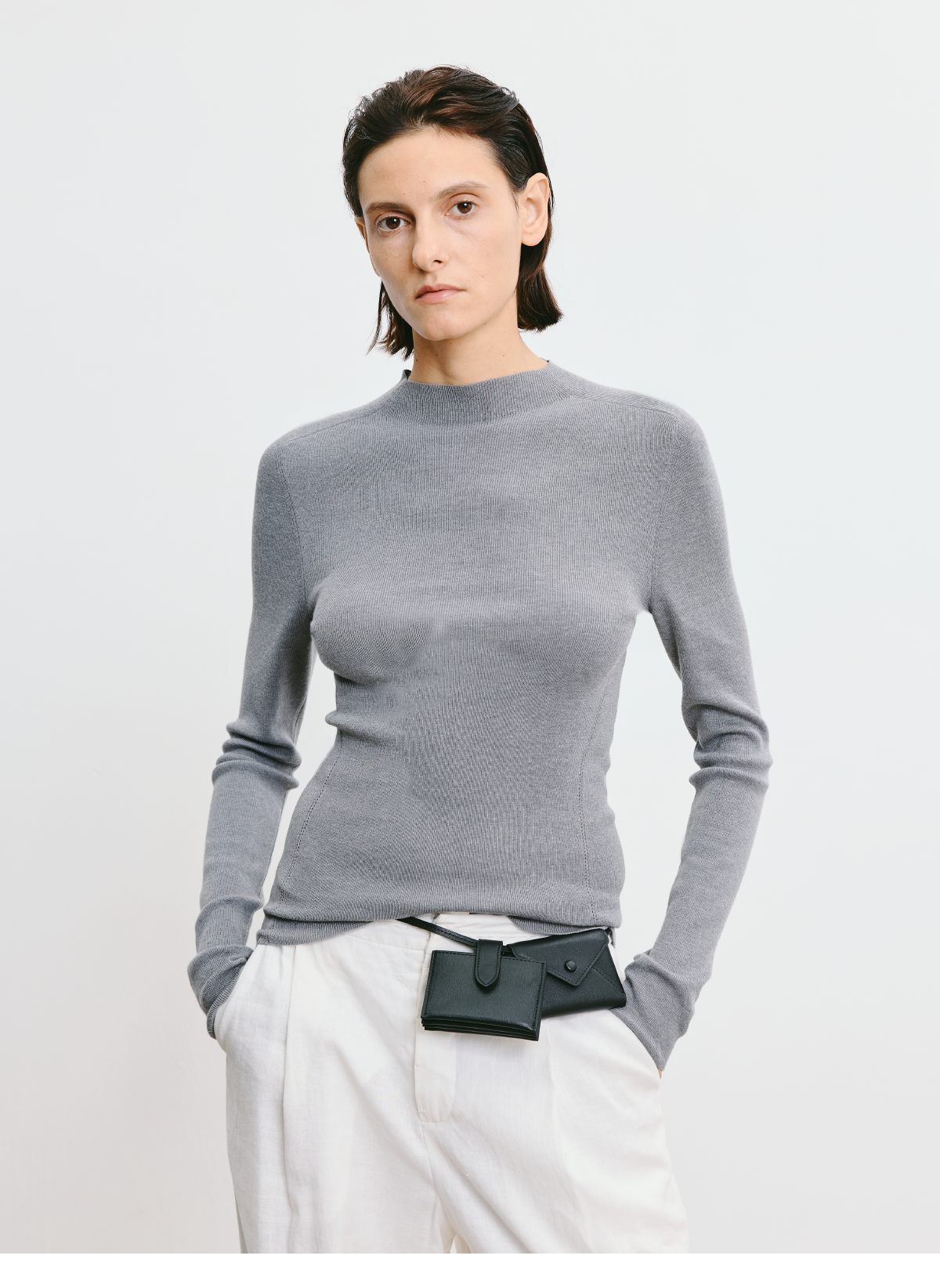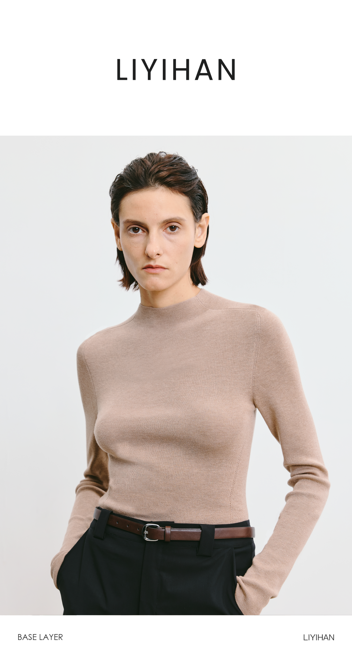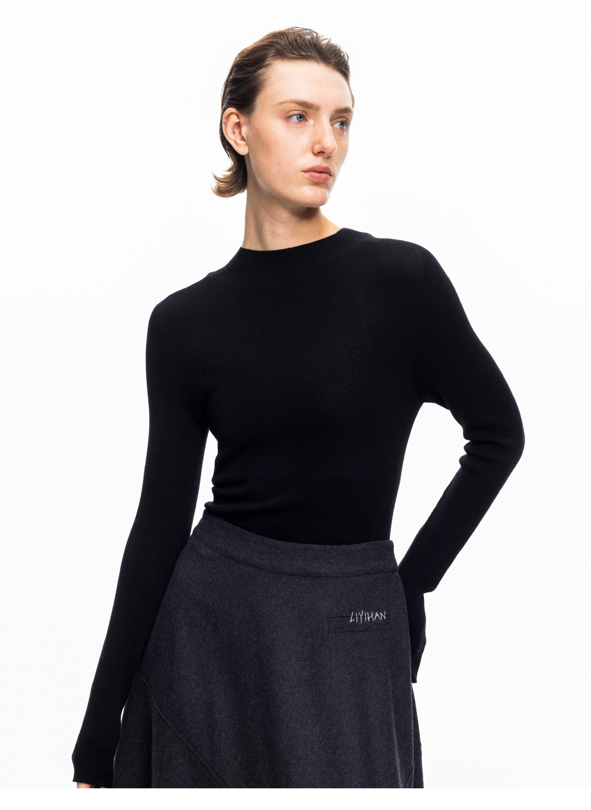 LIYIHAN 2026春季新款醋酸羊绒灰色半高领打底针织衫女毛衣设计感
