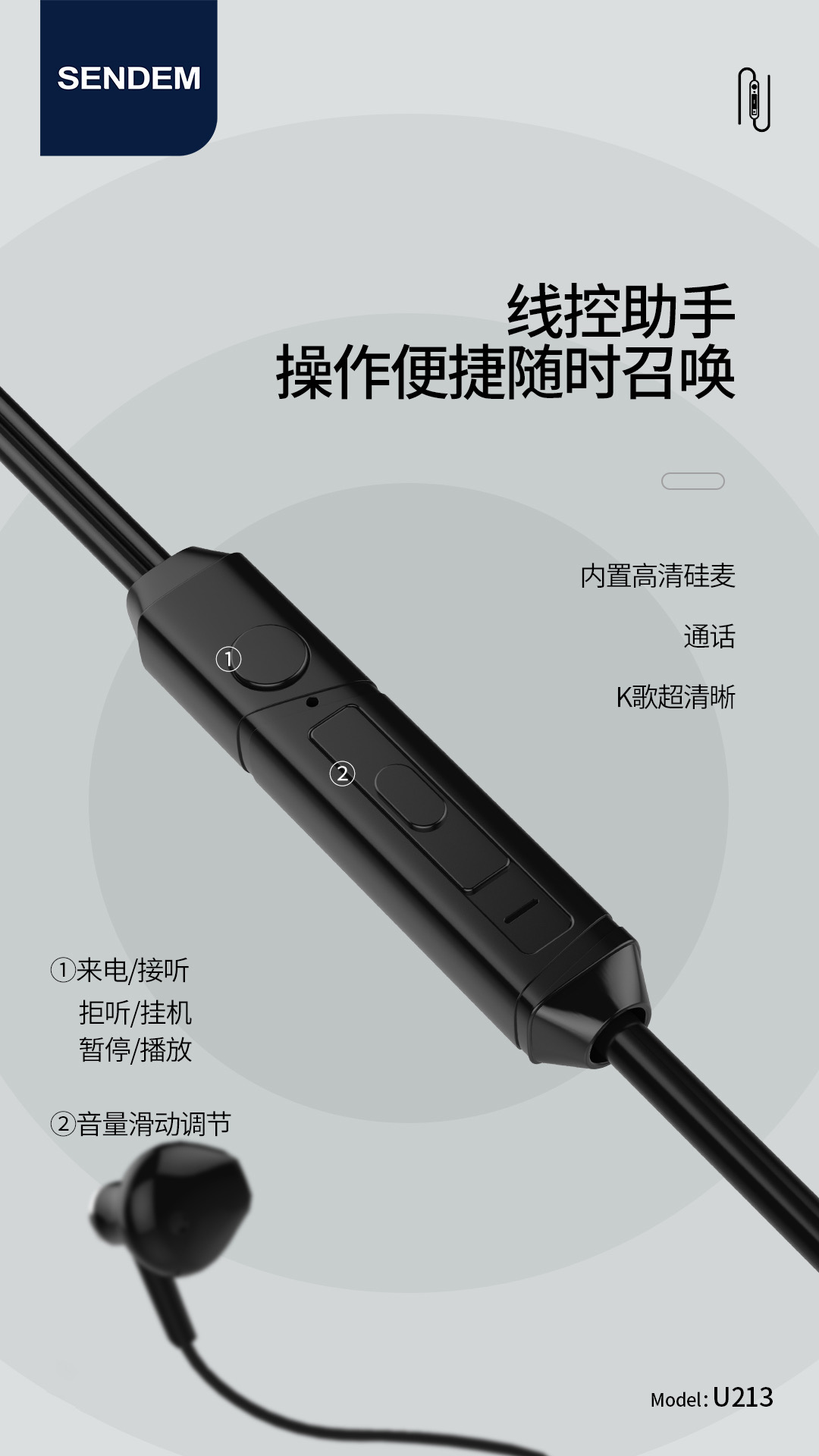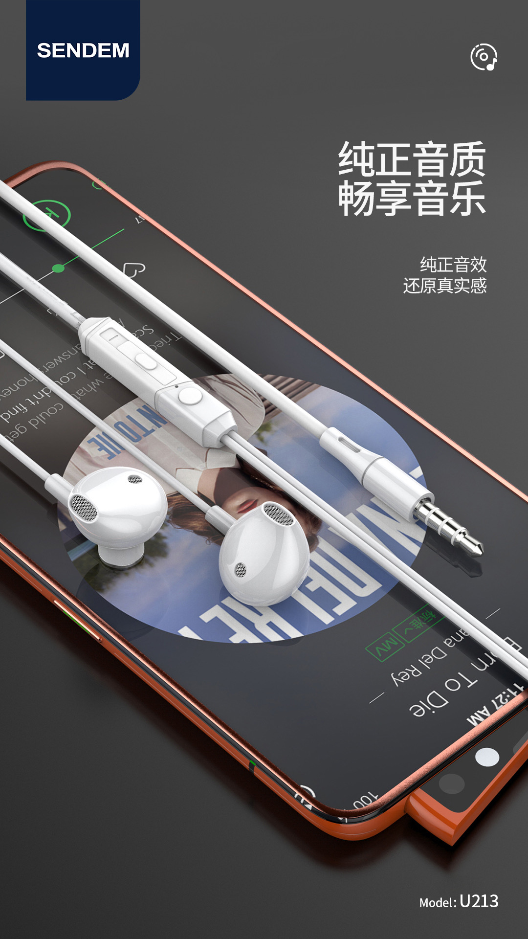 u212 213高清入耳式手机耳机 适用于OPPO VIVO华为手机耳机