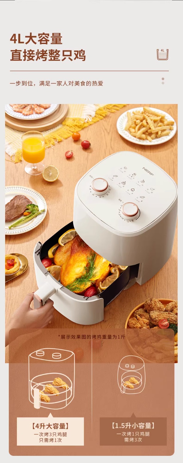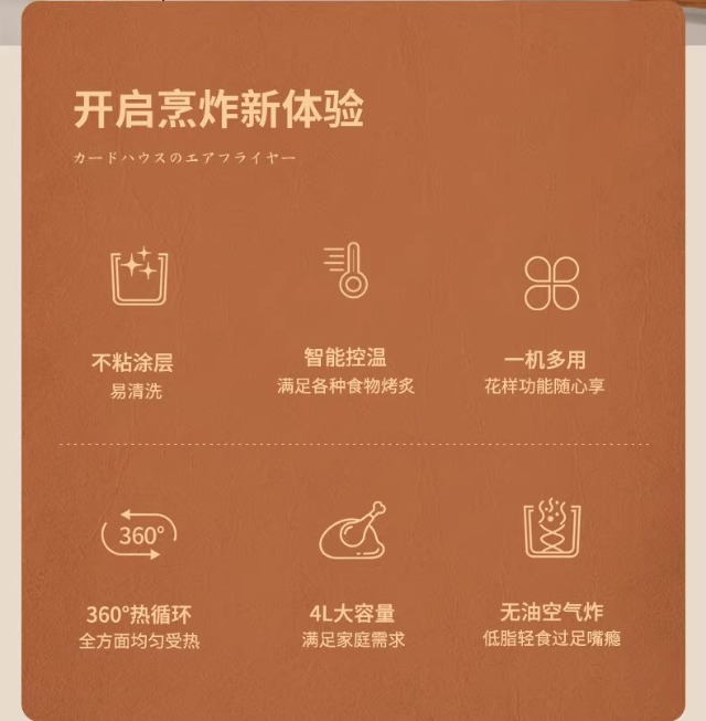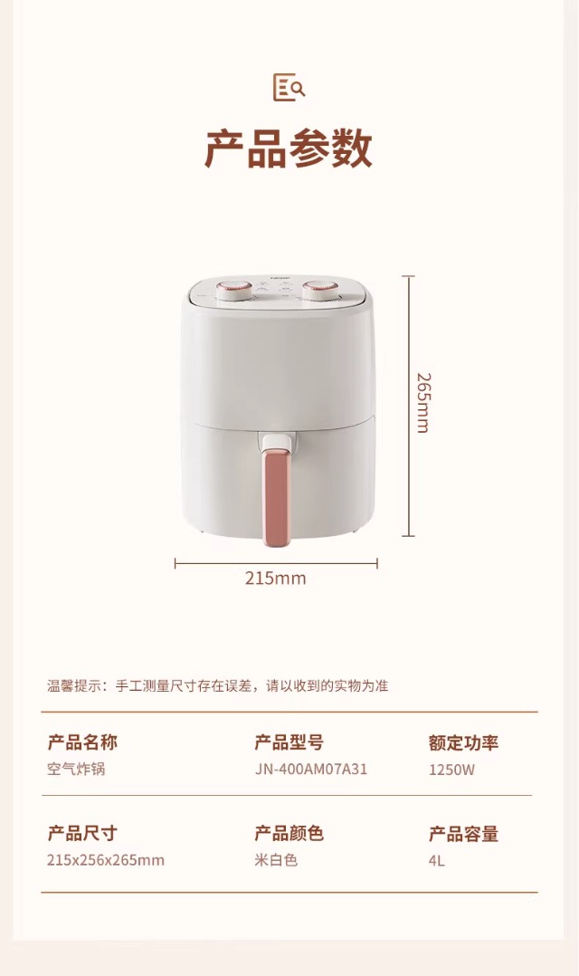空气炸锅JN-400AM07A31大容量家用智能触屏定时多功能无油烟电炸锅不沾低脂煎炸锅薯条机