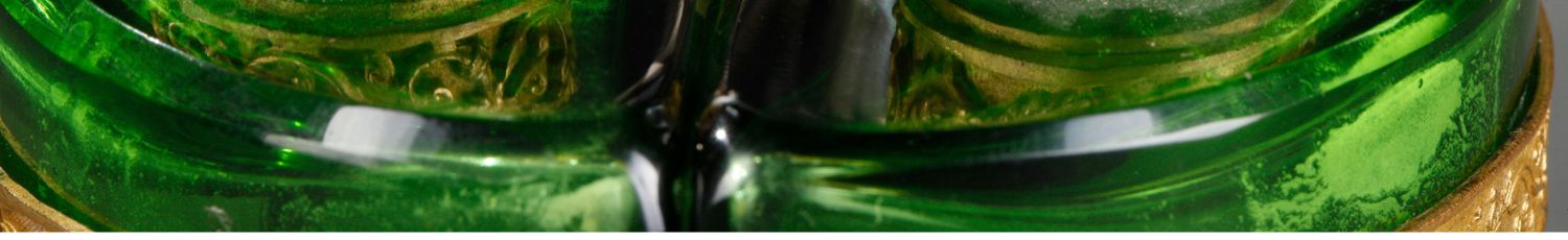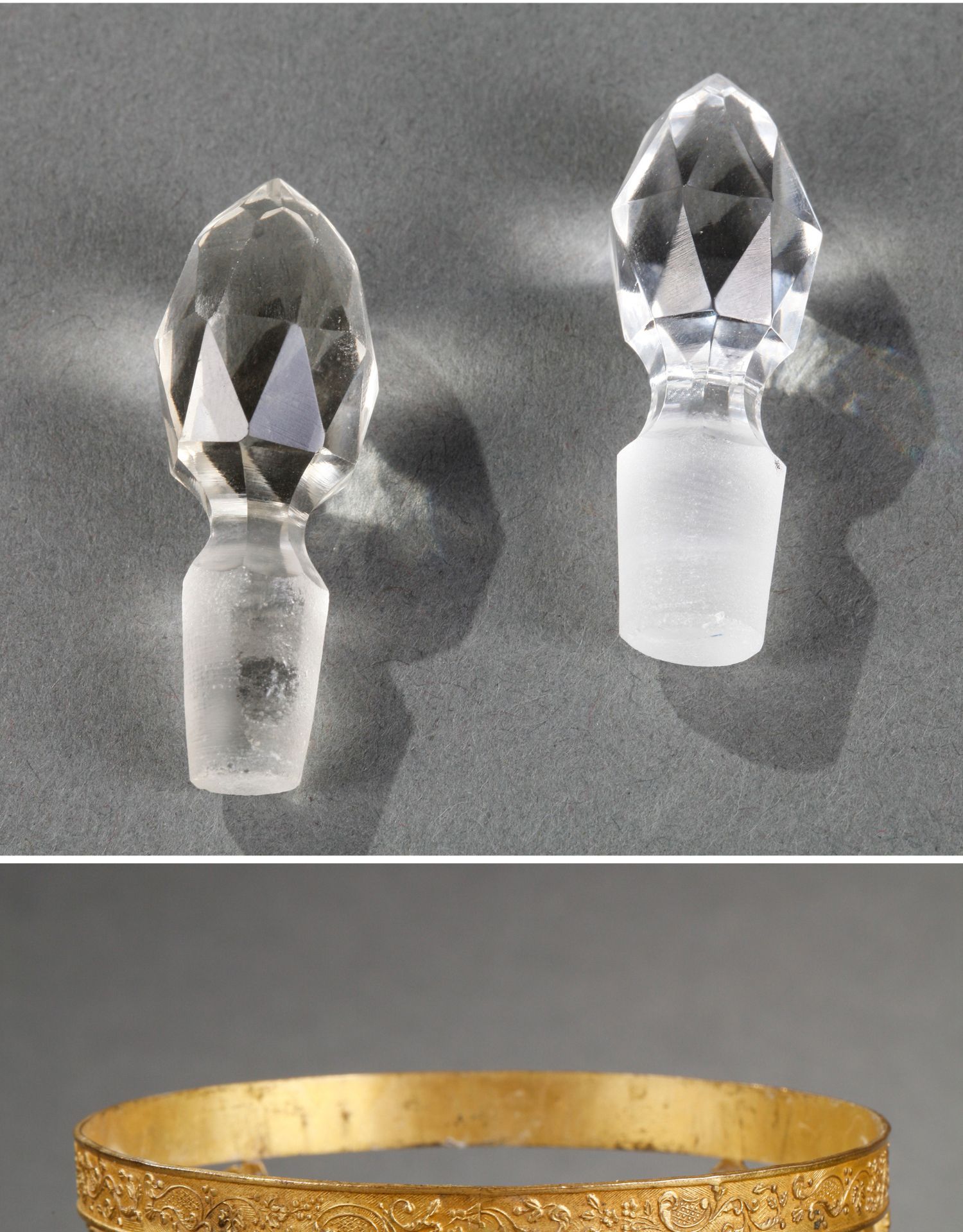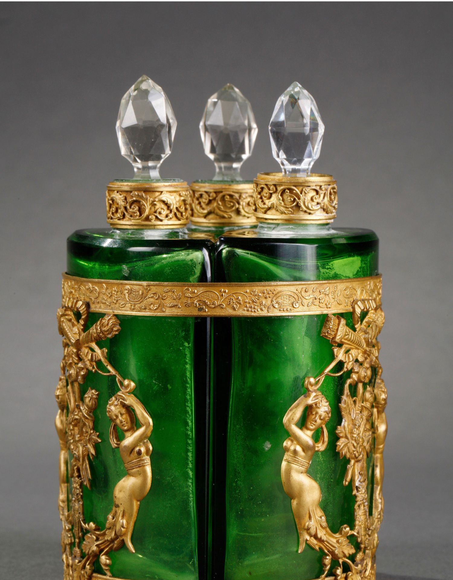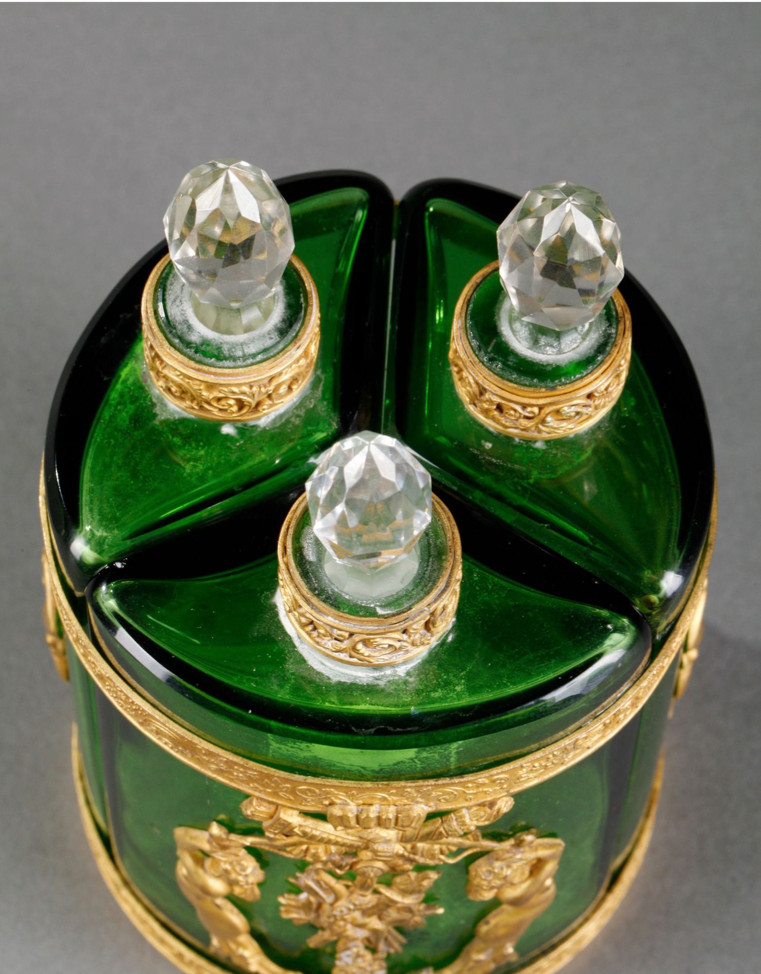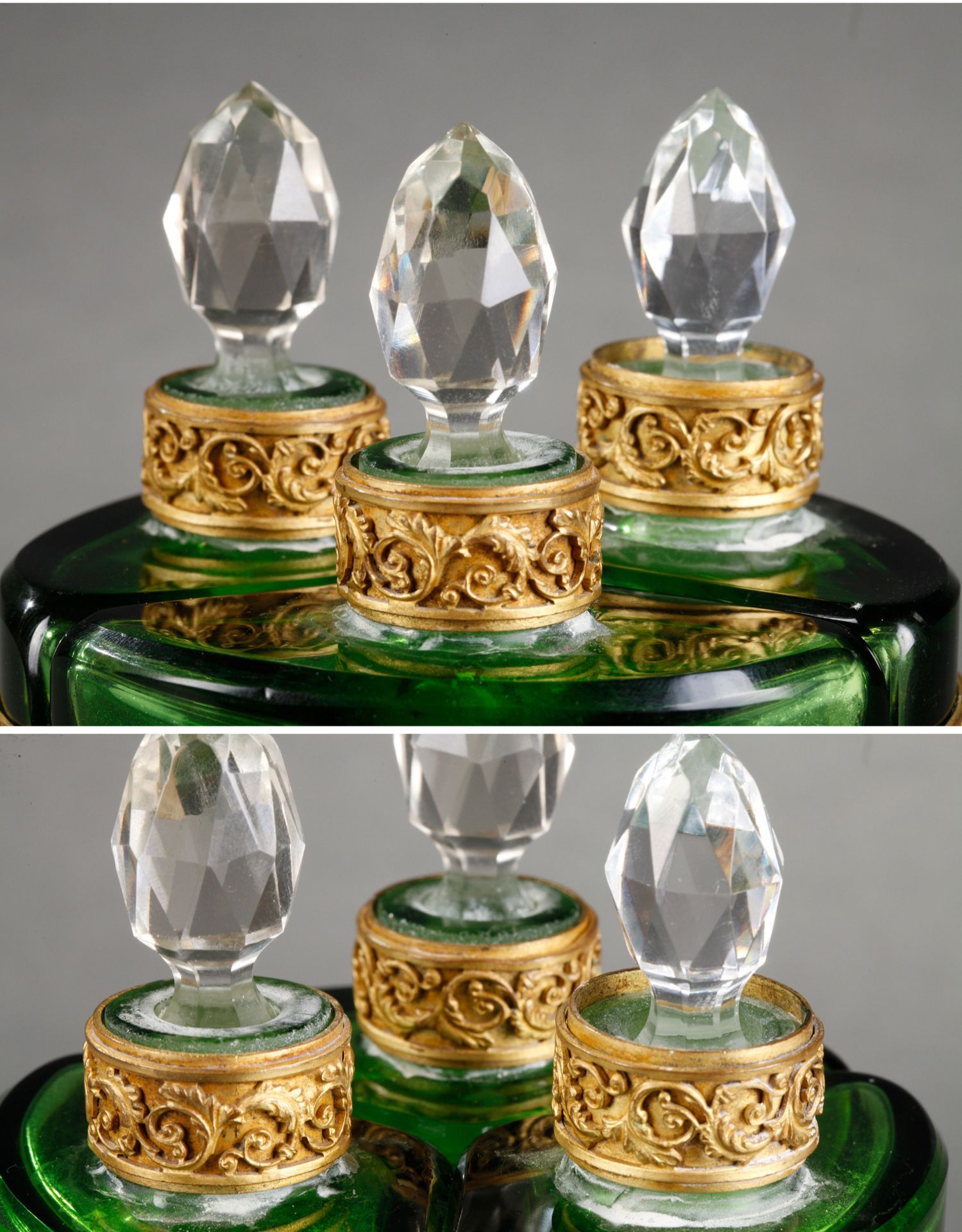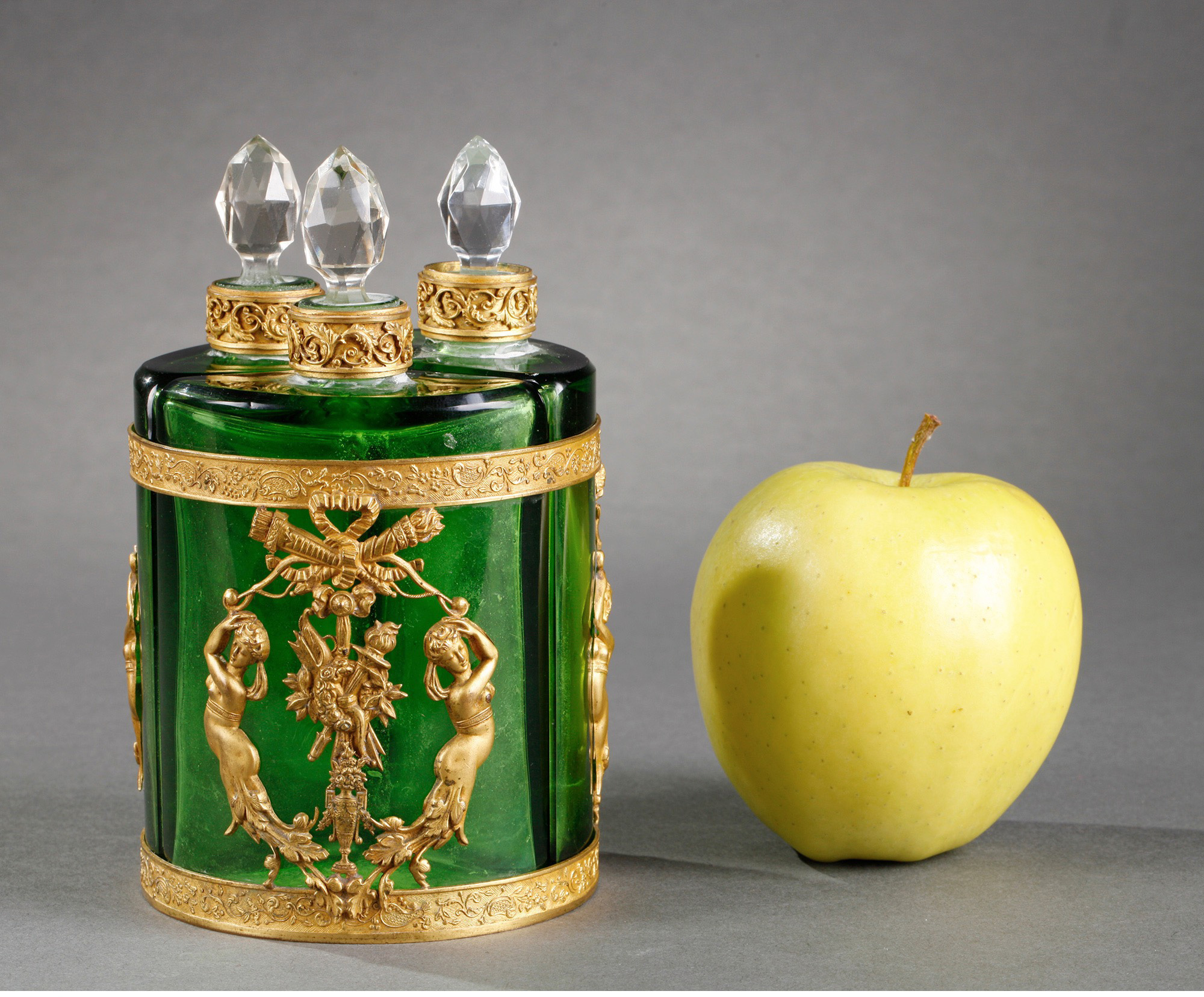 独角鹿西洋古董法国帝政风格桂冠火炬箭袋铜鎏金绿水晶香水瓶套装