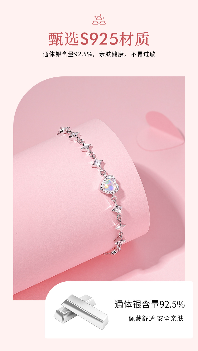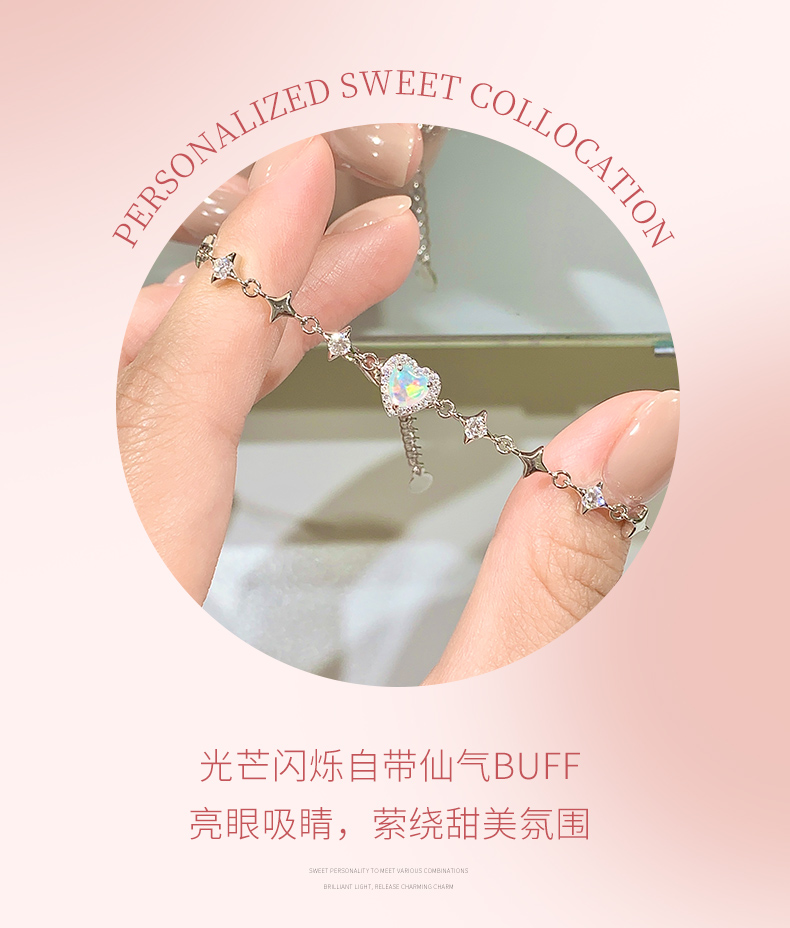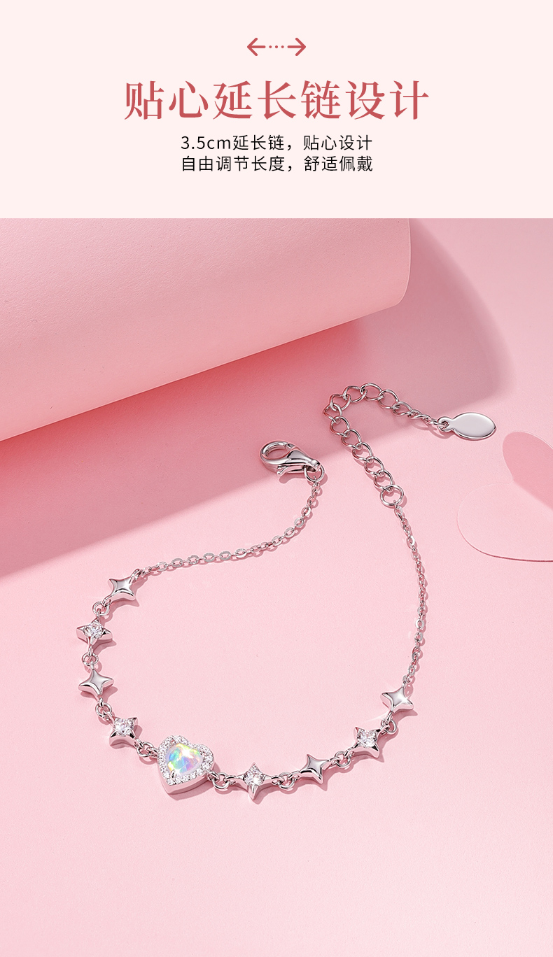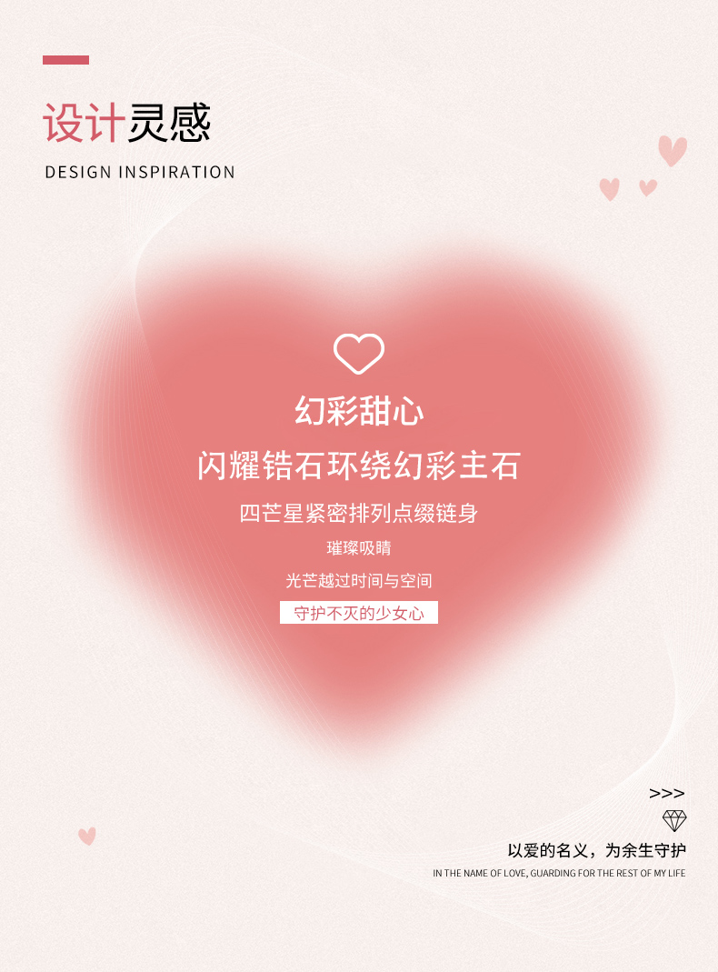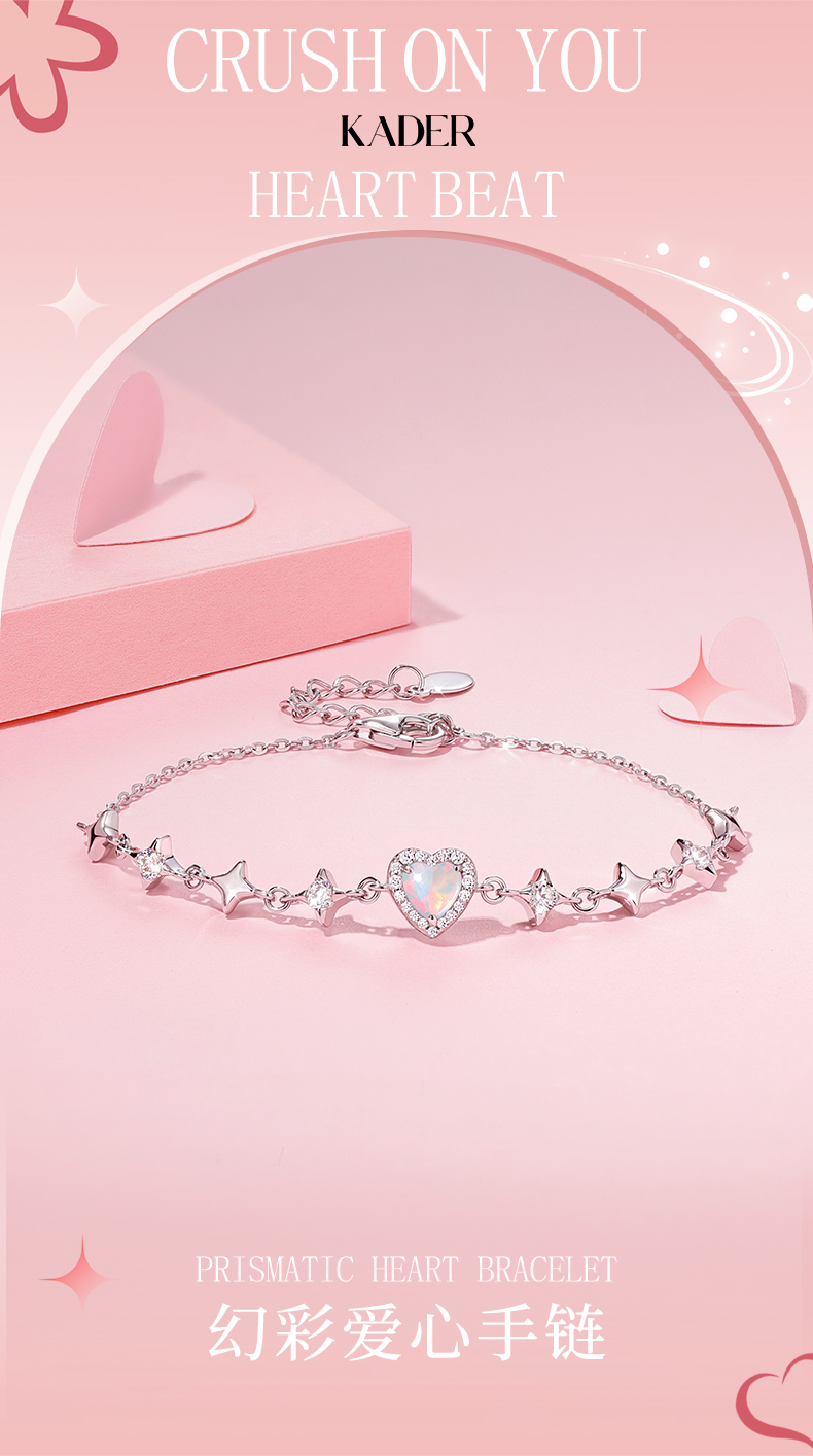 卡蒂罗/KADER 幻彩爱心手链 在逃公主甜美可爱满钻设计大颗彩色爱心宝石拼接链 心动甜梦璀璨吸睛星点银链