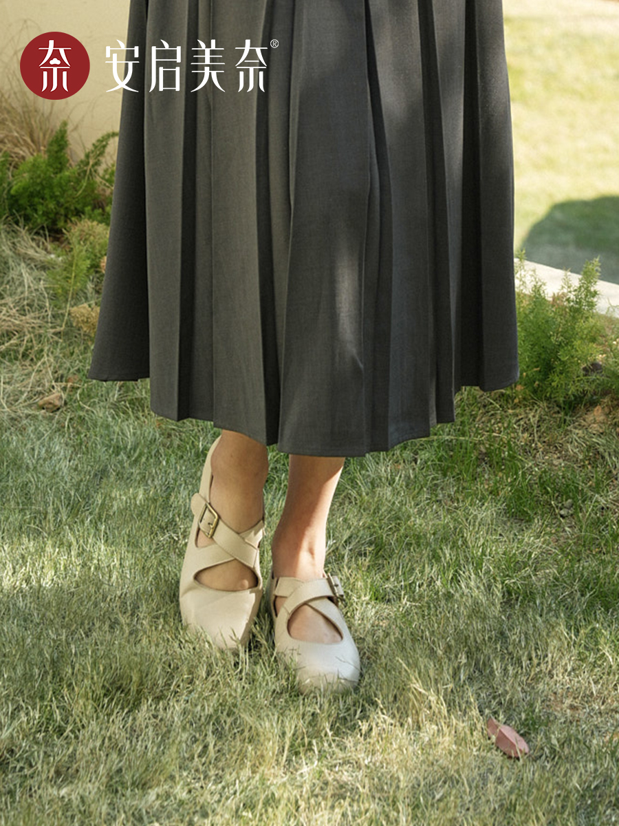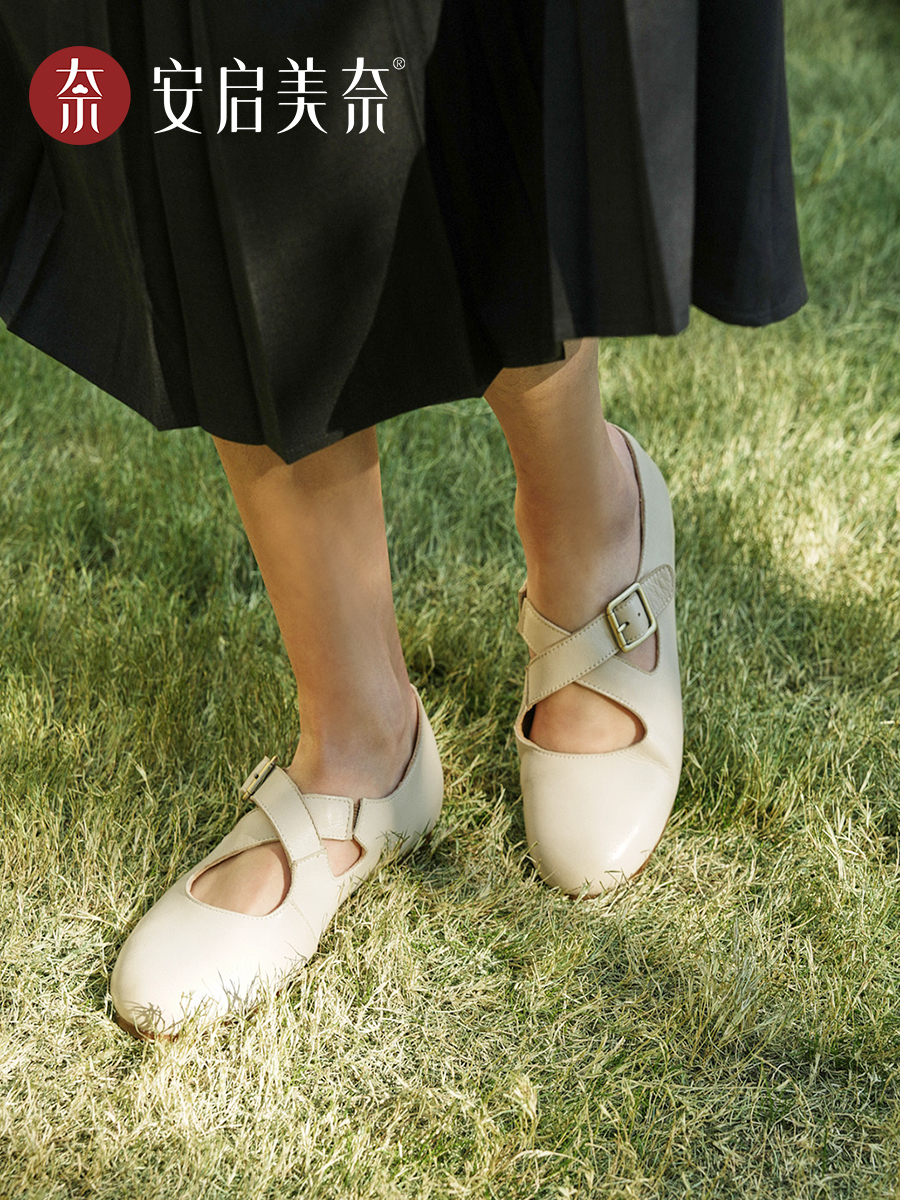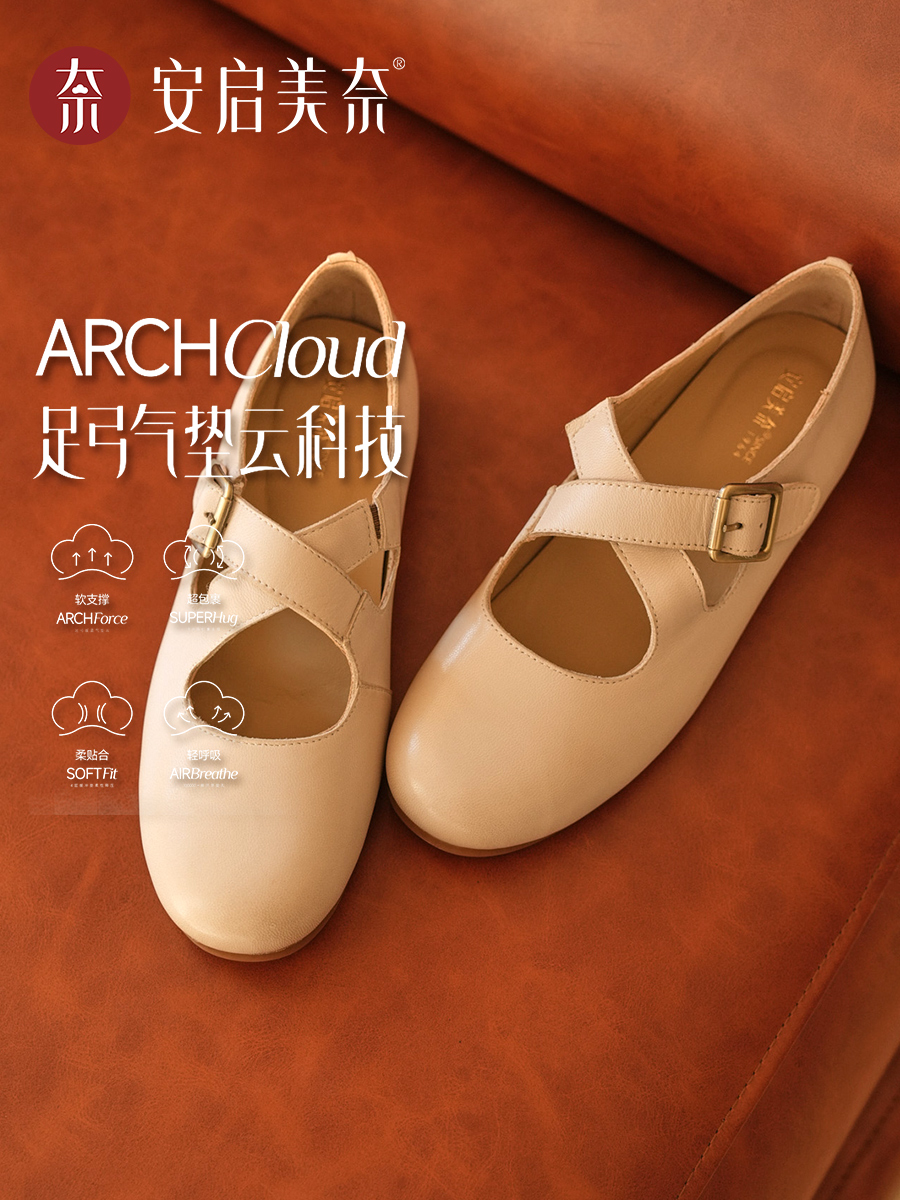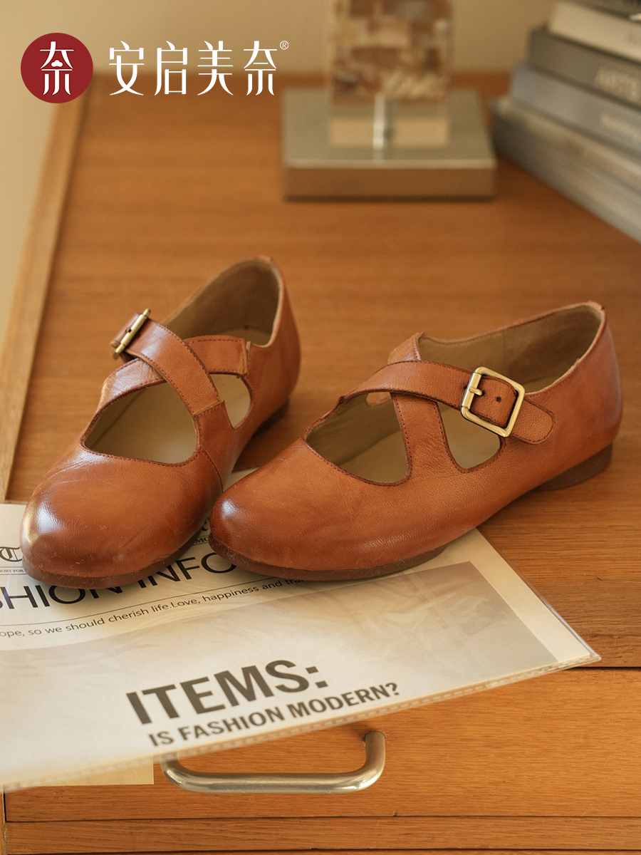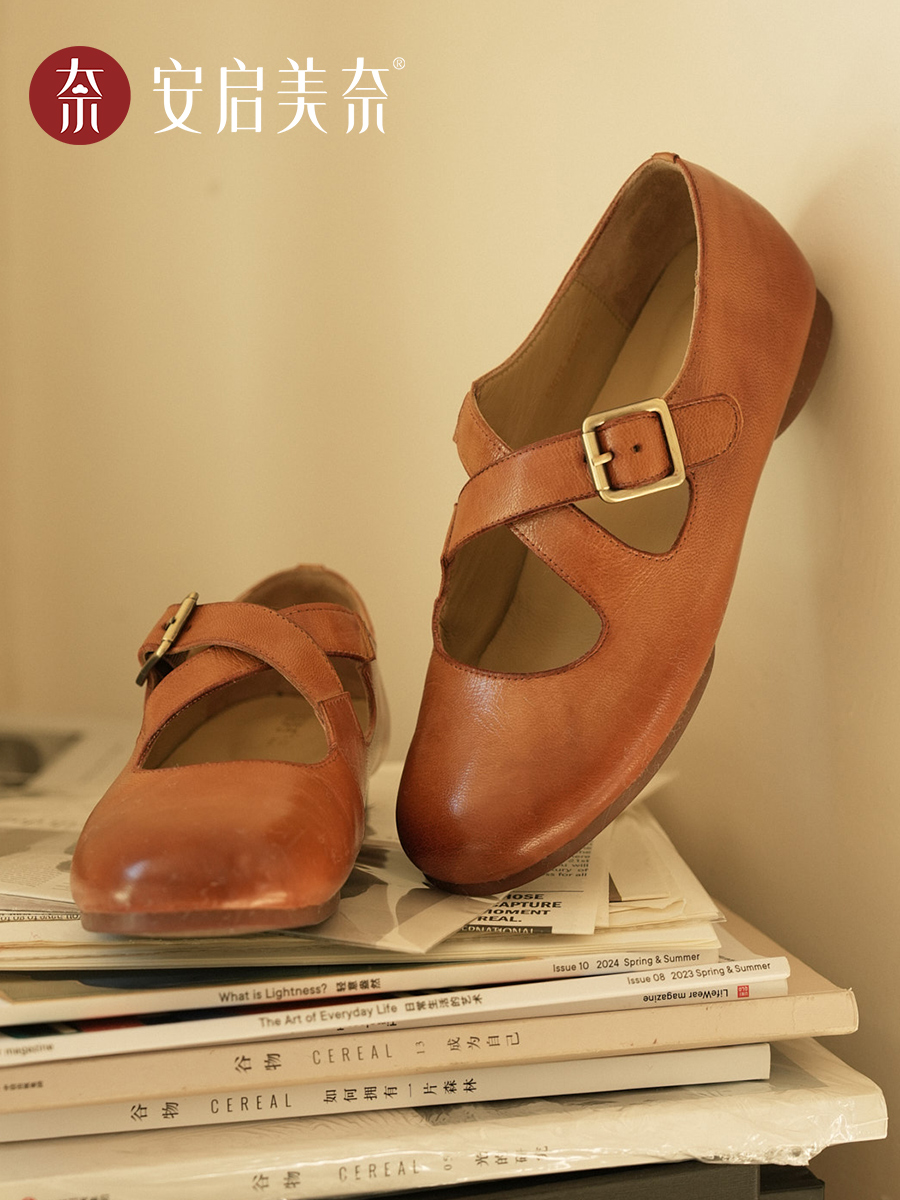 ARCHCONTACT安启美奈气垫云手工复古圆头交叉带玛丽珍皮鞋【53019】