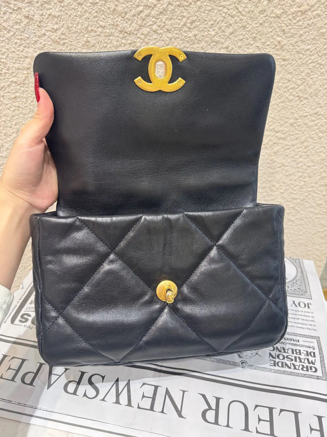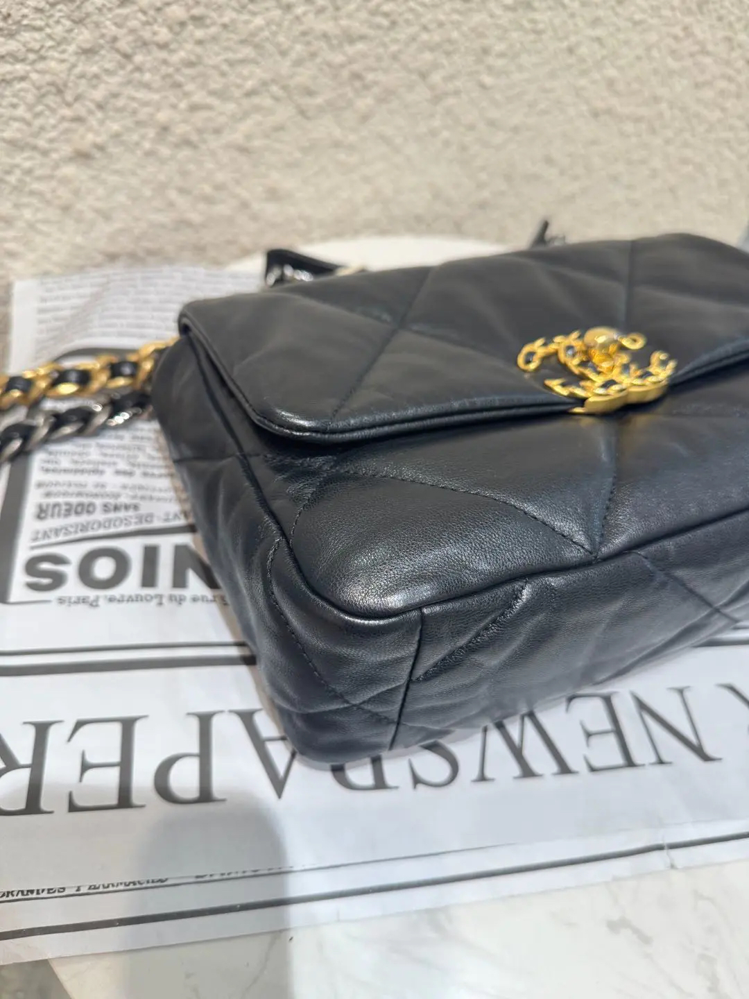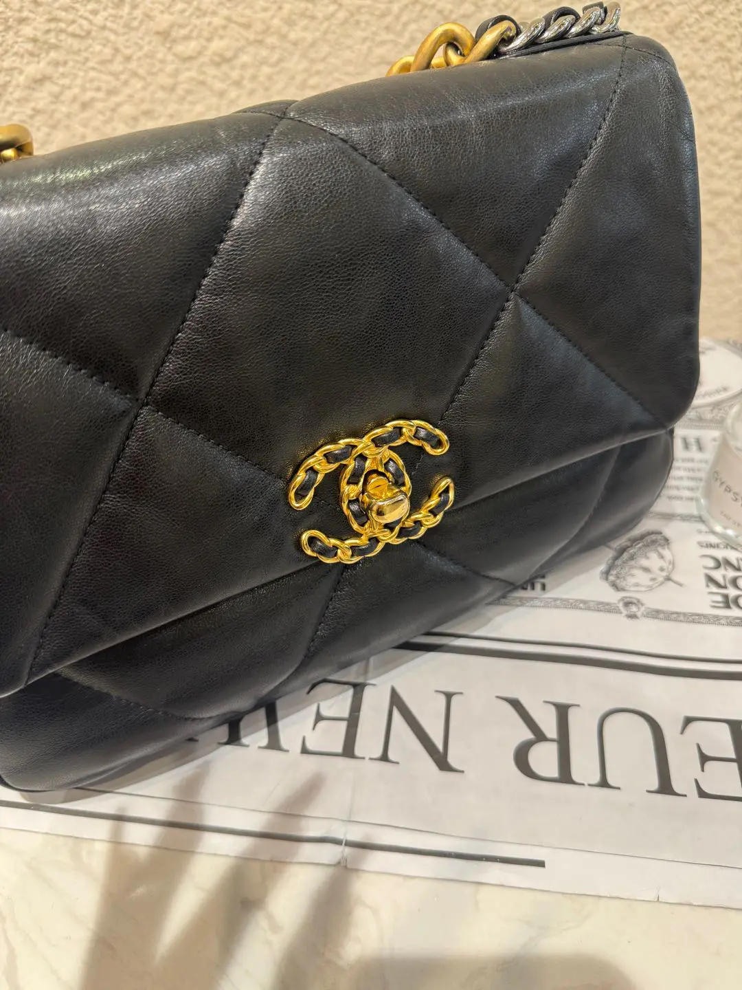 CHANEL 小号 黑金 山羊皮 19bag 斜挎包