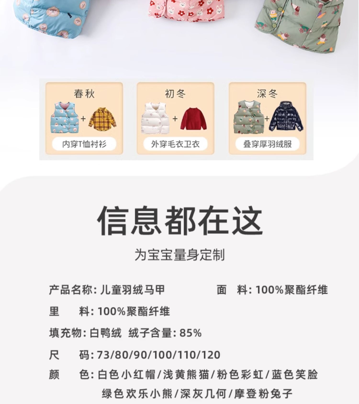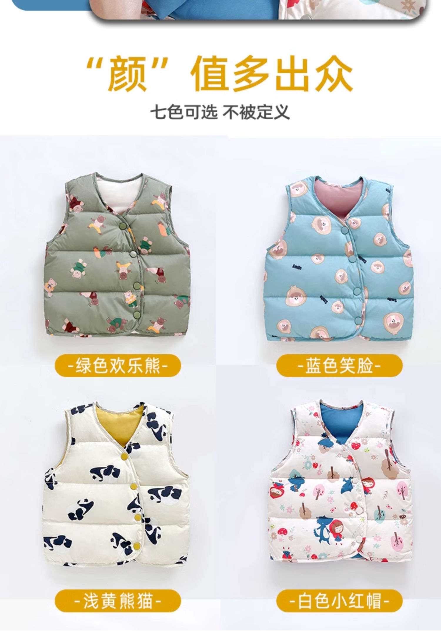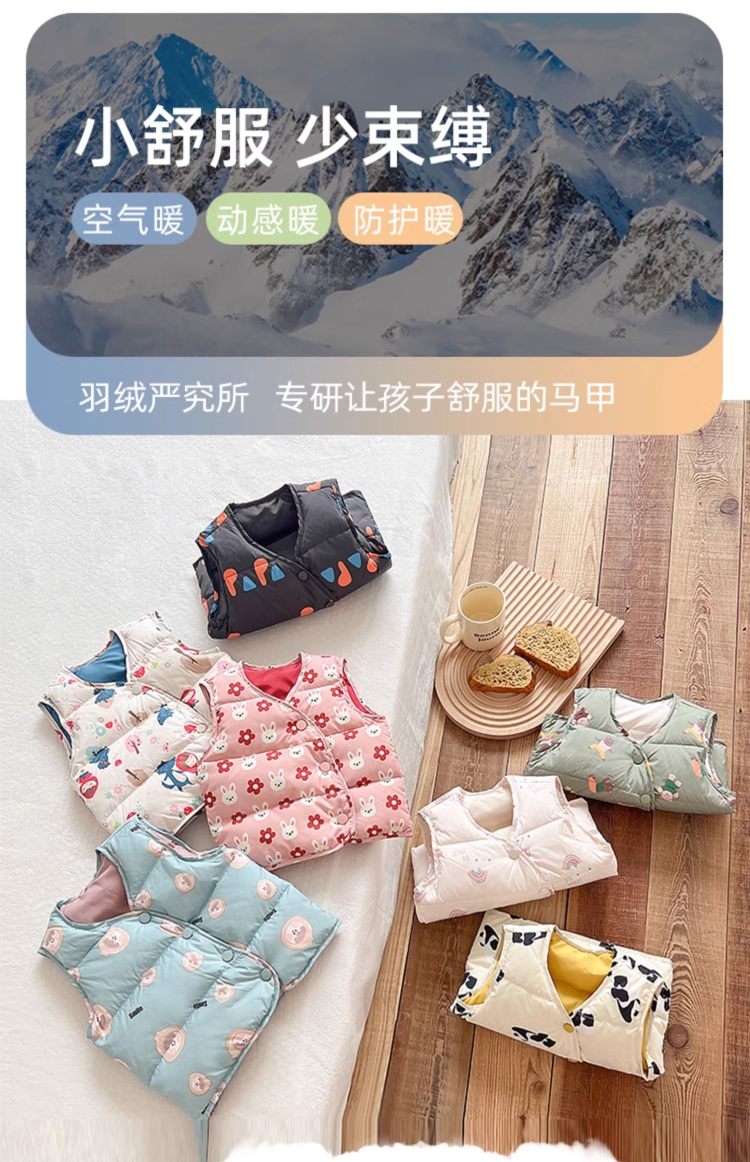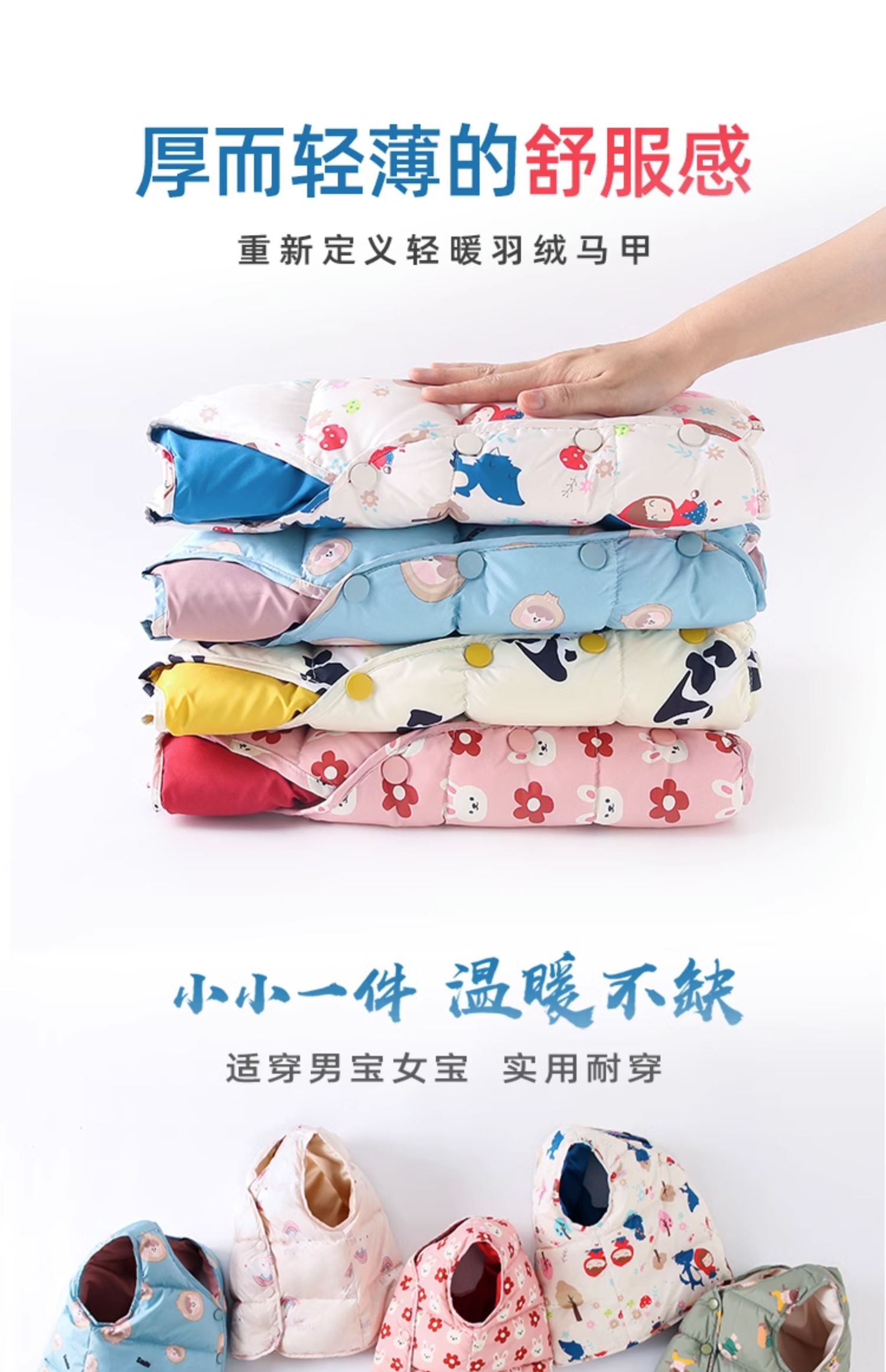 贝肽斯儿童羽绒马甲背心秋冬款轻薄白鸭绒男女宝宝上衣外穿保暖