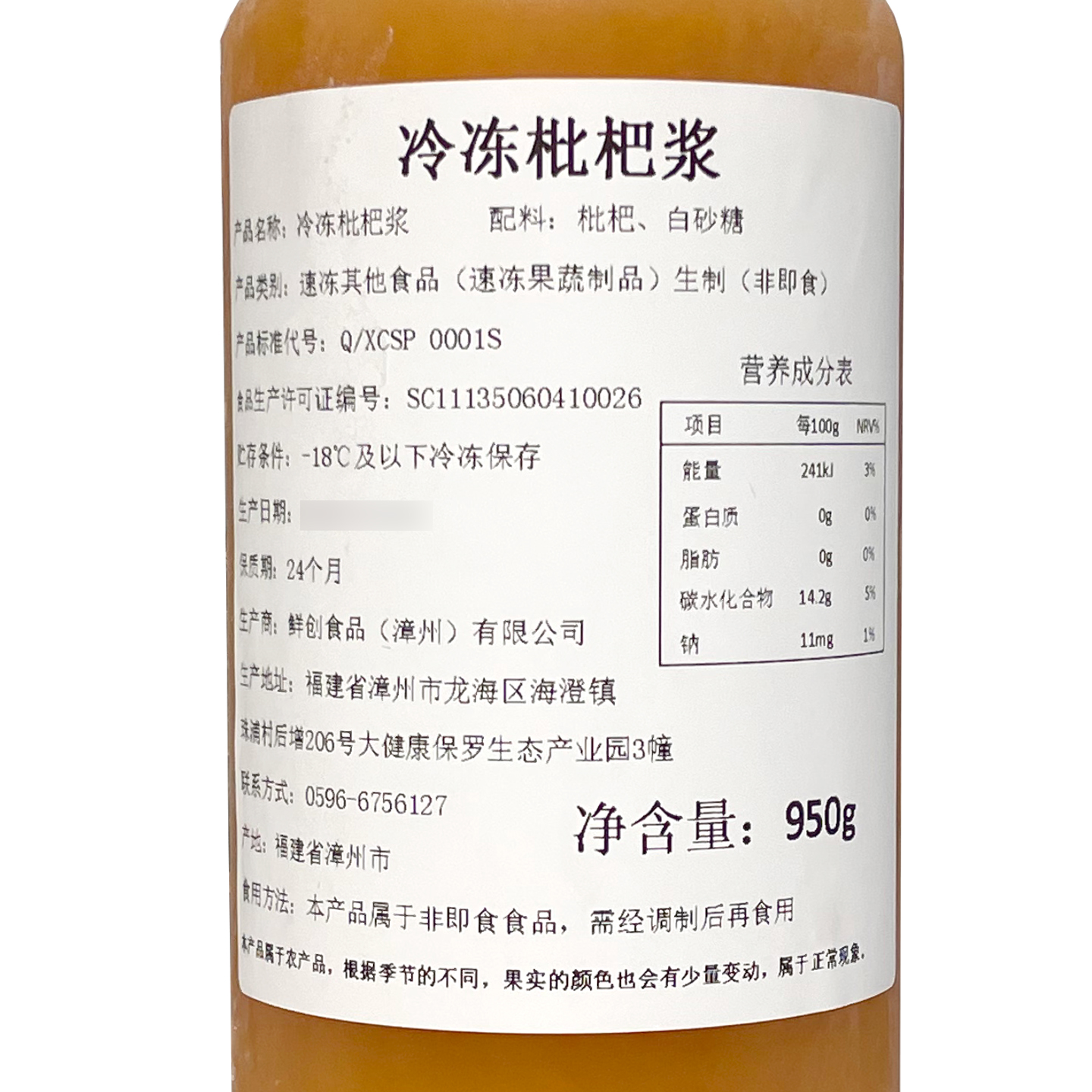 冷冻枇杷浆950g枇杷原浆枇杷汁饮品奶茶店商用原料枫芝堂