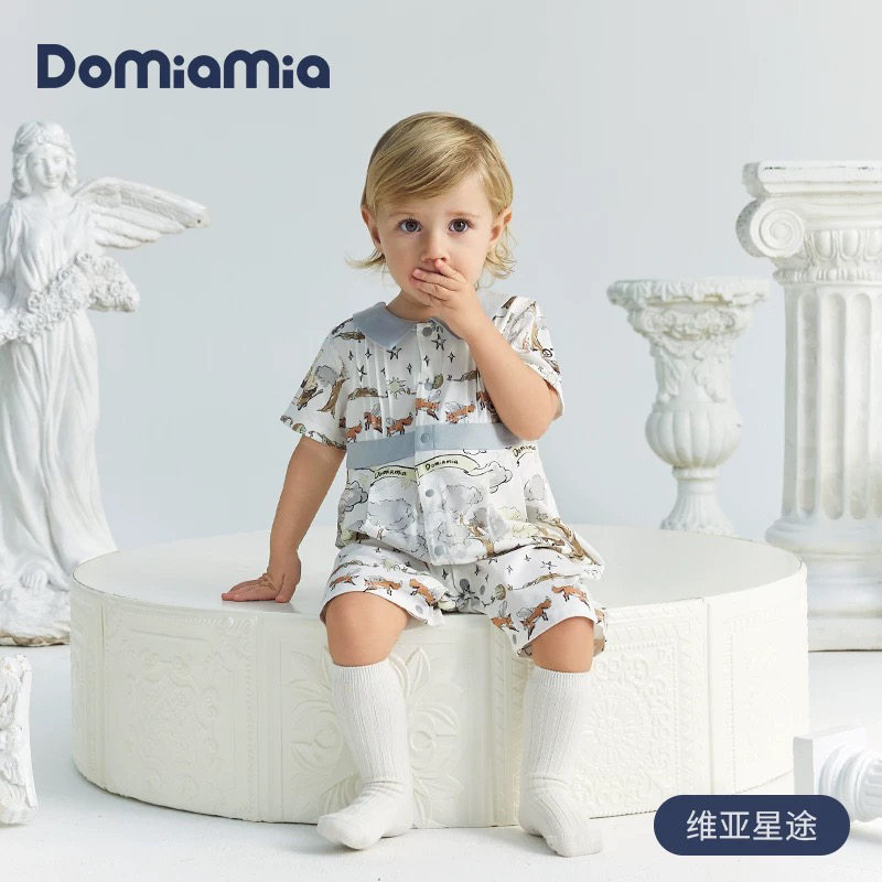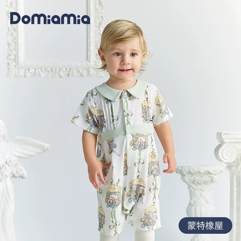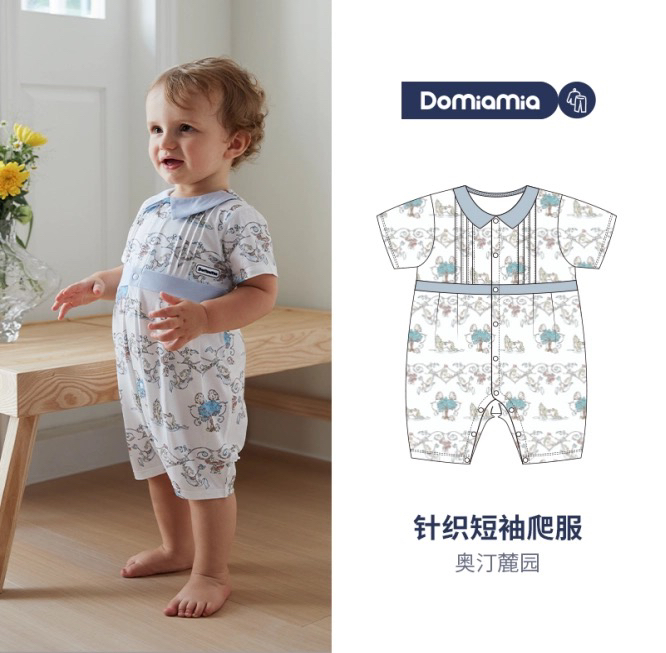 Domiamia 男宝宝针织短袖爬服 新生儿纯棉薄款连体衣