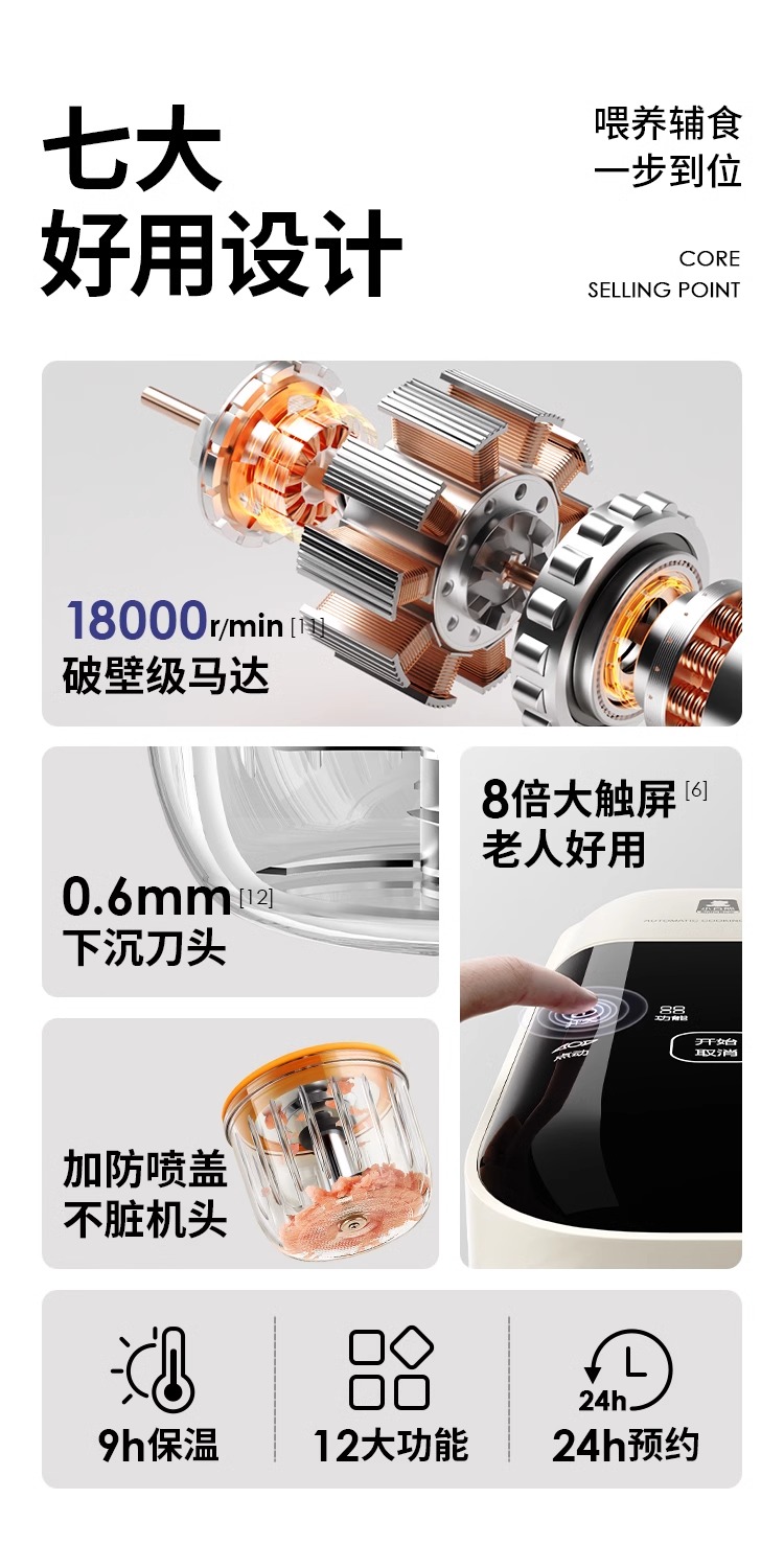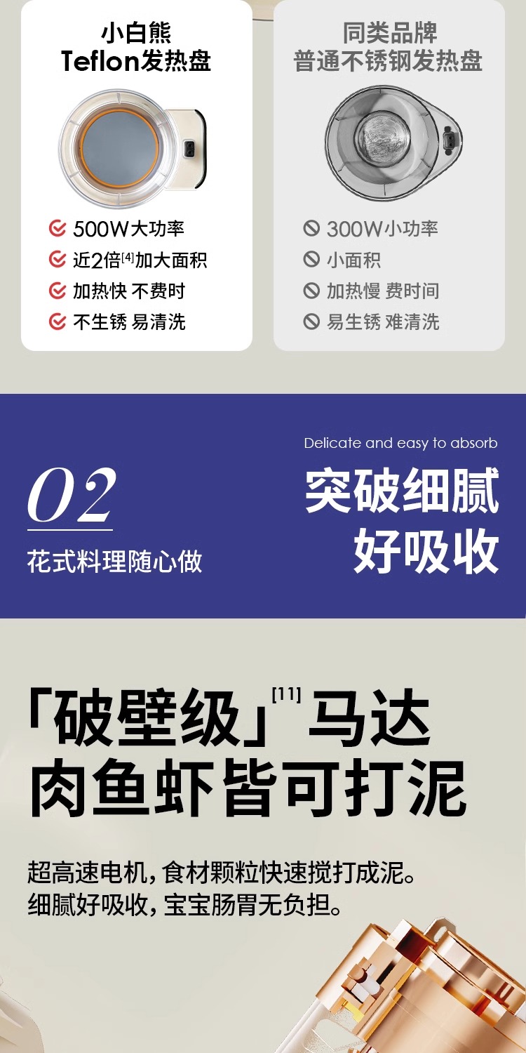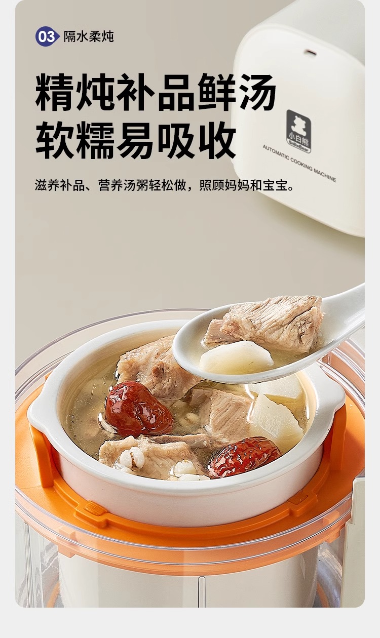 小白熊宝宝辅食机婴儿料理机小型多功能搅拌蒸煮一体米糊研磨器(星厨)/HL-6057