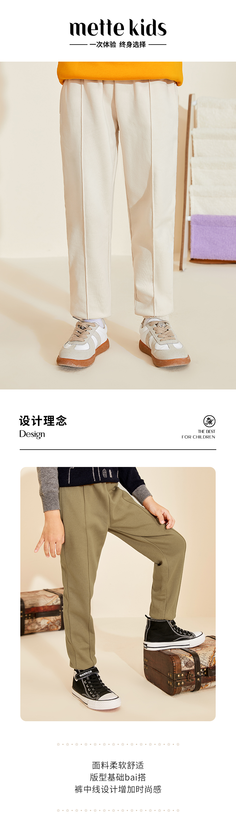 mettekids儿童裤子男童秋装2022新款休闲长裤女童纯棉运动裤