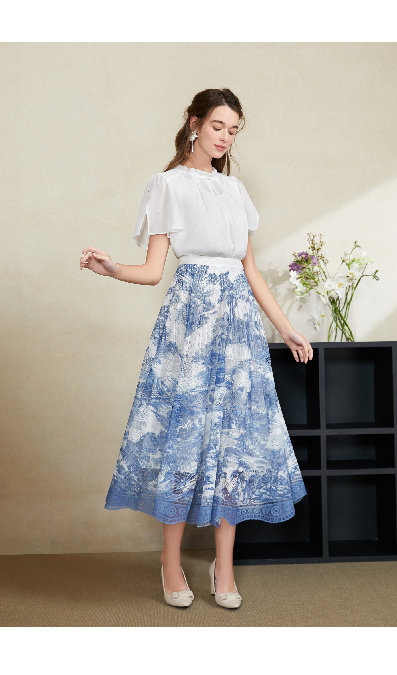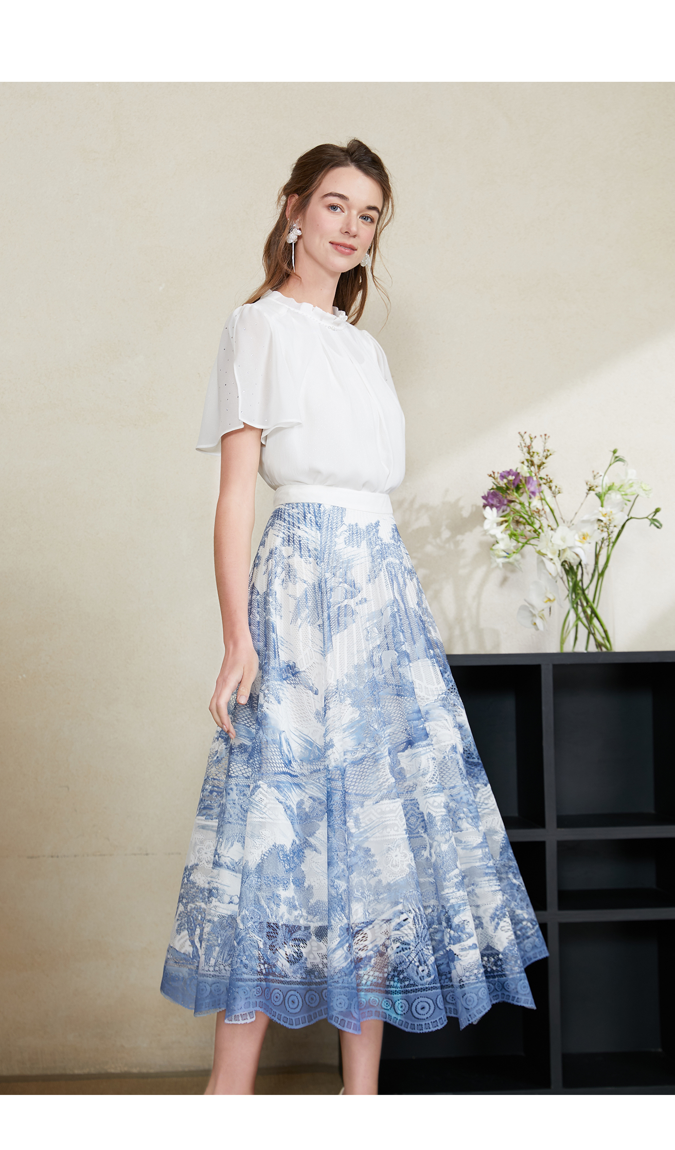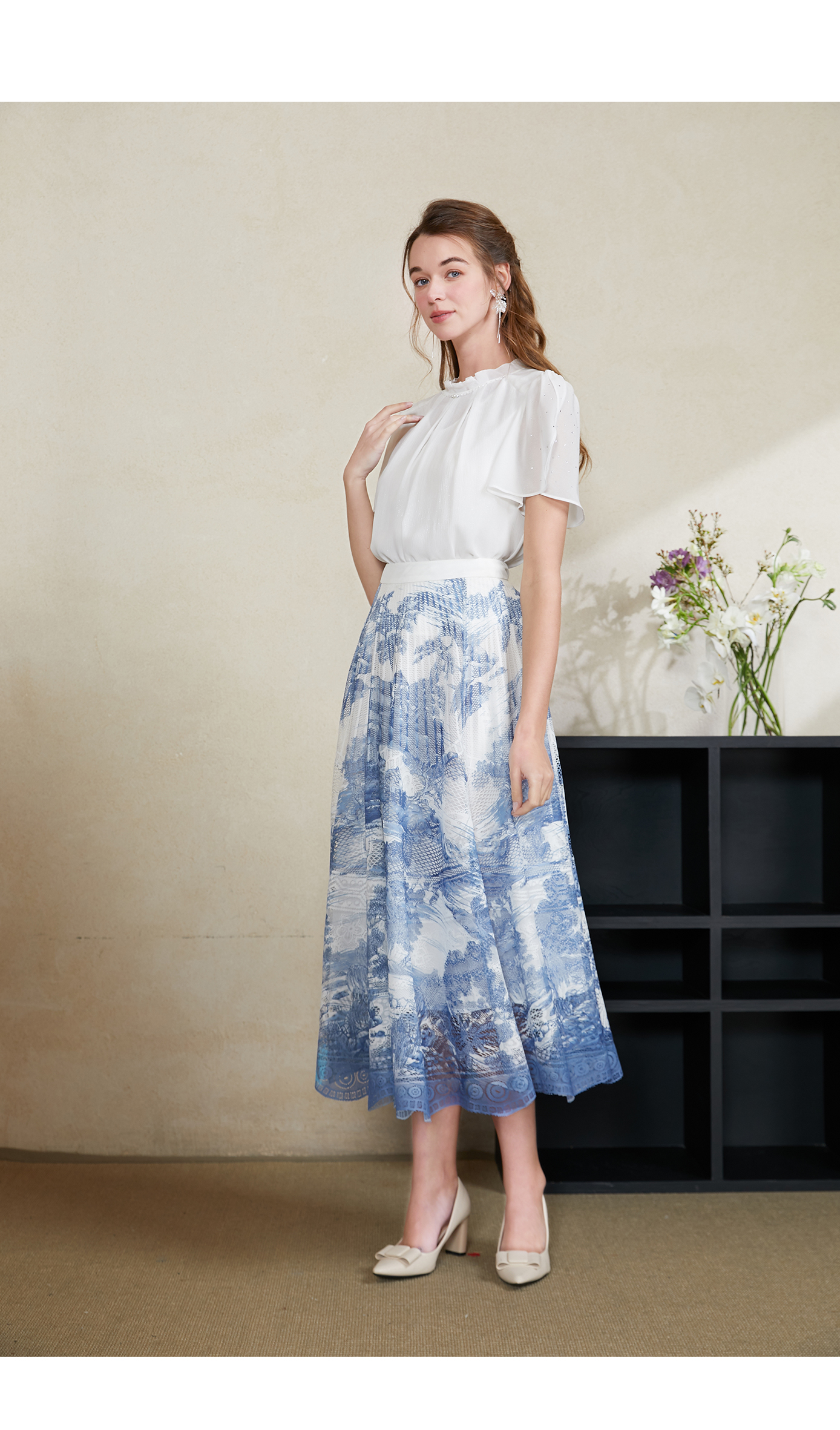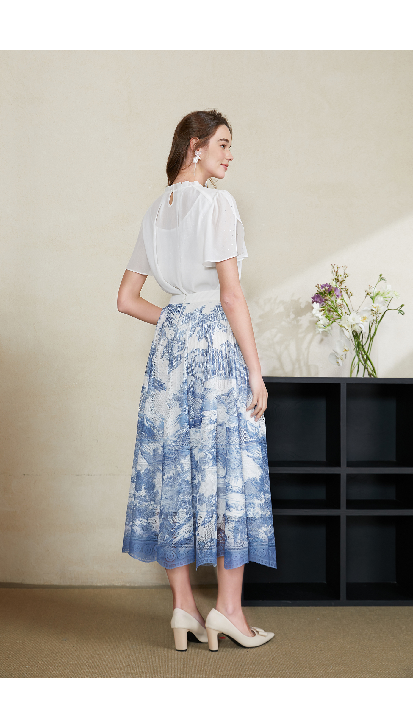 EIIR司歌厚雪纺印花蝴蝶结衬衫长袖套头气质职业ET881397