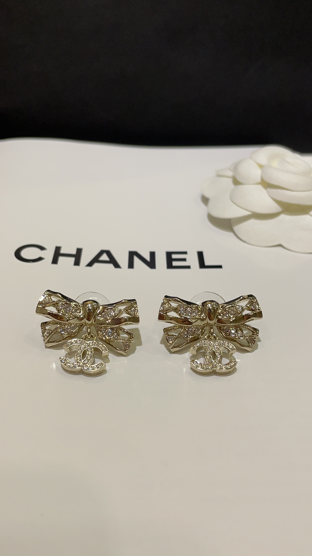 【深度定制】zp开版 CHANEL香奈儿镂空镶钻蝴蝶结双C金色耳钉 镂空镶钻小蝴蝶结温柔又气质 很适合日常佩戴哦🎀精致度满分 越看越美~