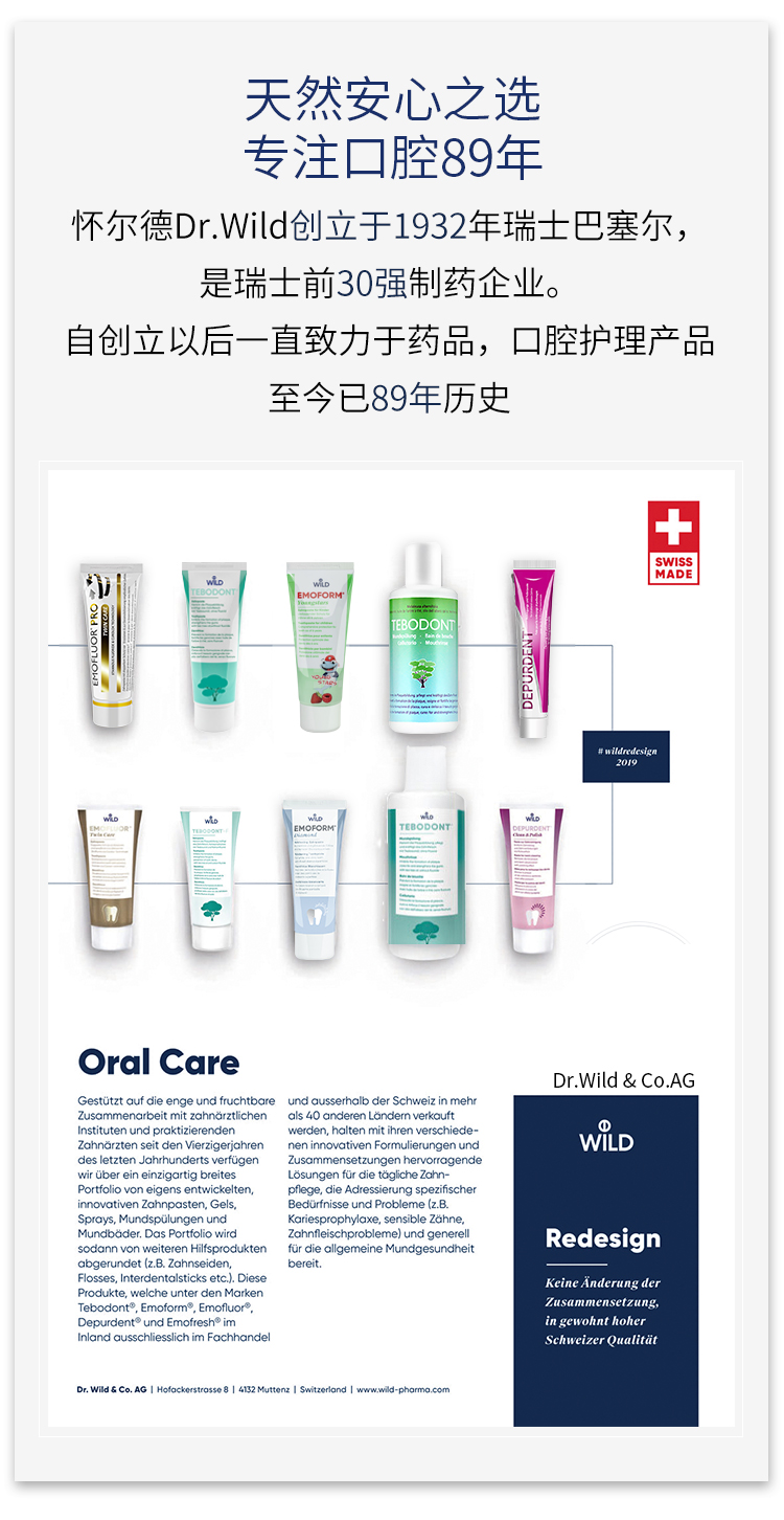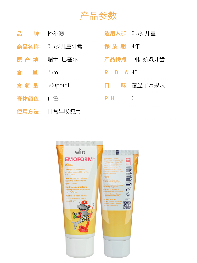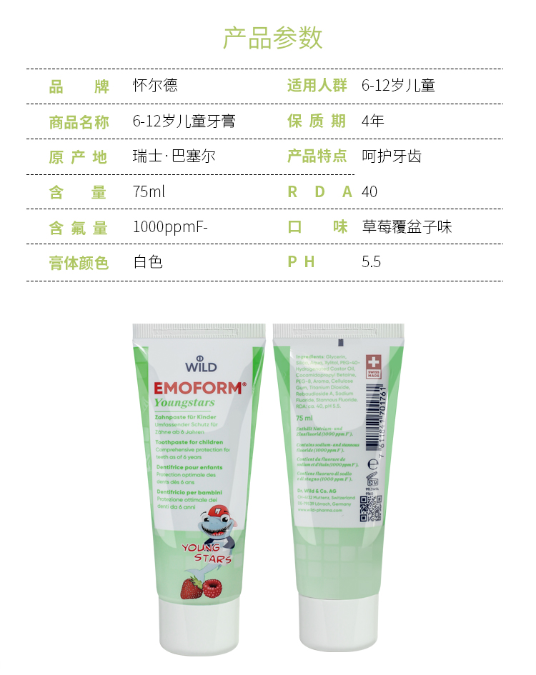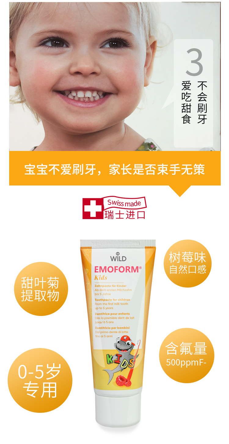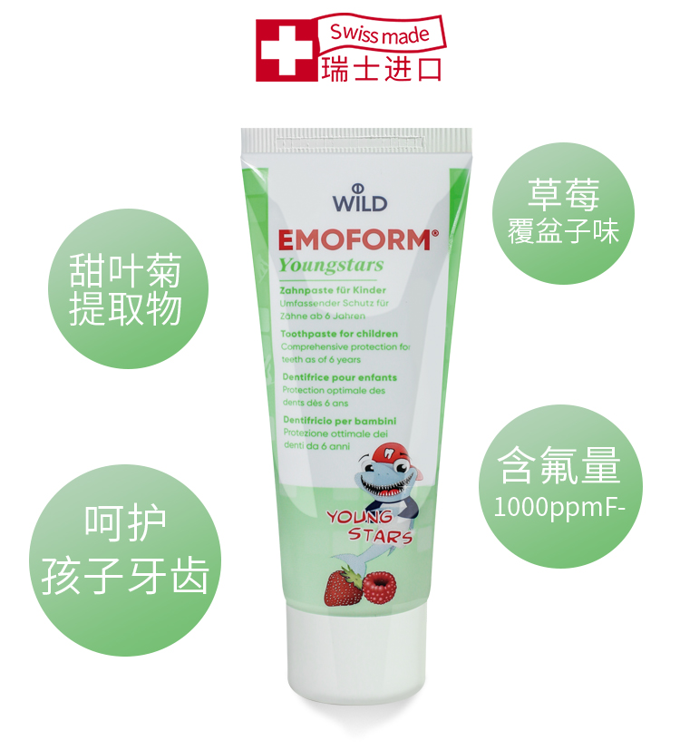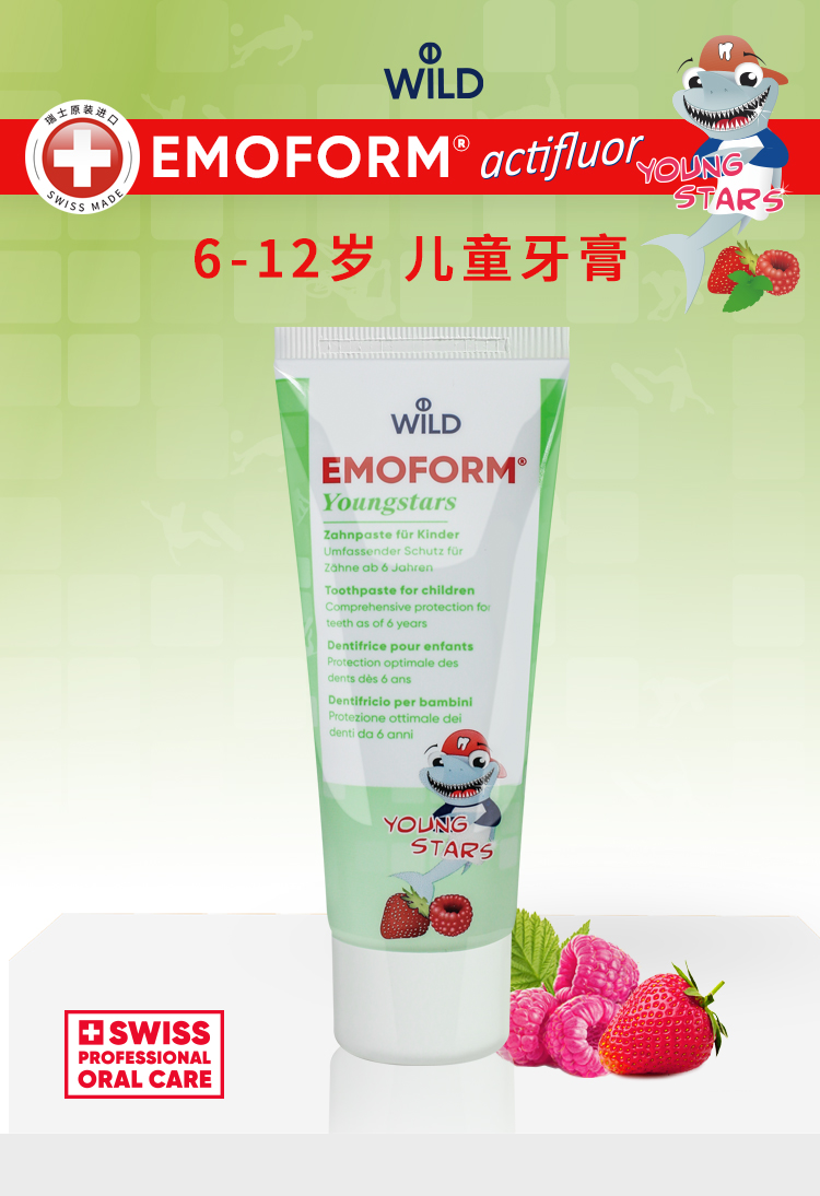 【云优选】瑞士Dr.Wild怀尔德1-5岁 | 6-12岁儿童牙膏含氟配方甜叶菊糖苷 买即赠牙刷 48h发货不支持7天无理由,介意慎拍!