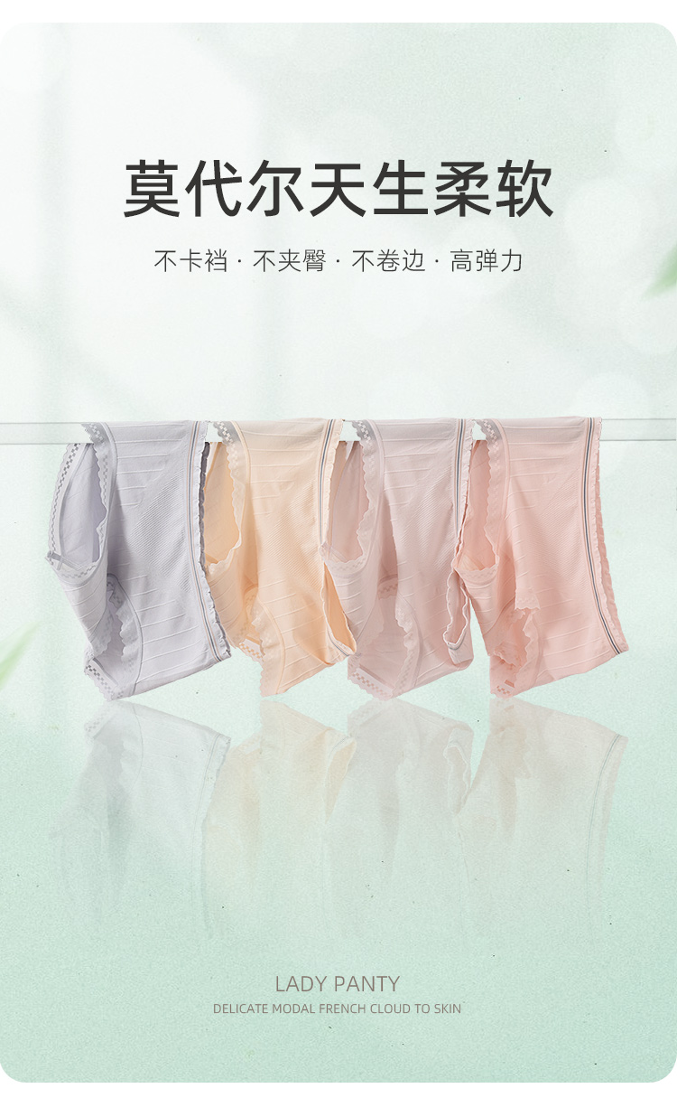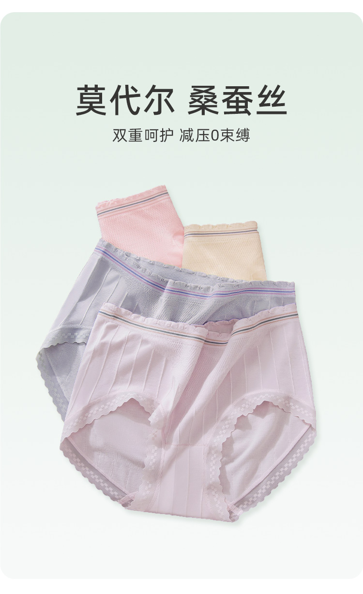 莫代尔内裤女士中高腰底裤蕾丝边桑蚕丝底裆少女春夏季薄款DKM1344