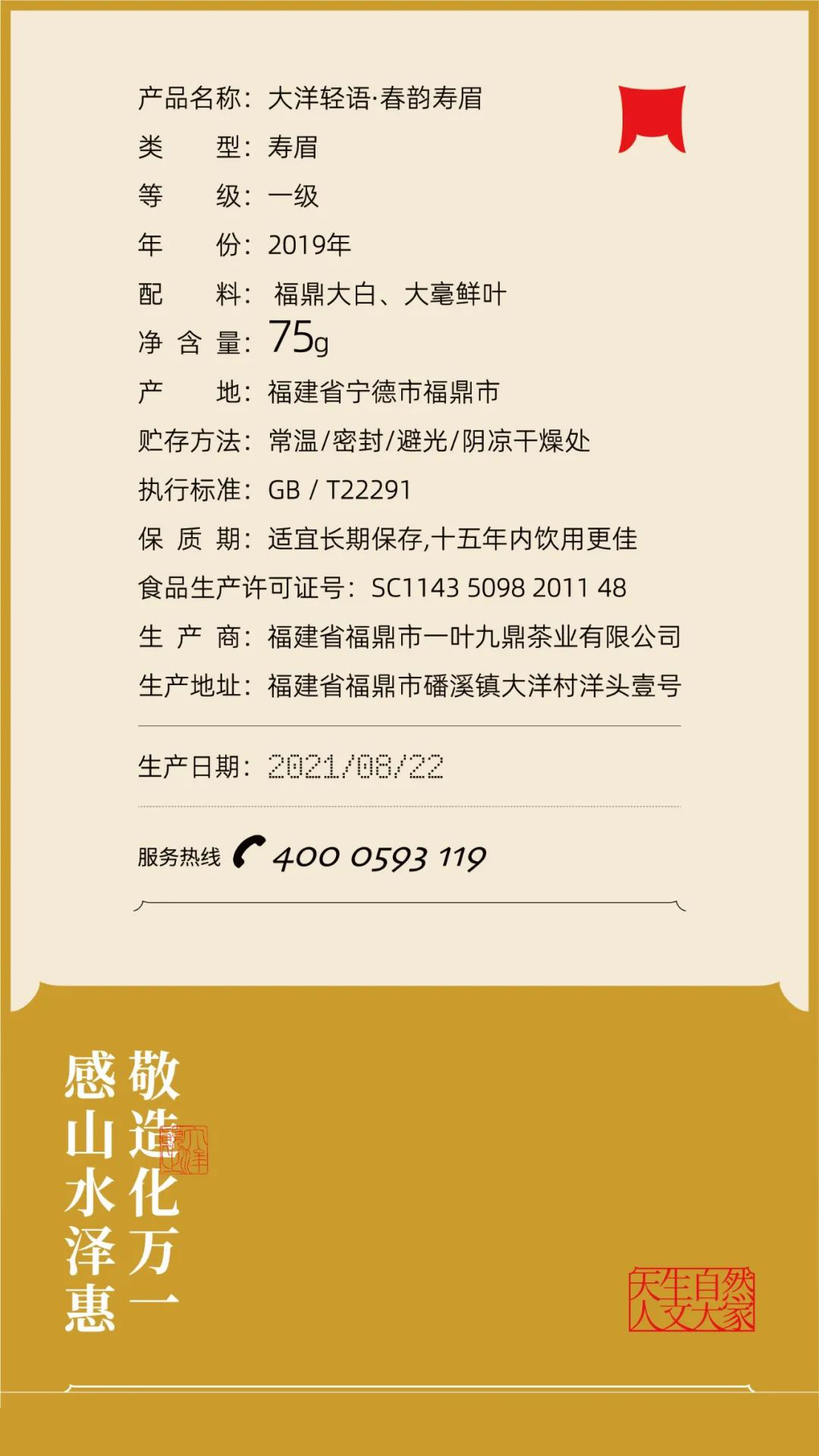 白茶丨一叶九鼎 2019年原料 大洋轻语 · 春韵寿眉 75g