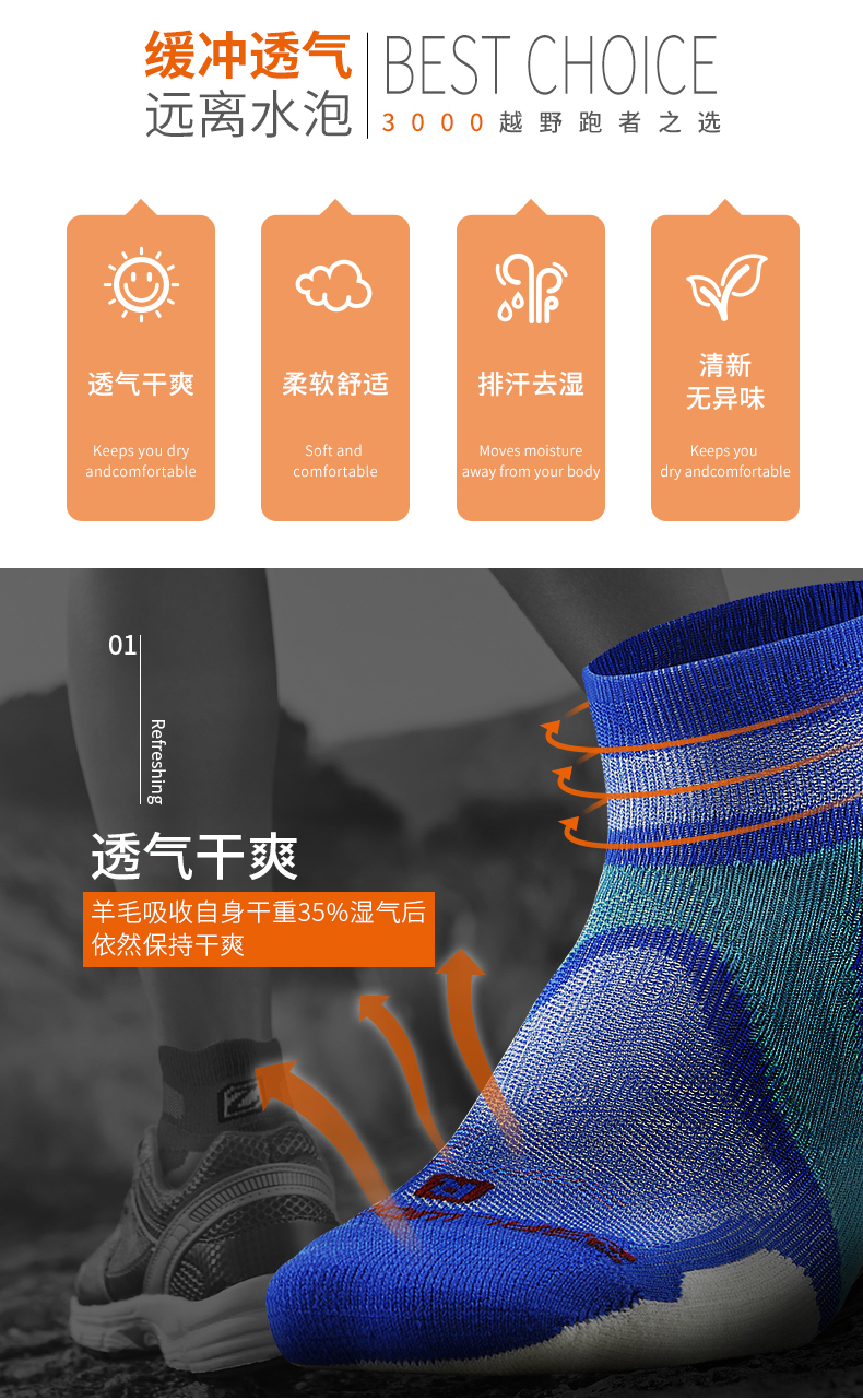 限时特惠99元/2双 ZEALWOOD/赛乐R1R2越野跑功能袜美丽诺羊毛 缓冲 排汗 防臭
