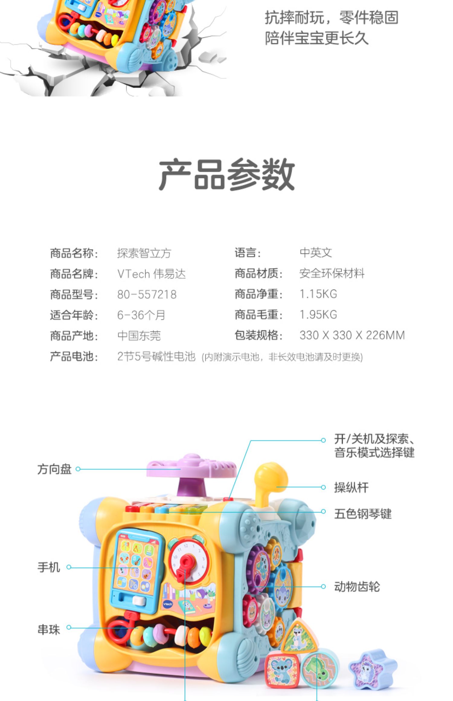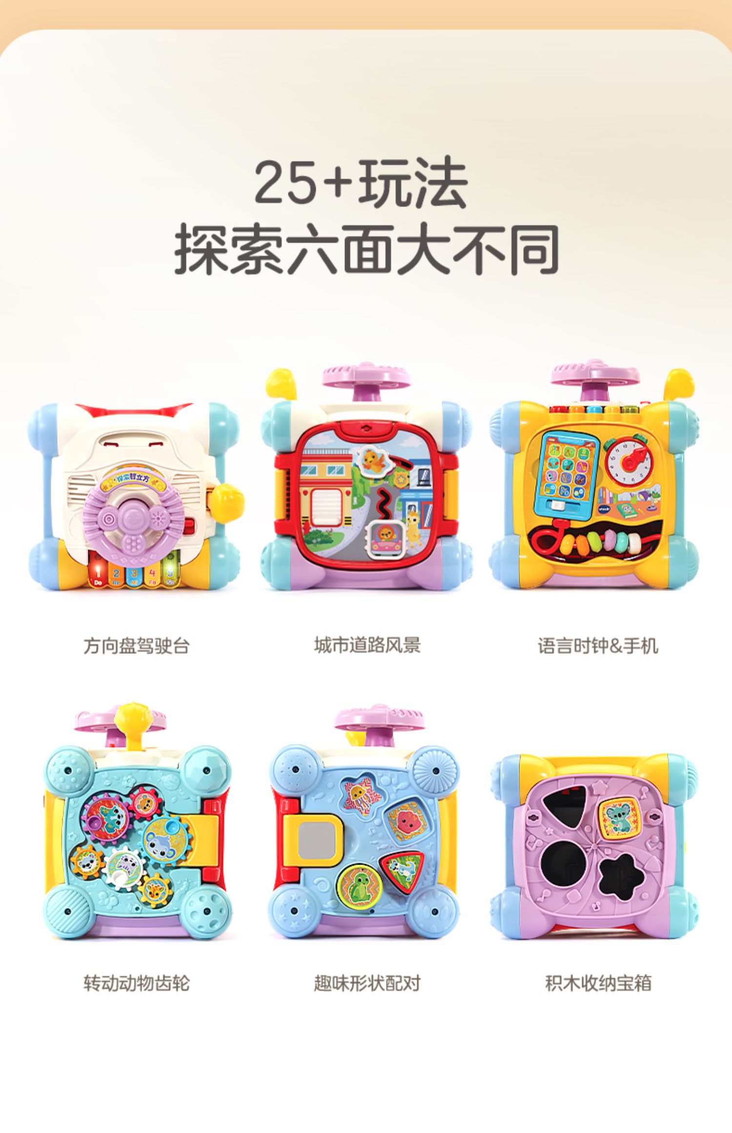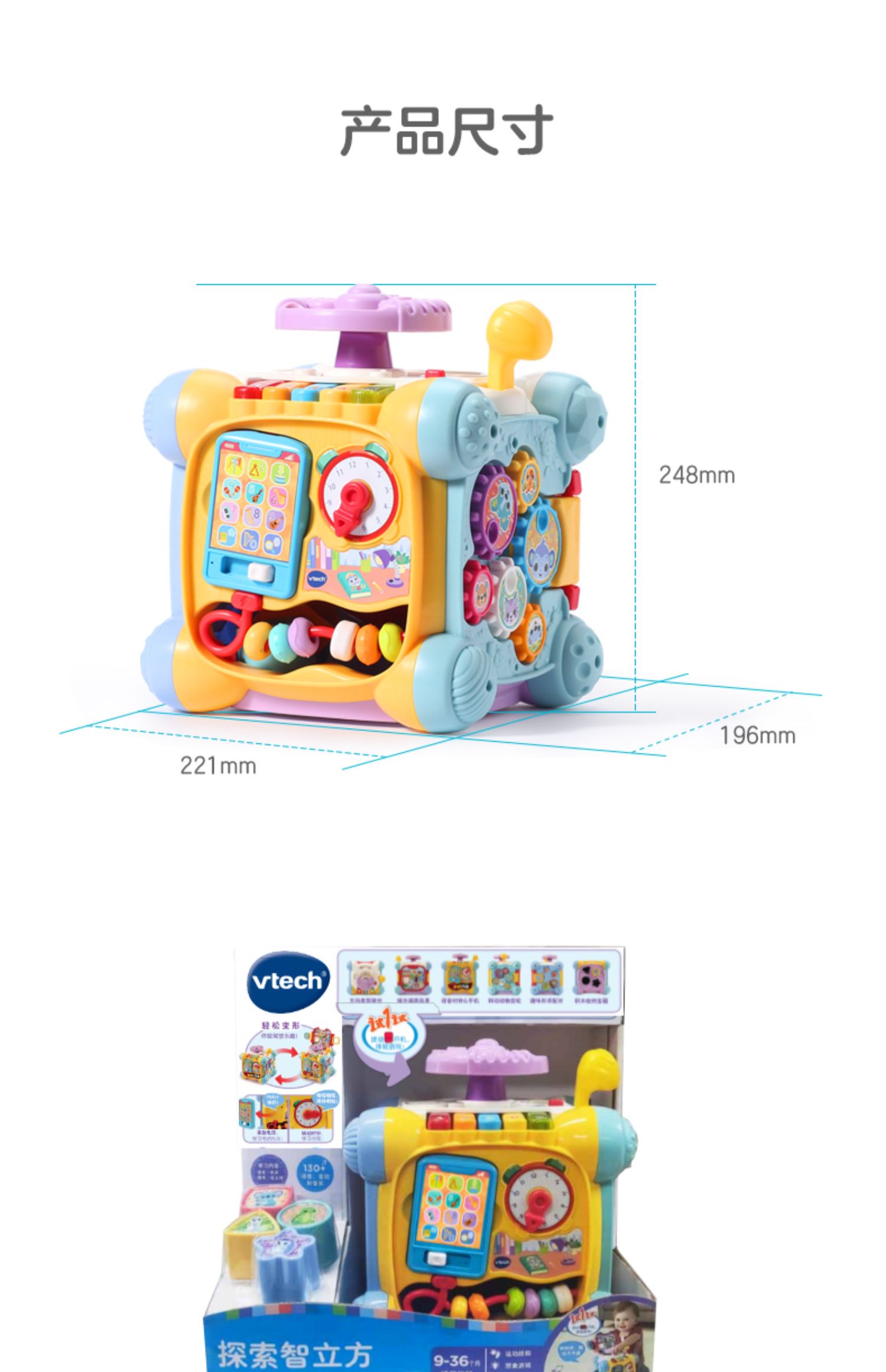 6月-3岁 | VTech伟易达 探索智立方 六面体多功能益智早教玩具2岁宝宝婴儿形状配对