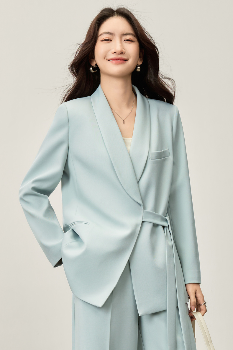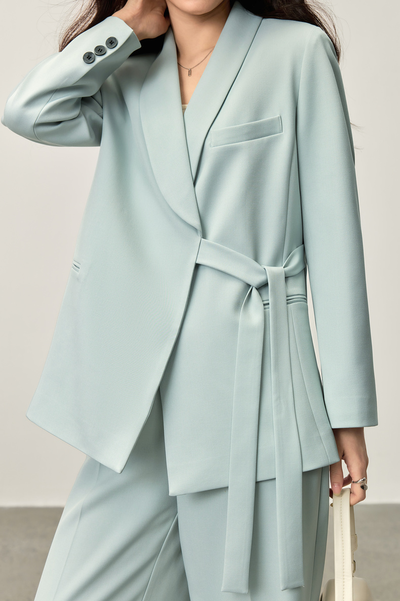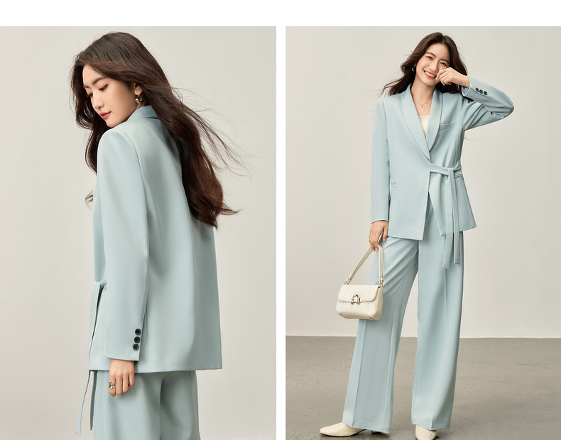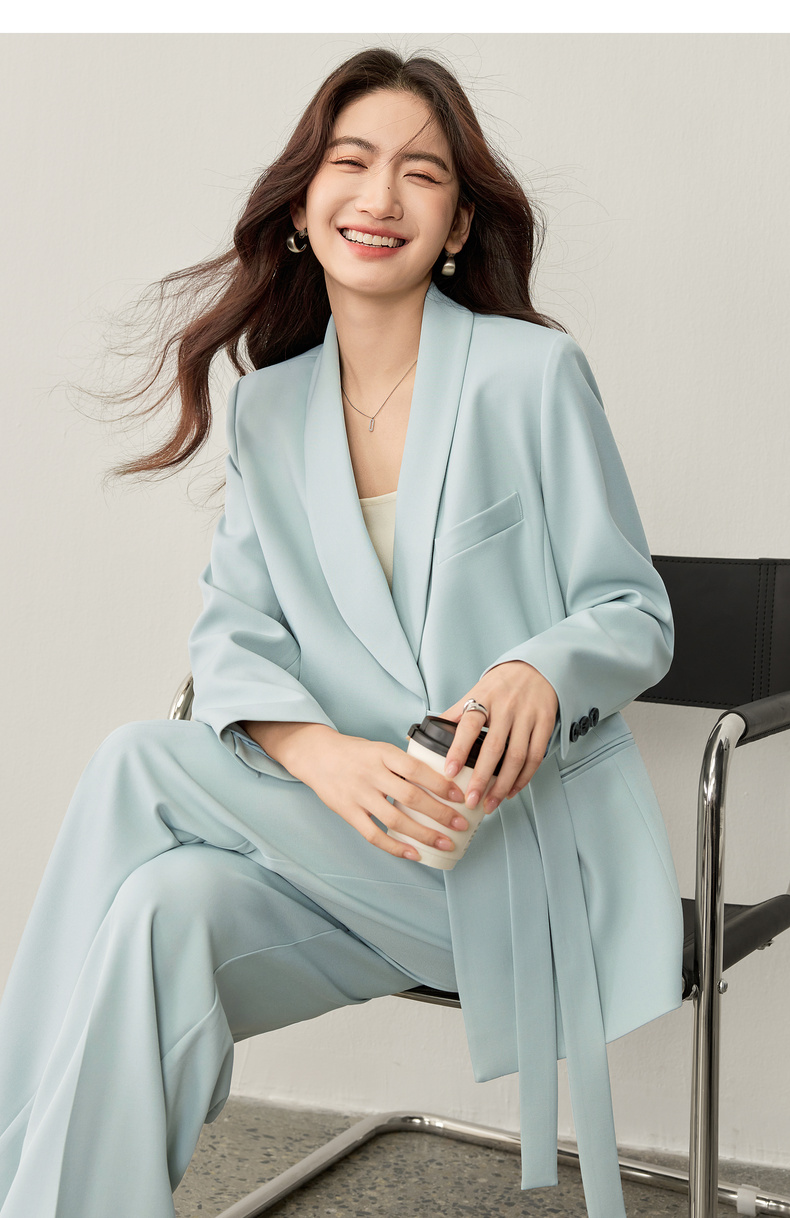 【内购】【免搭配套装】立裁分割青果领系带西装外套&松紧腰单褶直筒长裤-153ZE2509