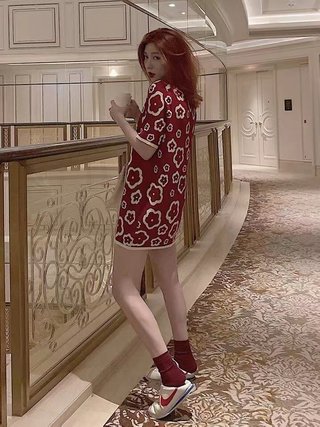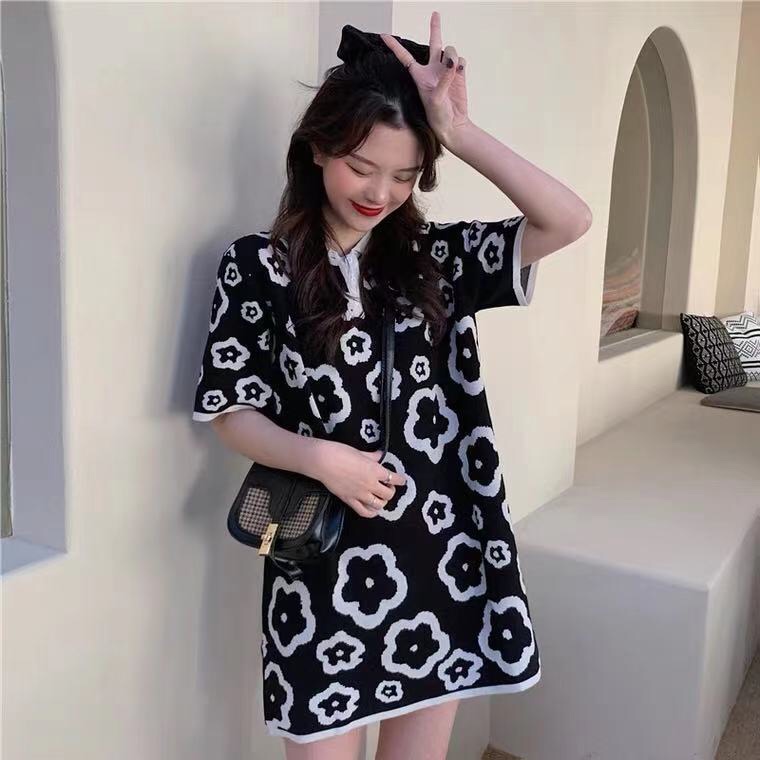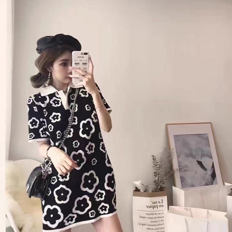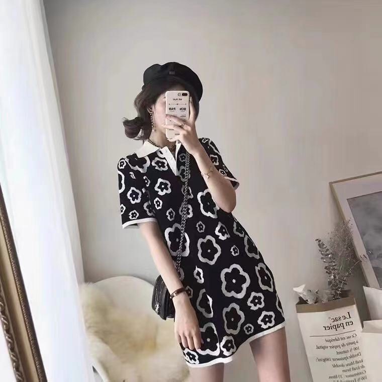2166# 新品上新🔥🔥 针织返领短袖T恤连衣裙 颜色:红色,黑色 尺码:M~L 黑色上身