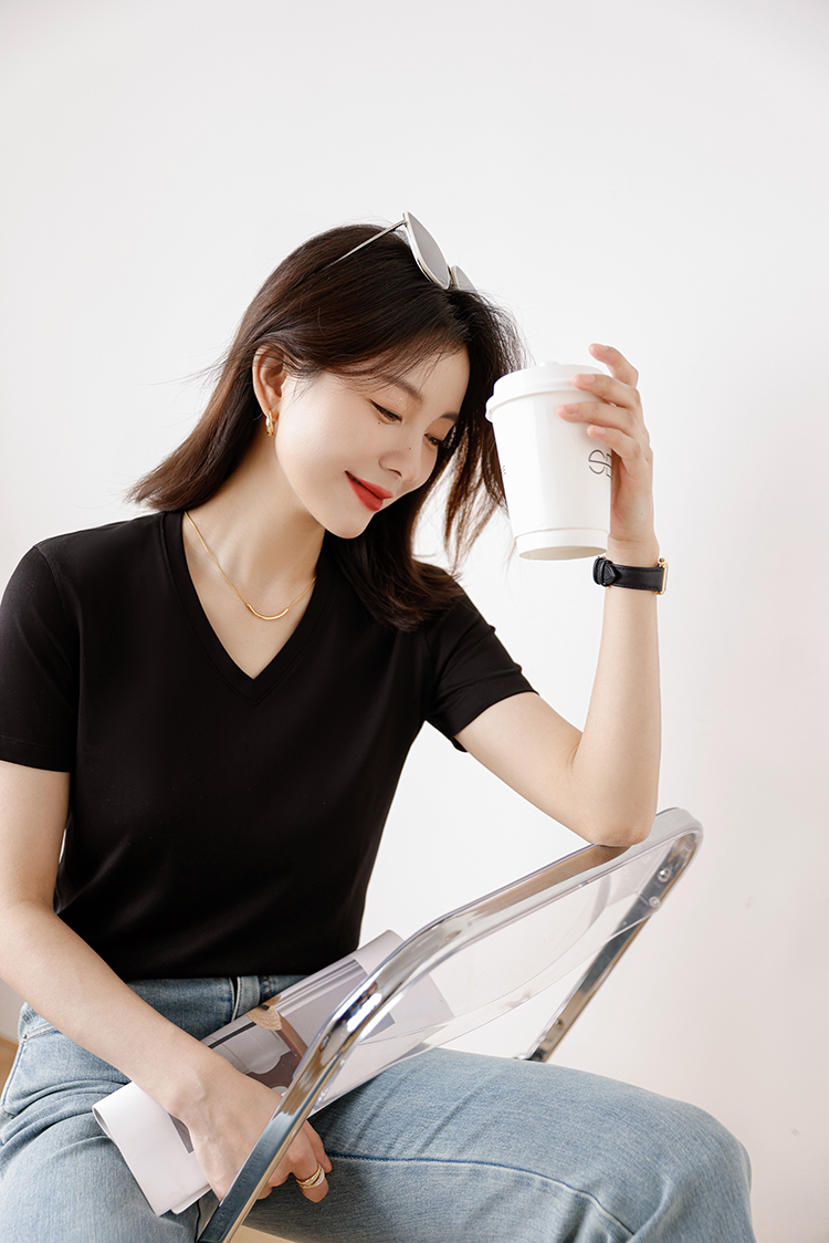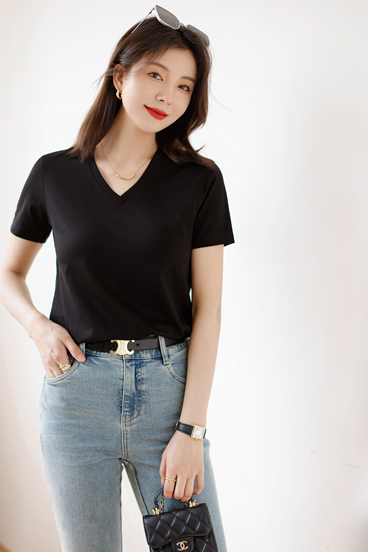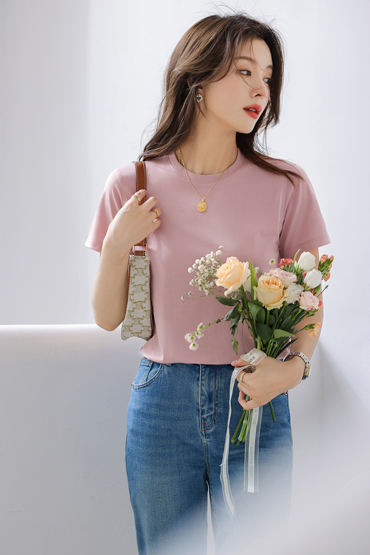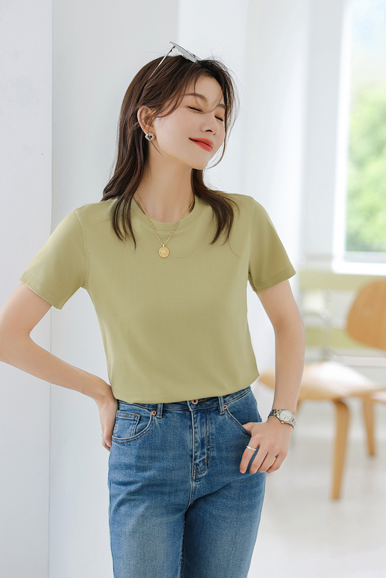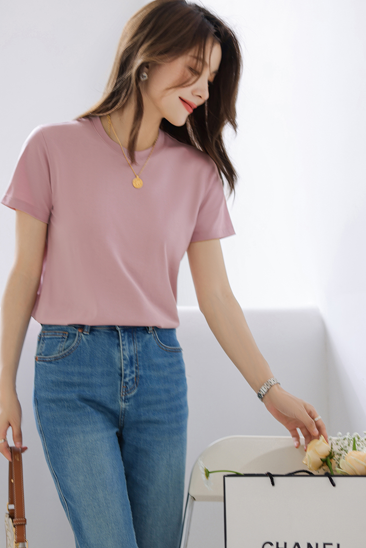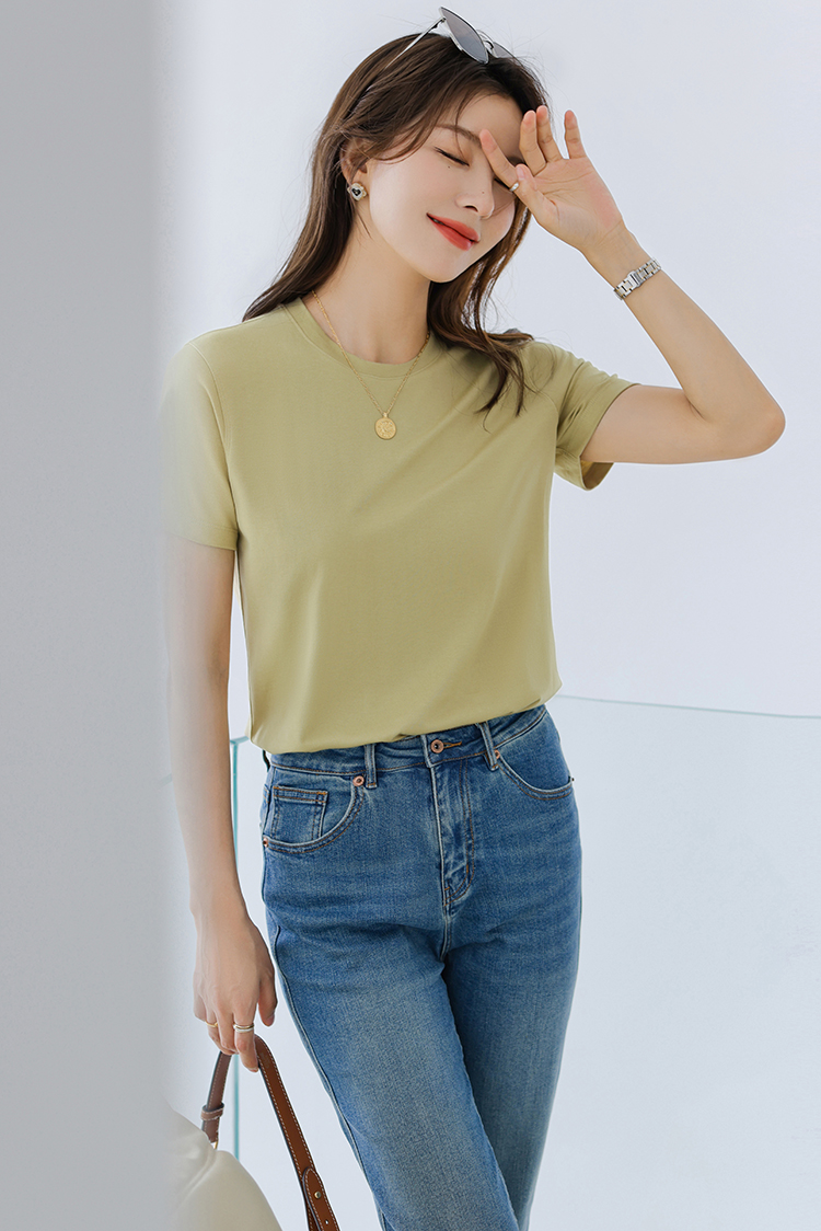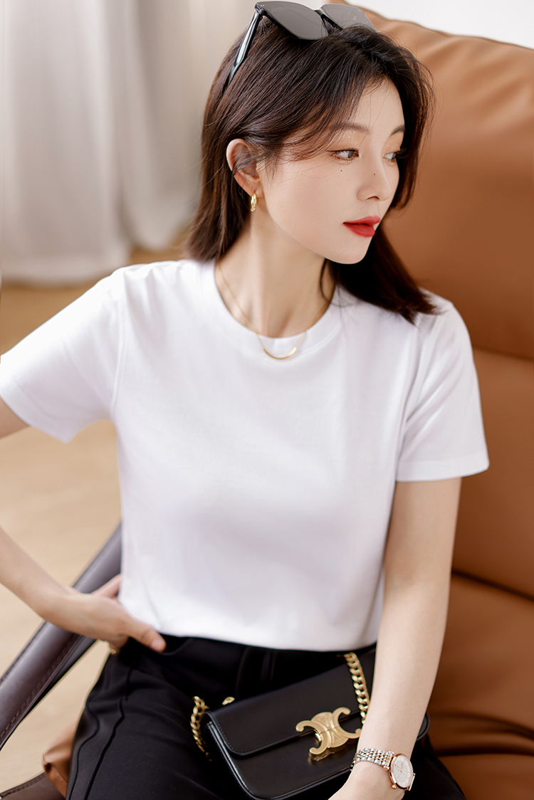 轻奢定制 棉柔速干! 春夏宽松显瘦打底纯色短袖女百搭圆领内搭薄T恤