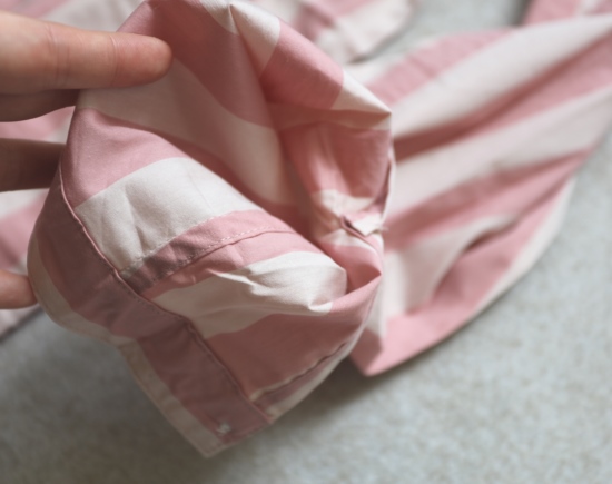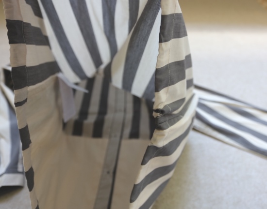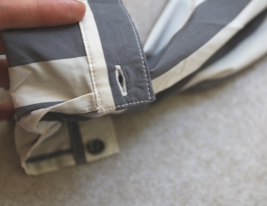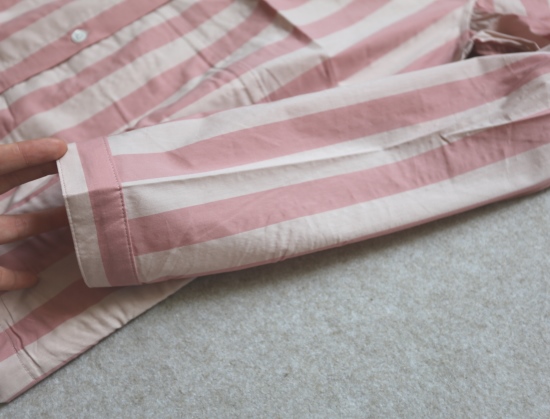 领子和扣襟条 都是双层布料 衬里 袖筒接缝处 都有包边
