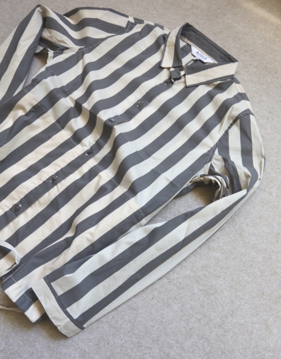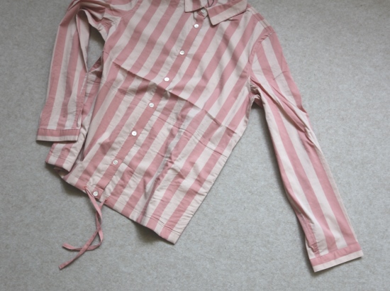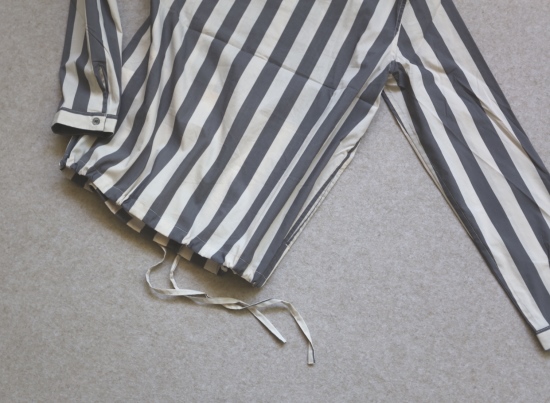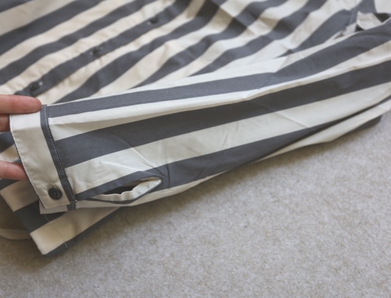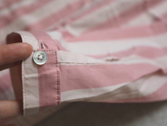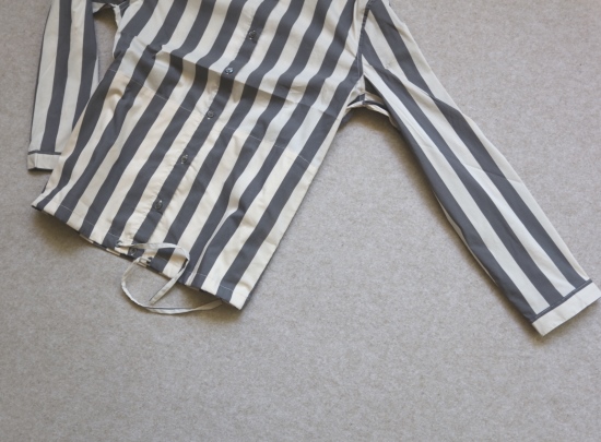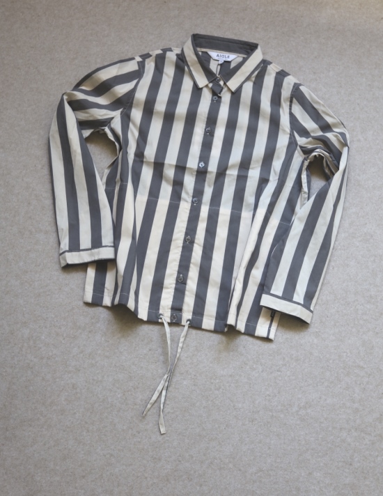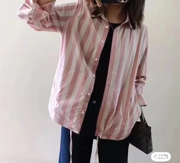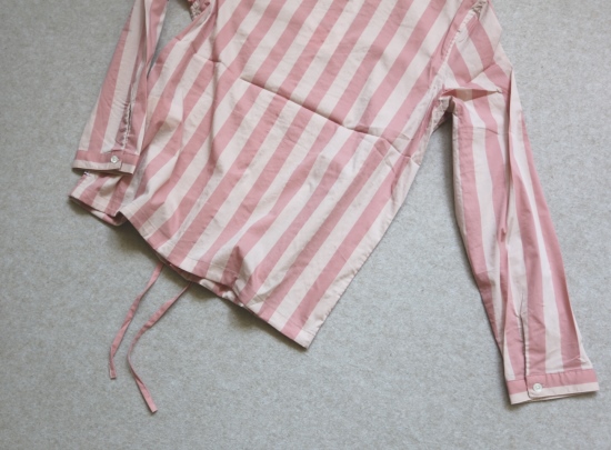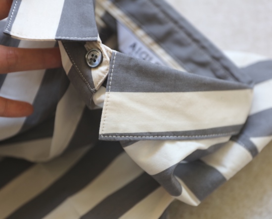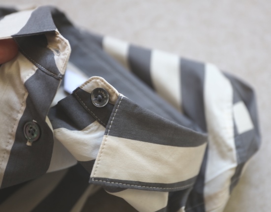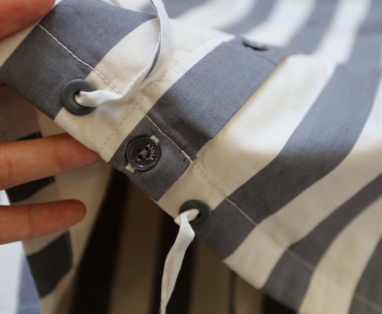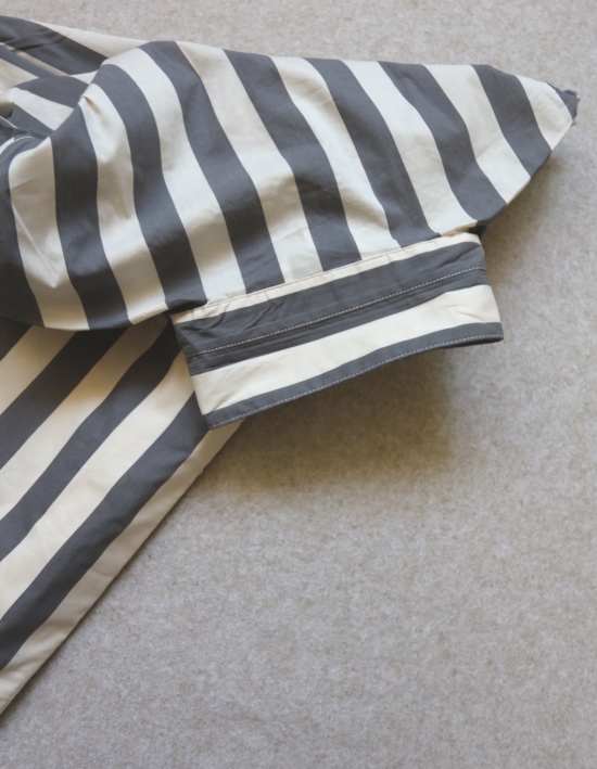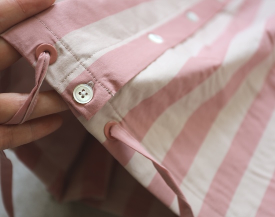 有肩线 前襟小纽扣 都是天然贝壳的 粉条/母贝白扣 灰条/螺钿黑扣