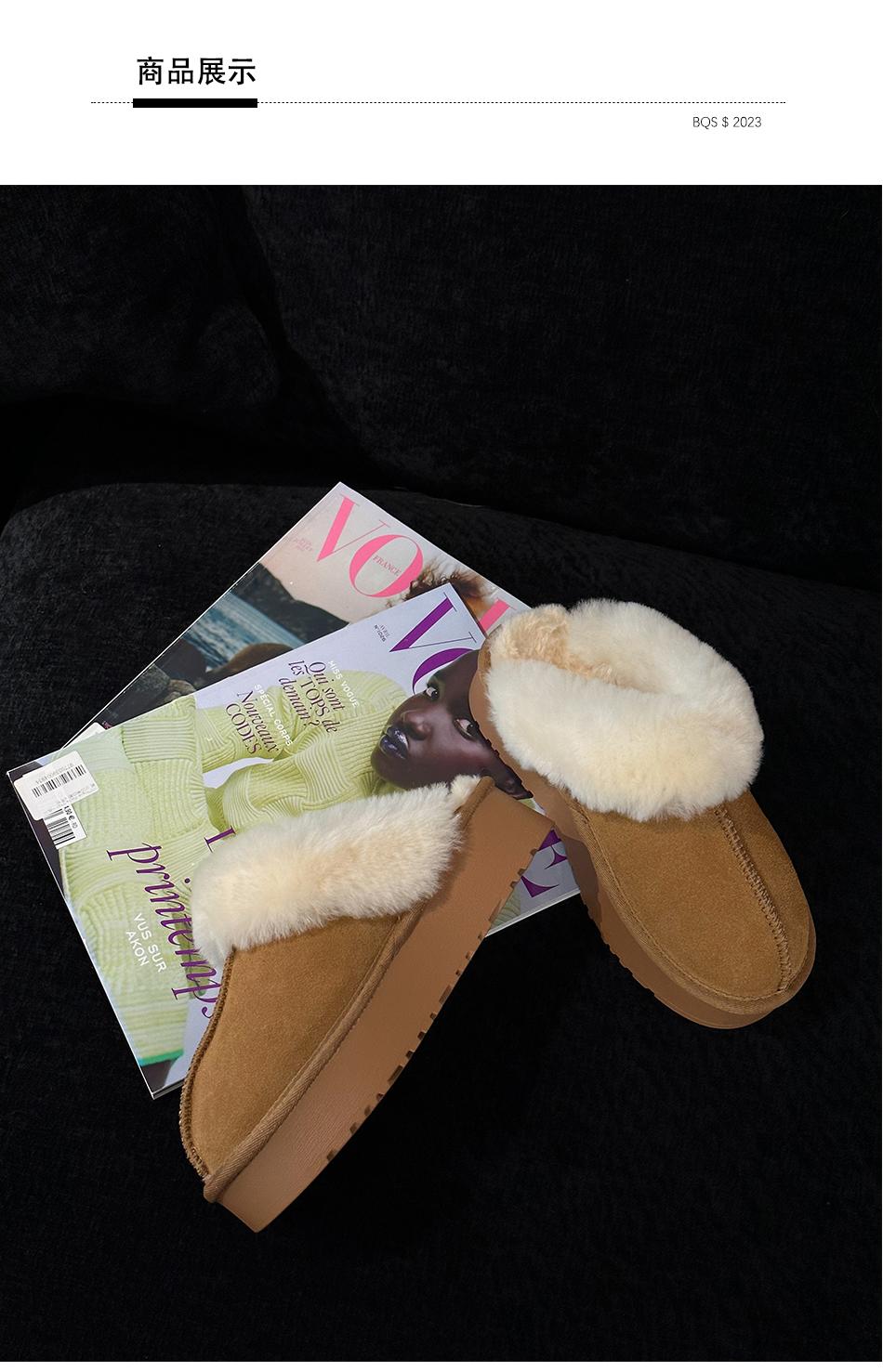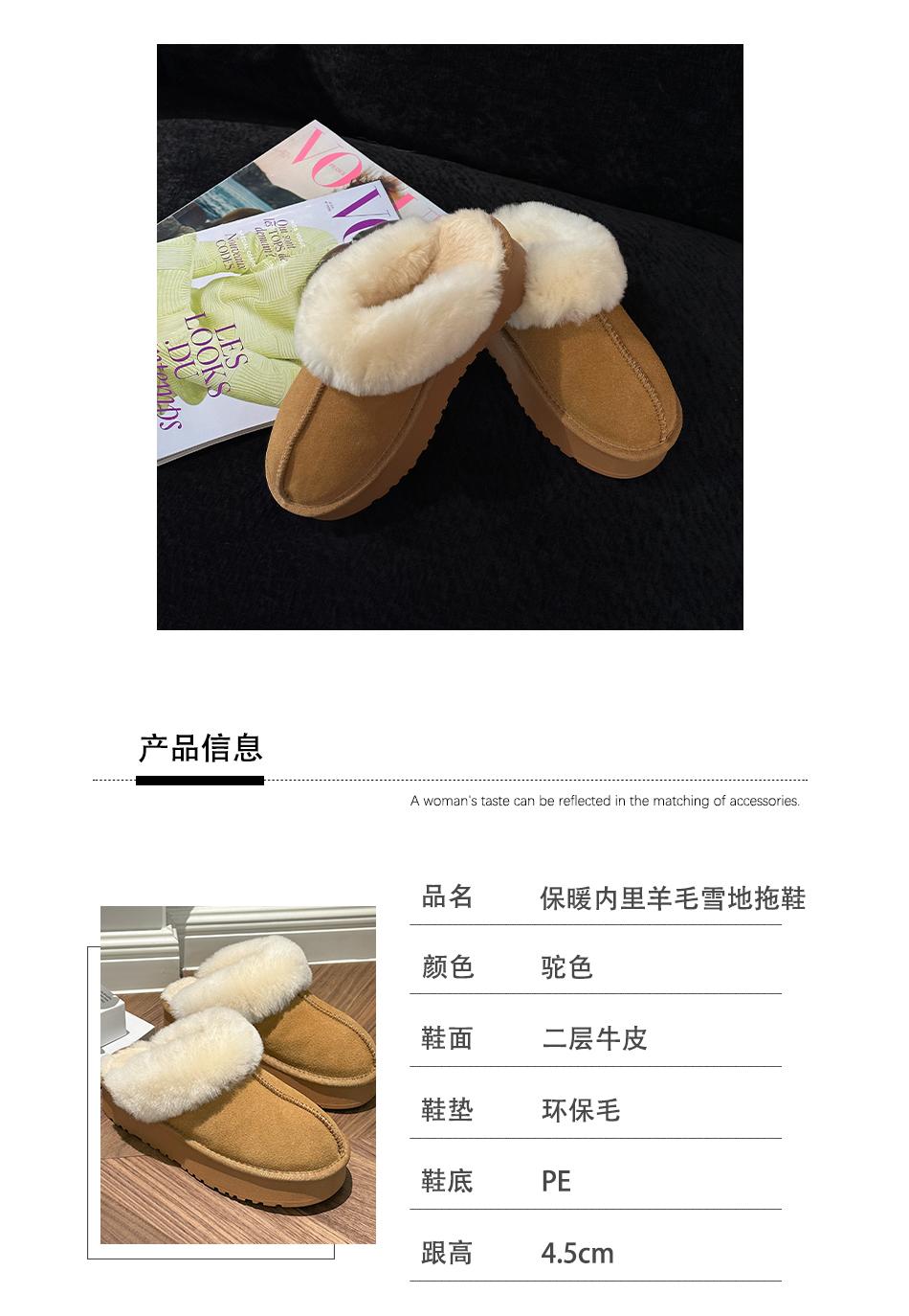 BEQUEENSTORY配饰 保暖羊毛内里跟高4.5cm秋冬雪地牛皮包头拖鞋