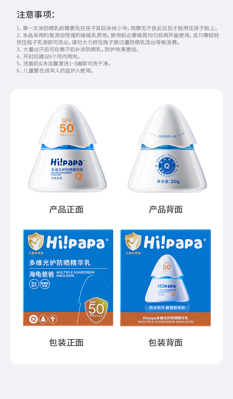 【海龟爸爸多维光护防晒霜】 小光盾Pro 15.7H 长效高倍防护,遇水汗防晒力更强