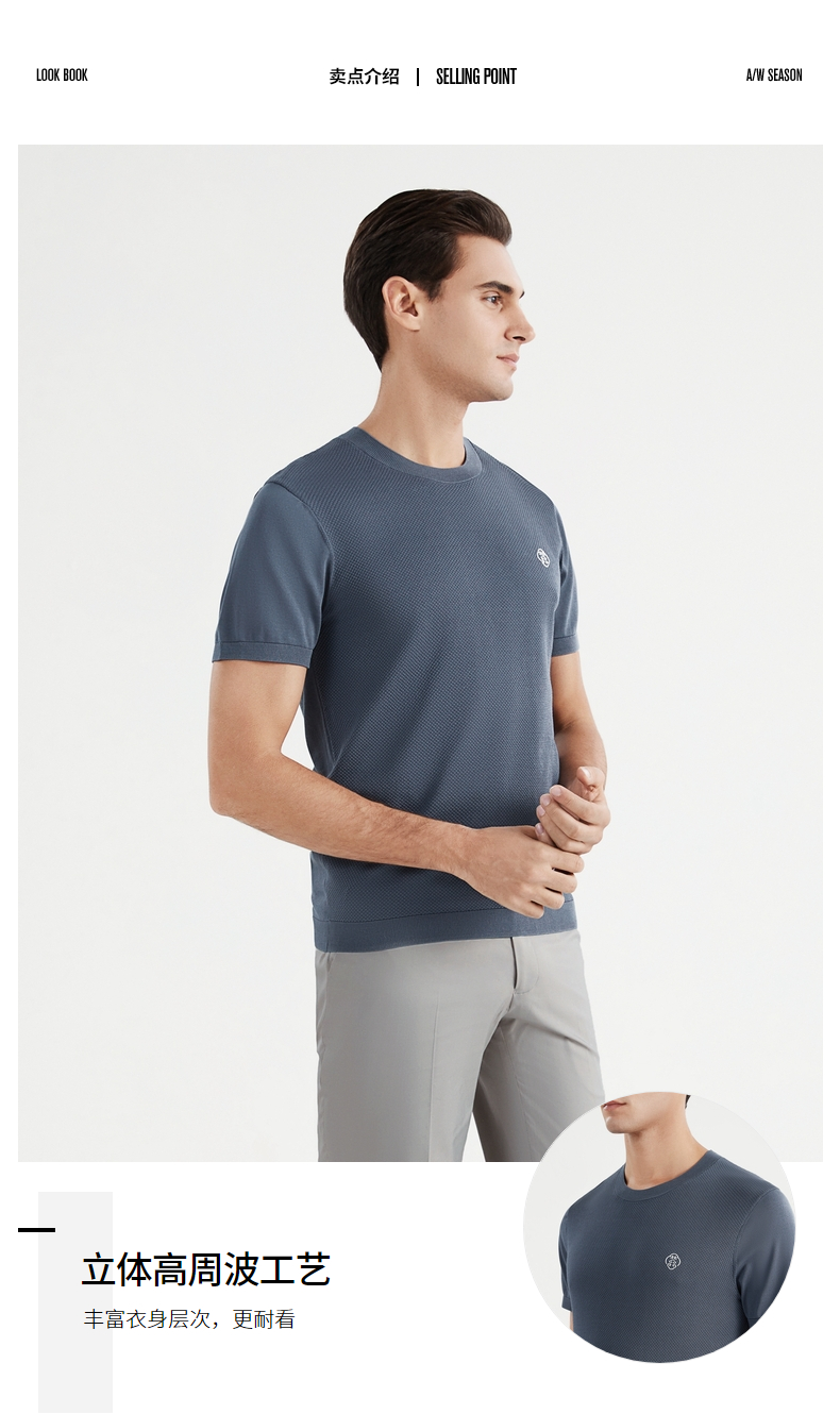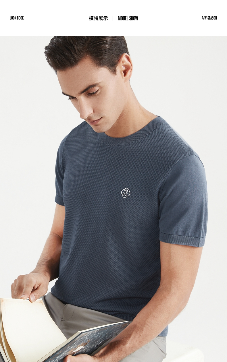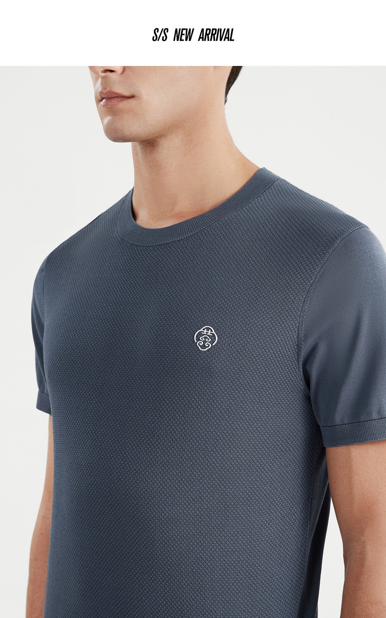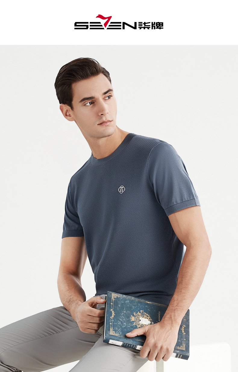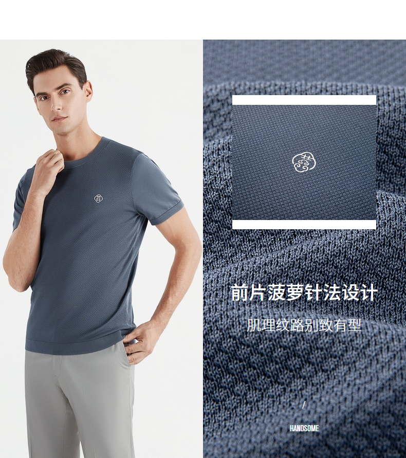 【中华立领】柒牌短袖t恤男时尚休闲百搭青年夏季薄款菠萝纹圆领体恤上衣 122T71630