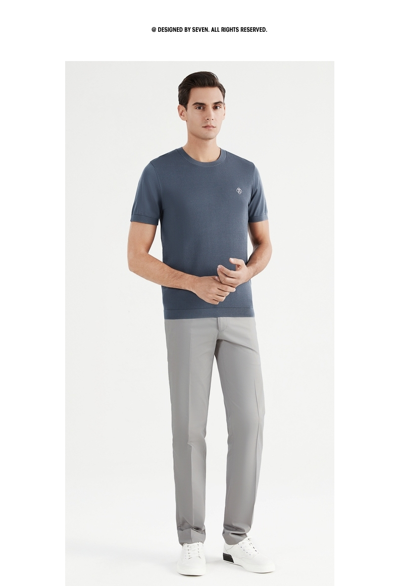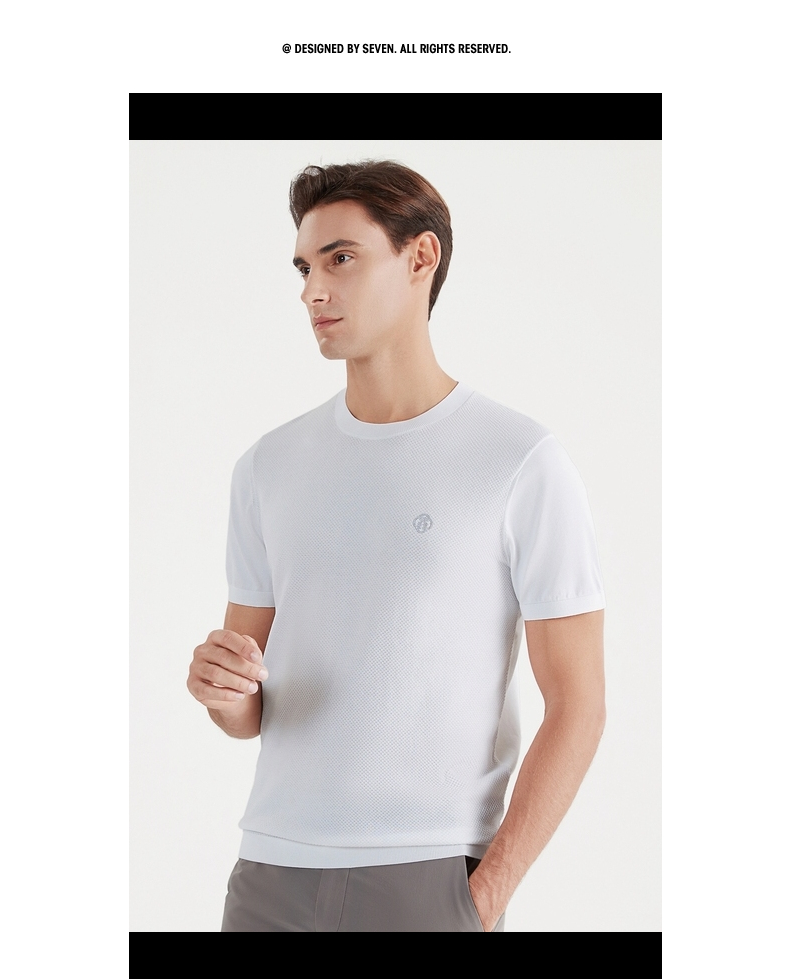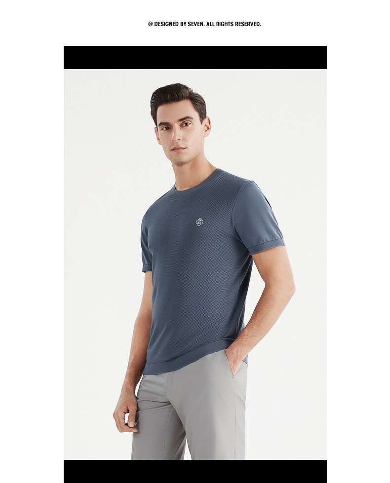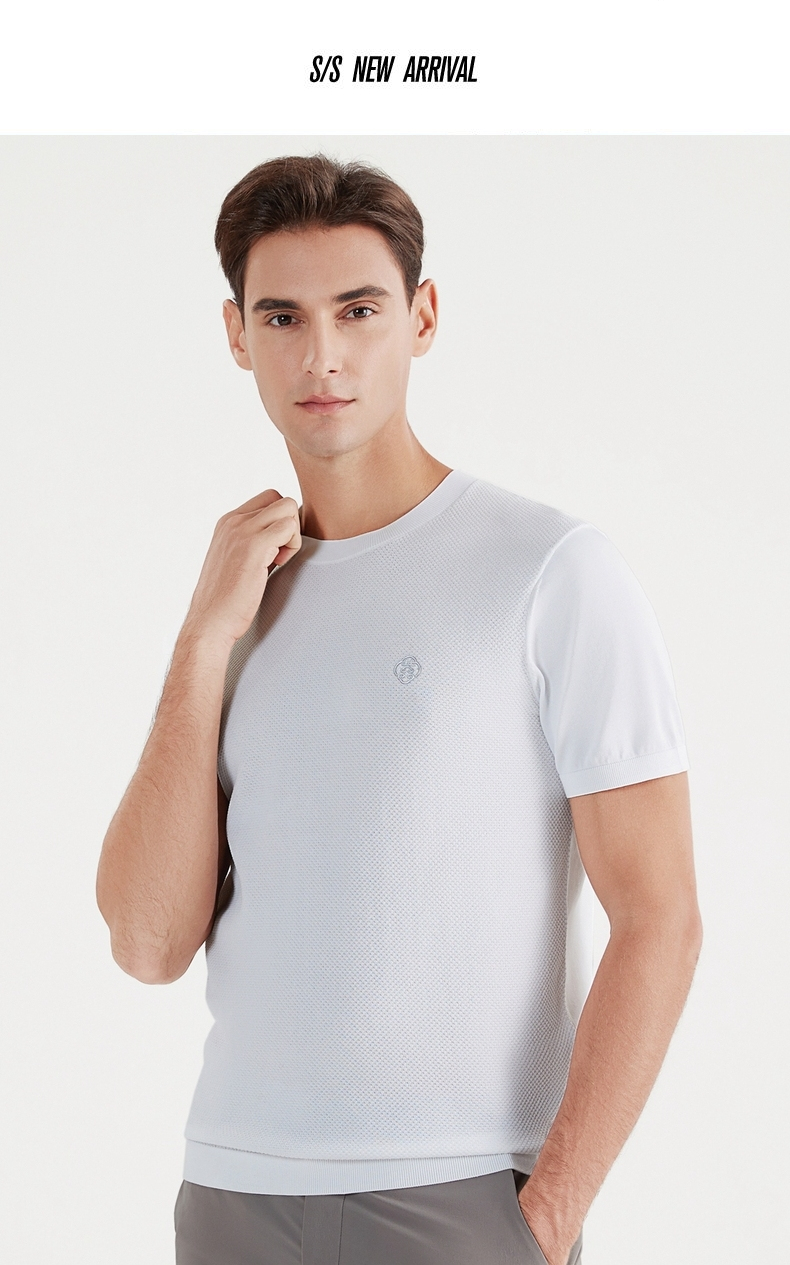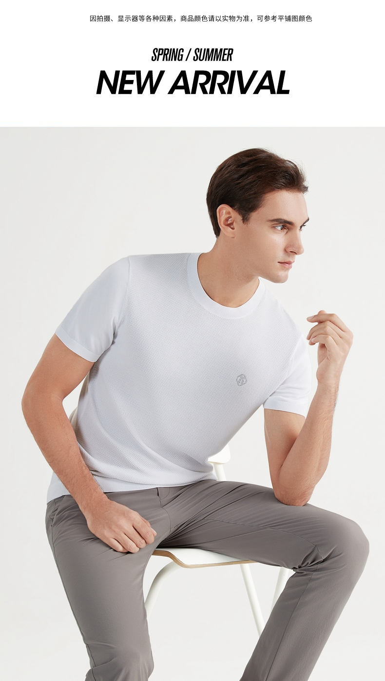 【中华立领】柒牌短袖t恤男时尚休闲百搭青年夏季薄款菠萝纹圆领体恤上衣 122T71630