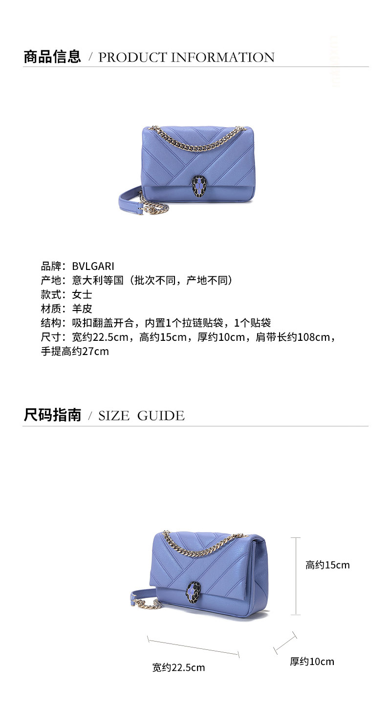 【国内现货】BVLGARI/宝格丽 2021款 女士小号SERPENTI CABOCHON系列羊皮蛇头扣绗缝手提单肩斜挎包 290617