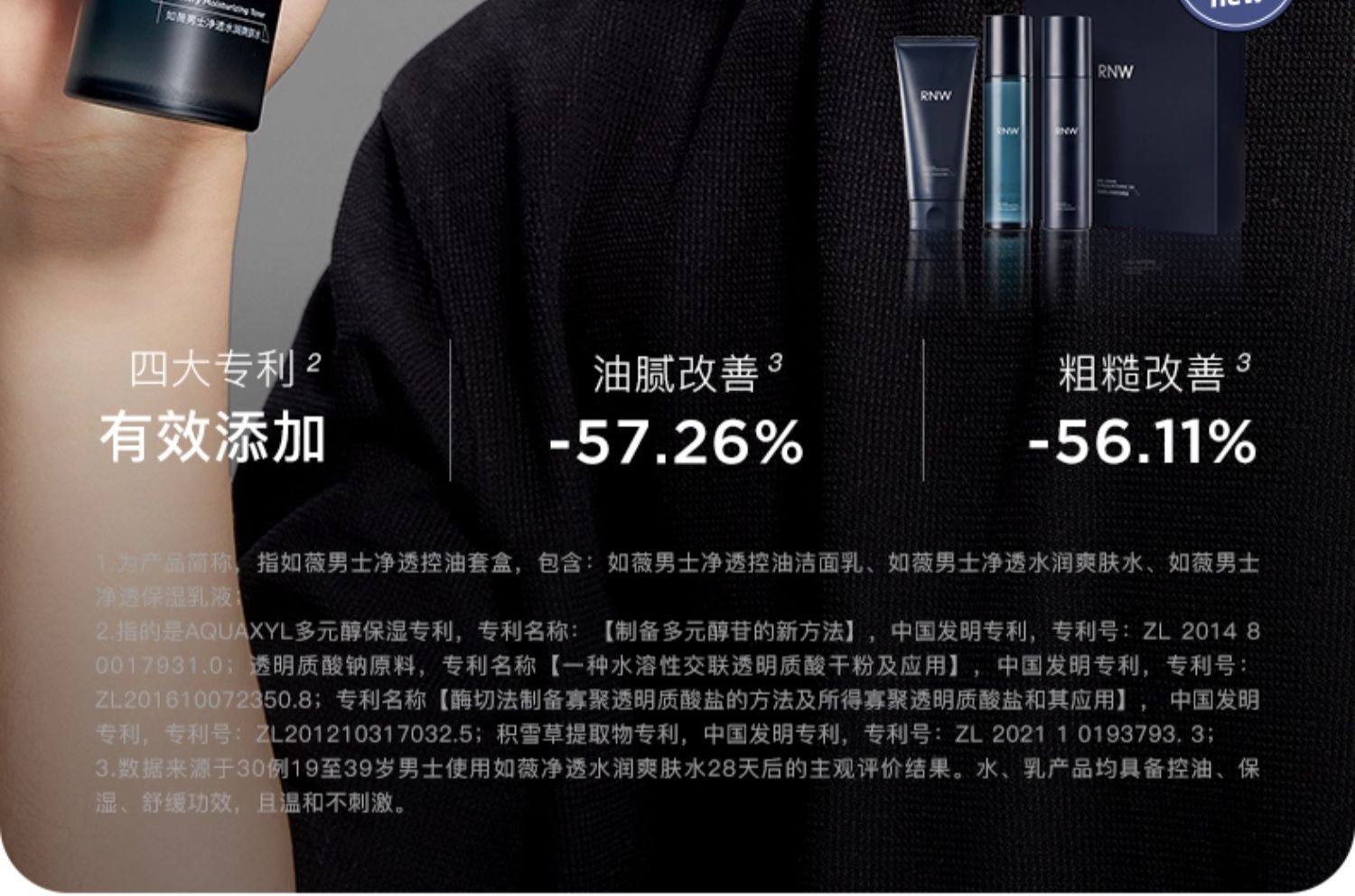 [送到男友心坎上] RNW男士水乳洁面三件套装 护肤品洗面奶控油男补水保湿三件套盒