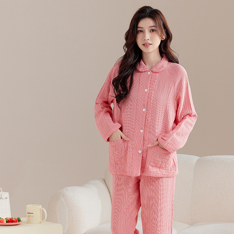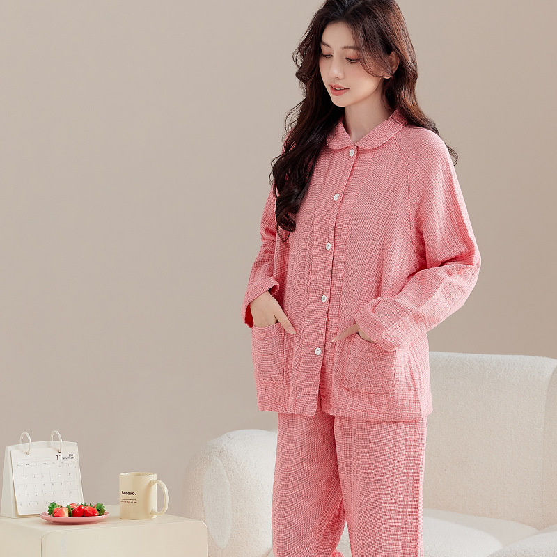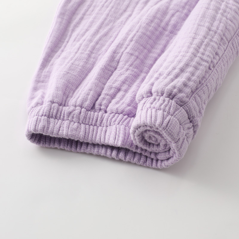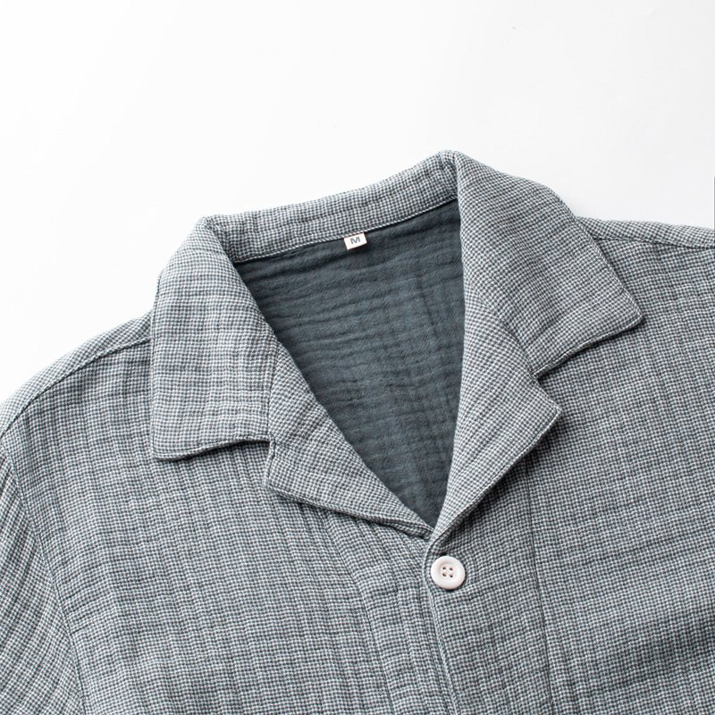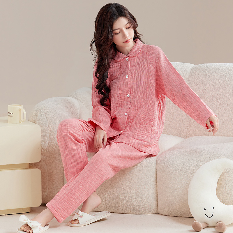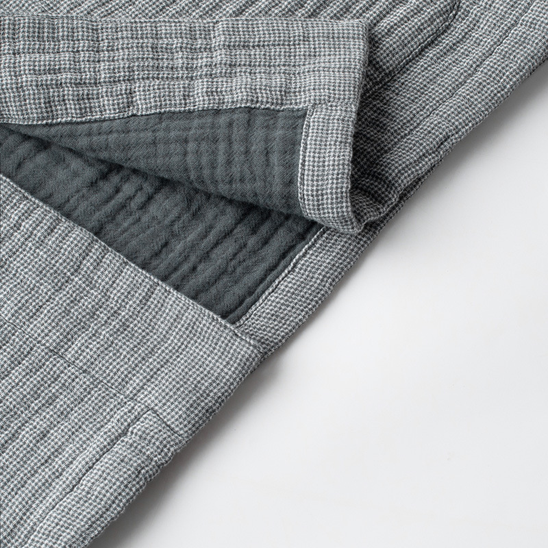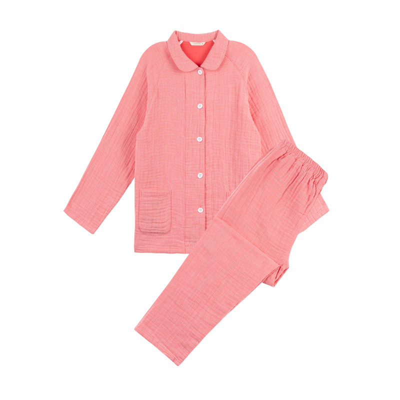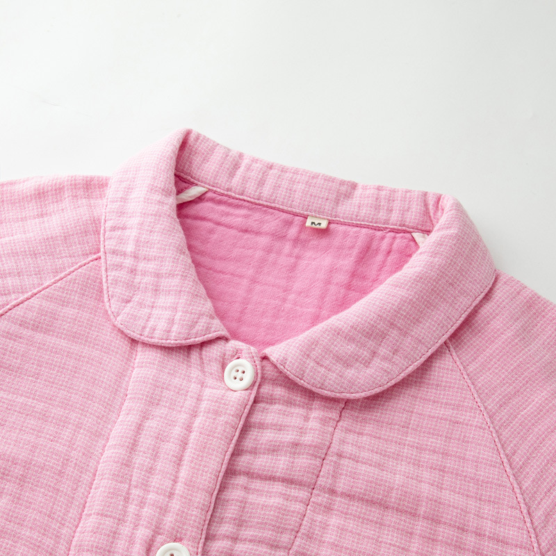 【纯棉细格四层纱睡衣】全棉四层纱家居服纯色多层纱睡衣男女情侣居家服套装