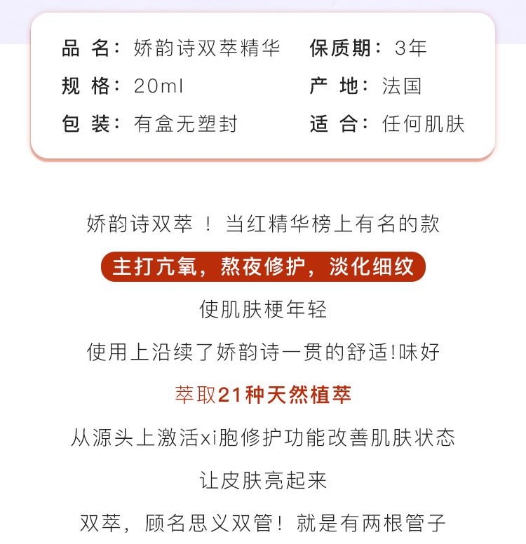 Clarins娇韵诗双萃焕活修护精华露20ml黄金双萃熬夜紧致提拉抗皱
