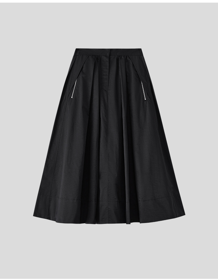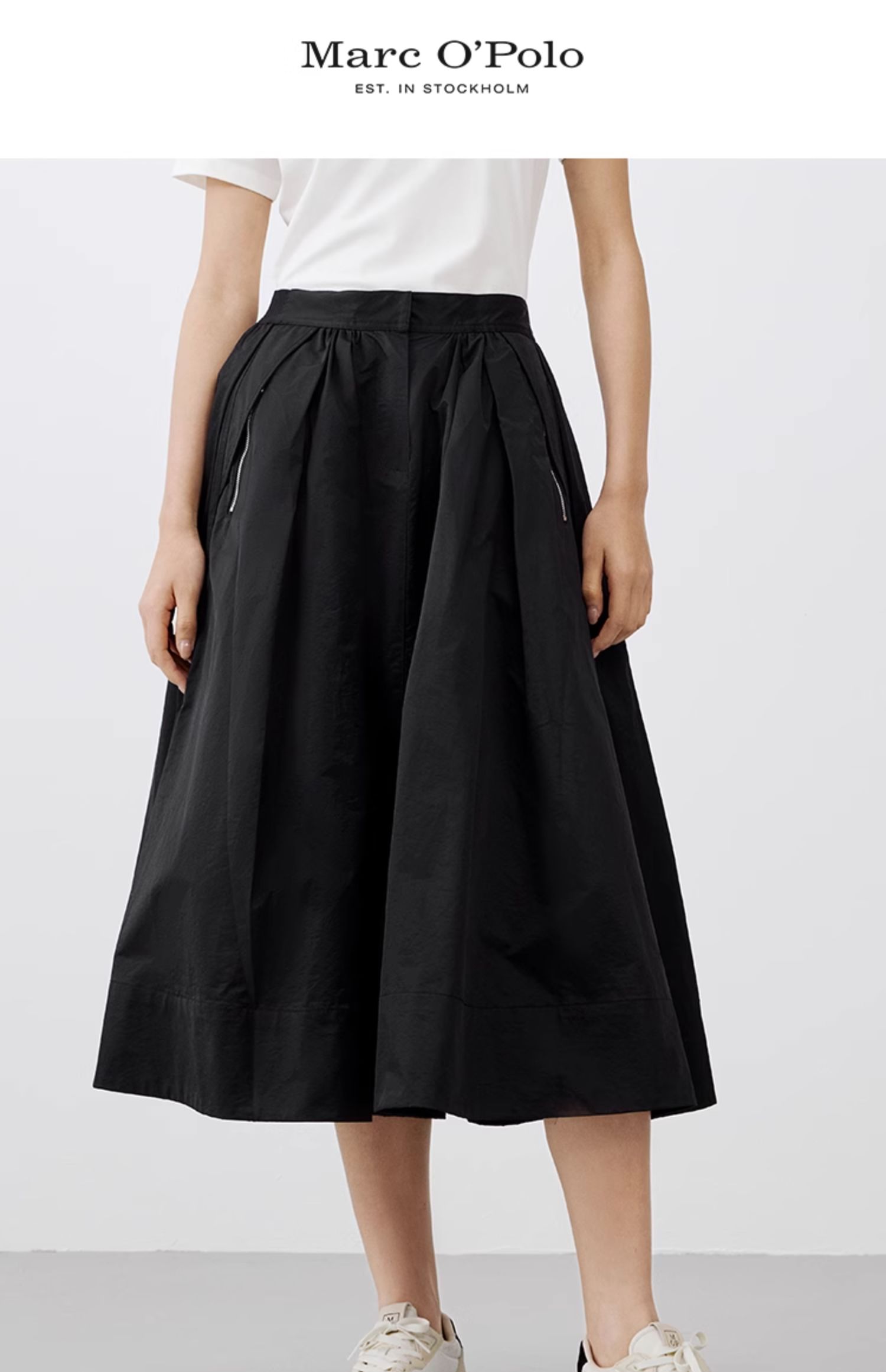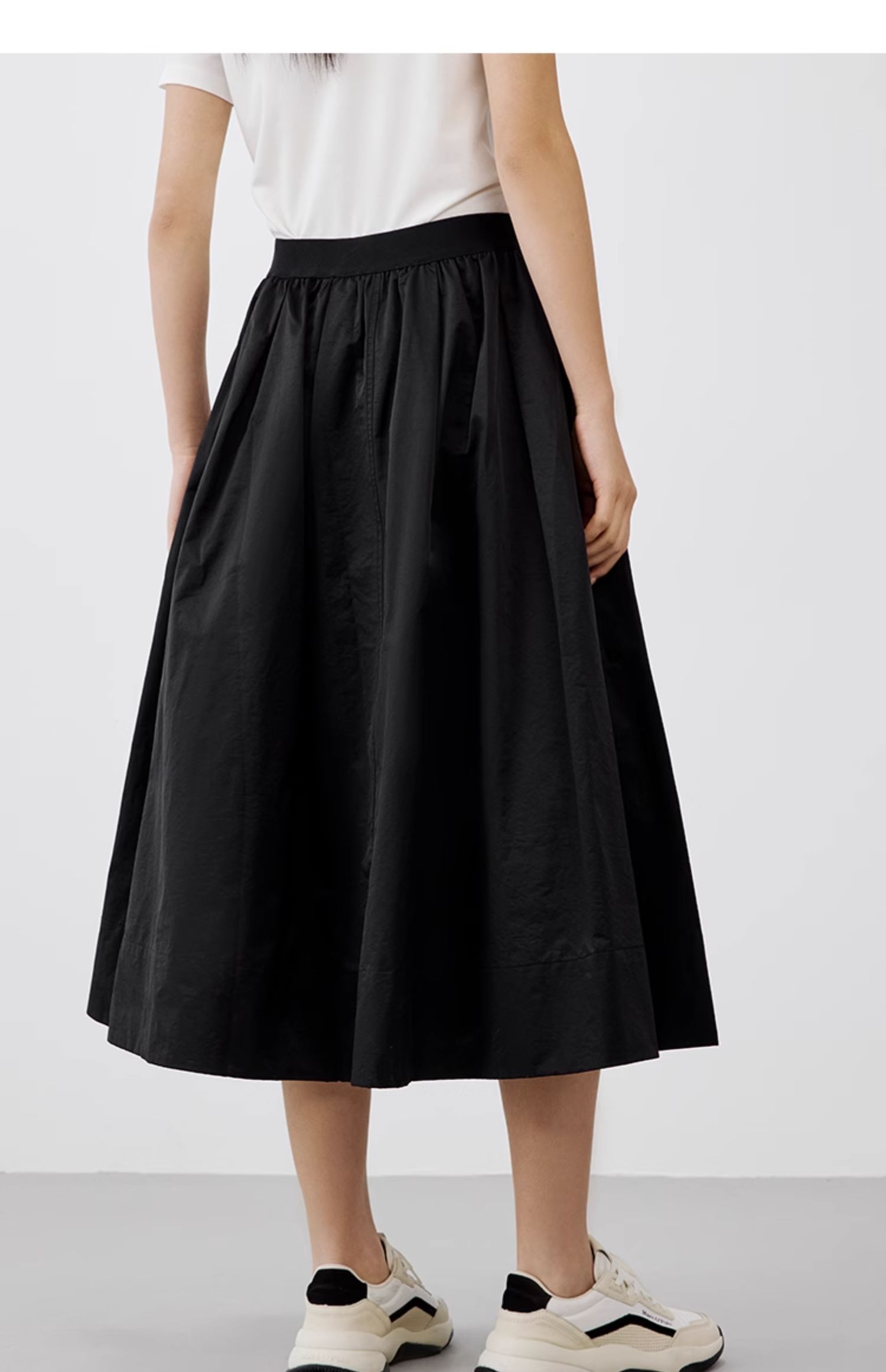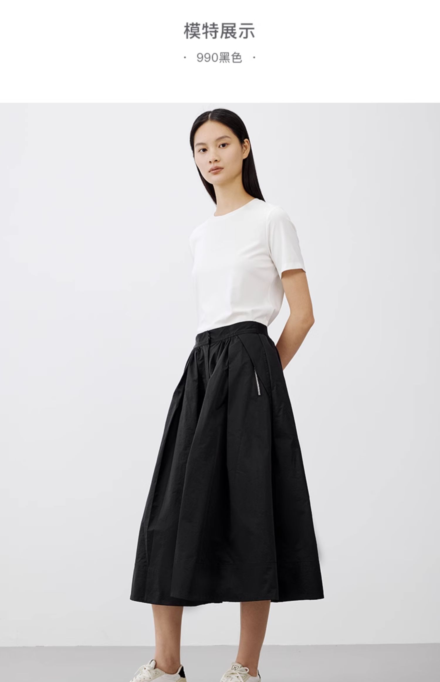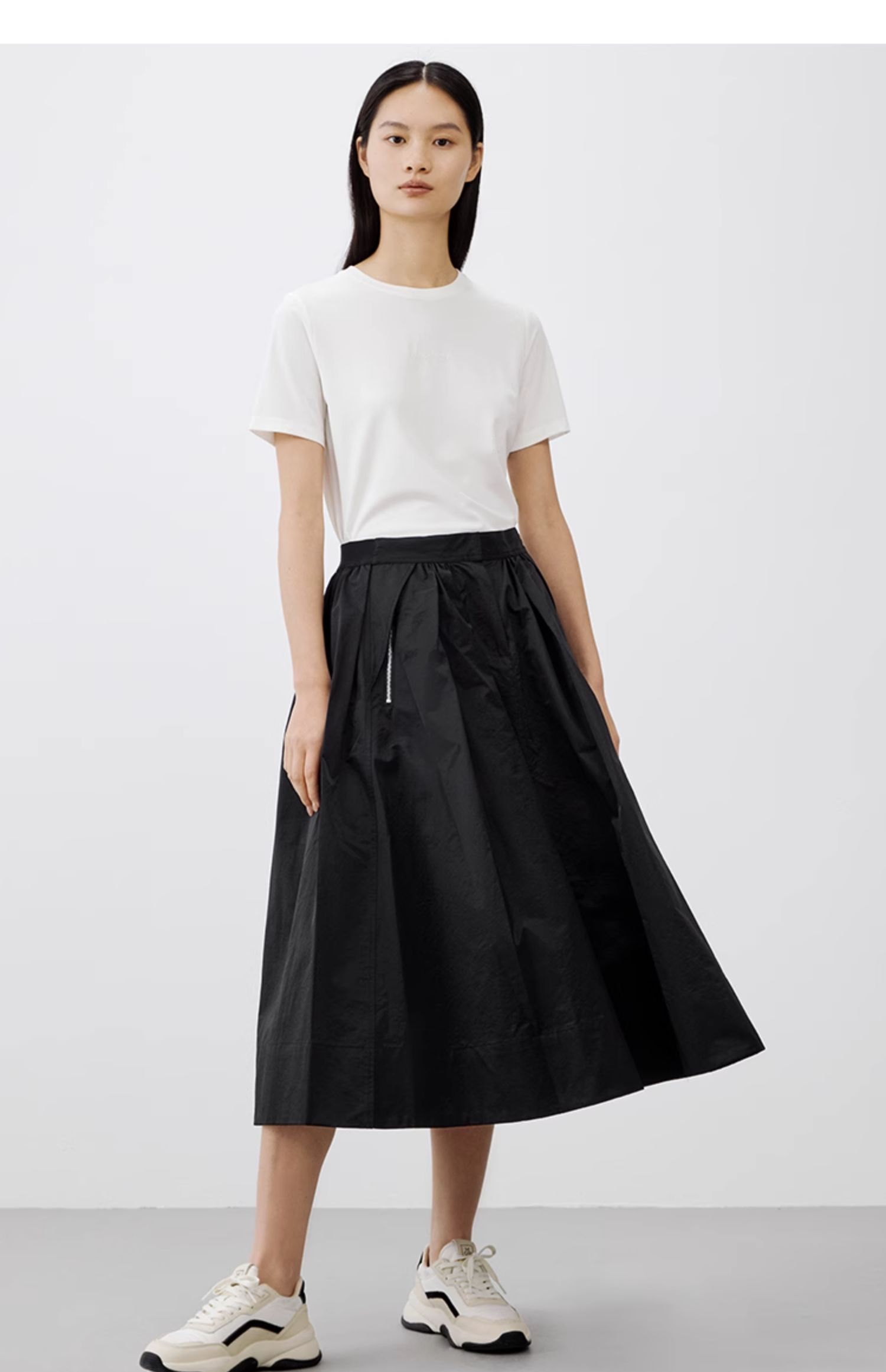 【吴倩同款】MOP 春季新款简约尼龙中长款大码A字型半身百褶裙女