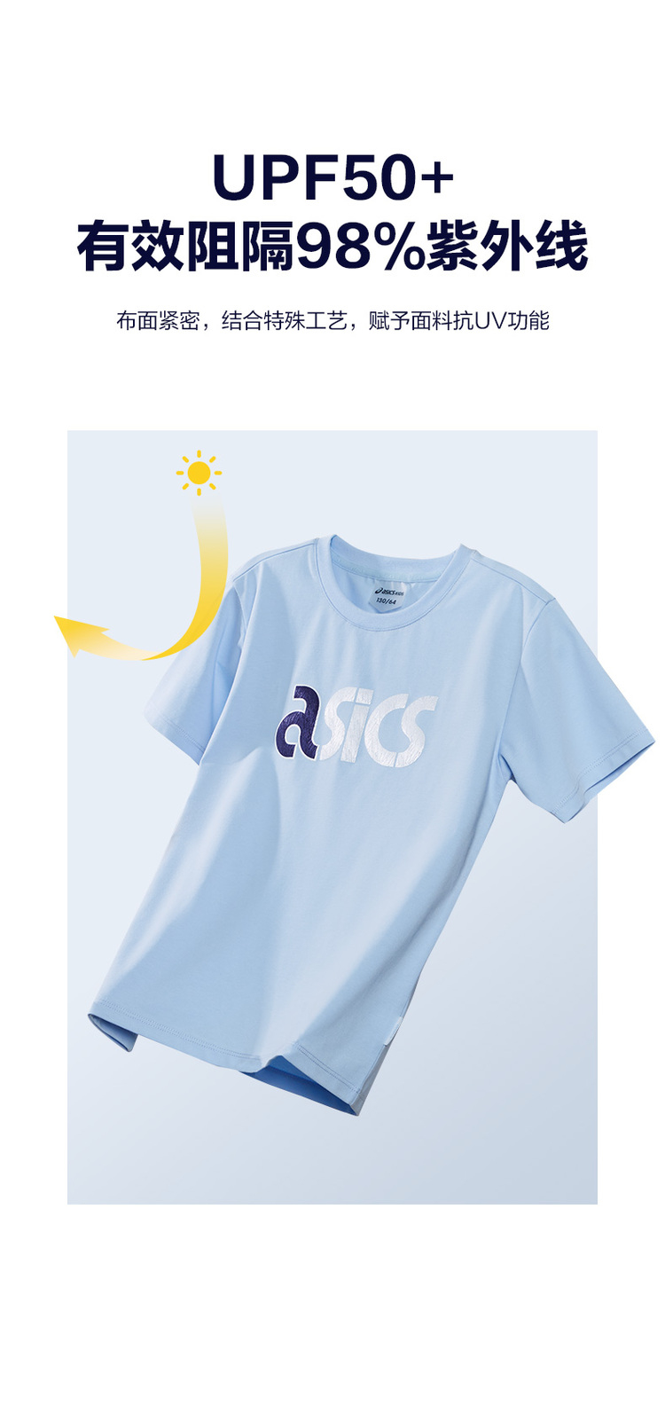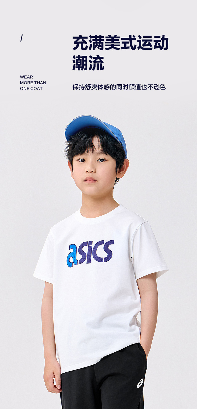 ASICS/亚瑟士童装2023新款夏季运动休闲男女儿童针织短袖T恤
