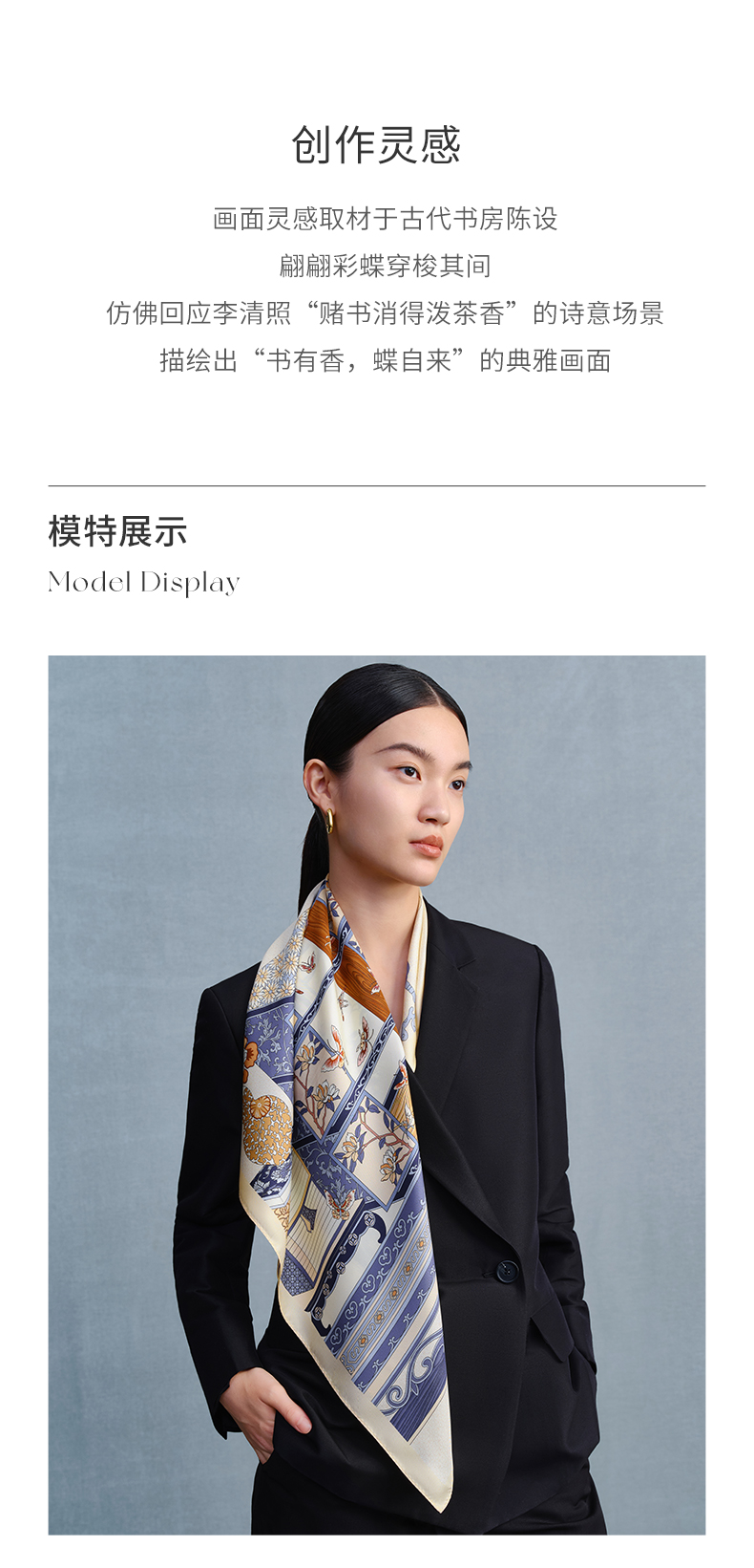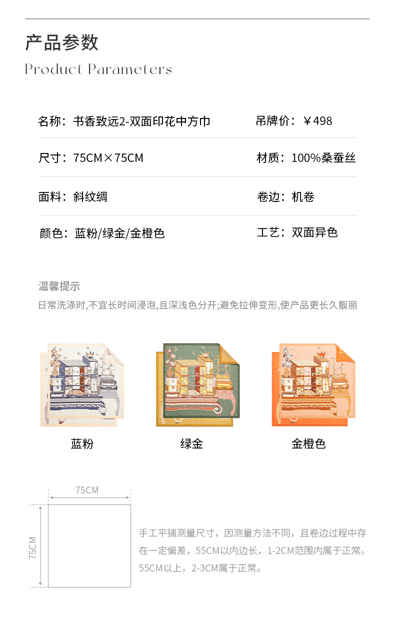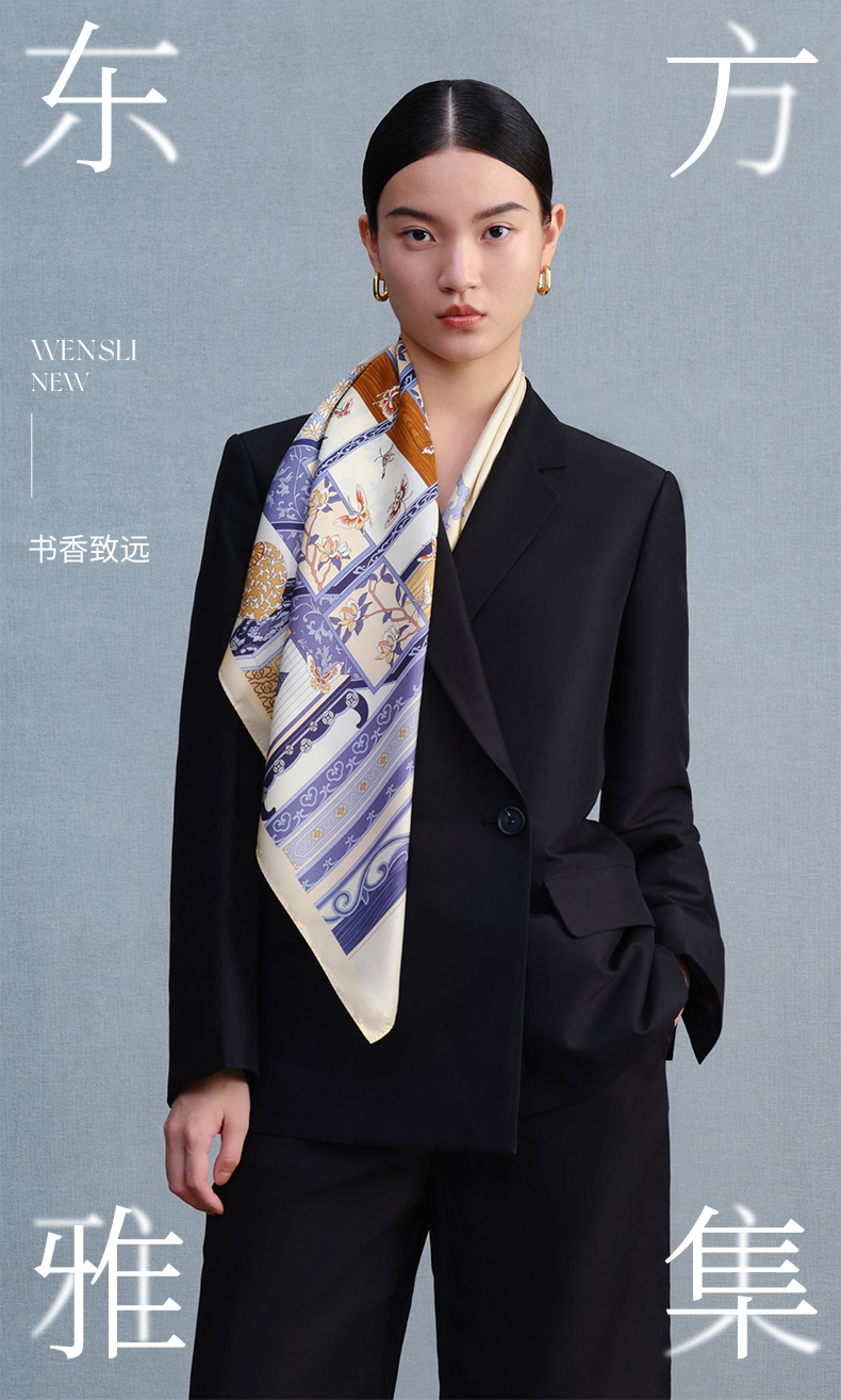 万事利“书香致远2”75厘米双面印花中方巾