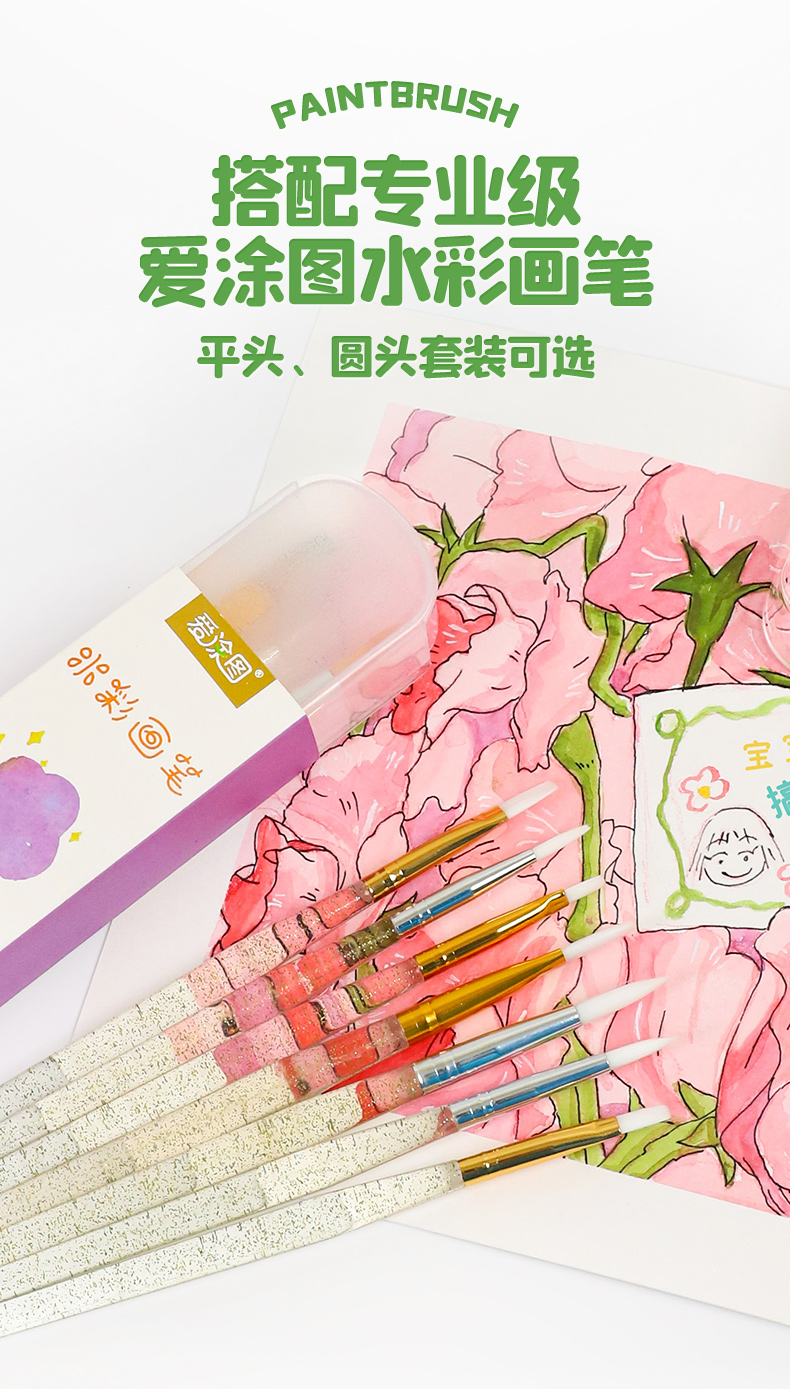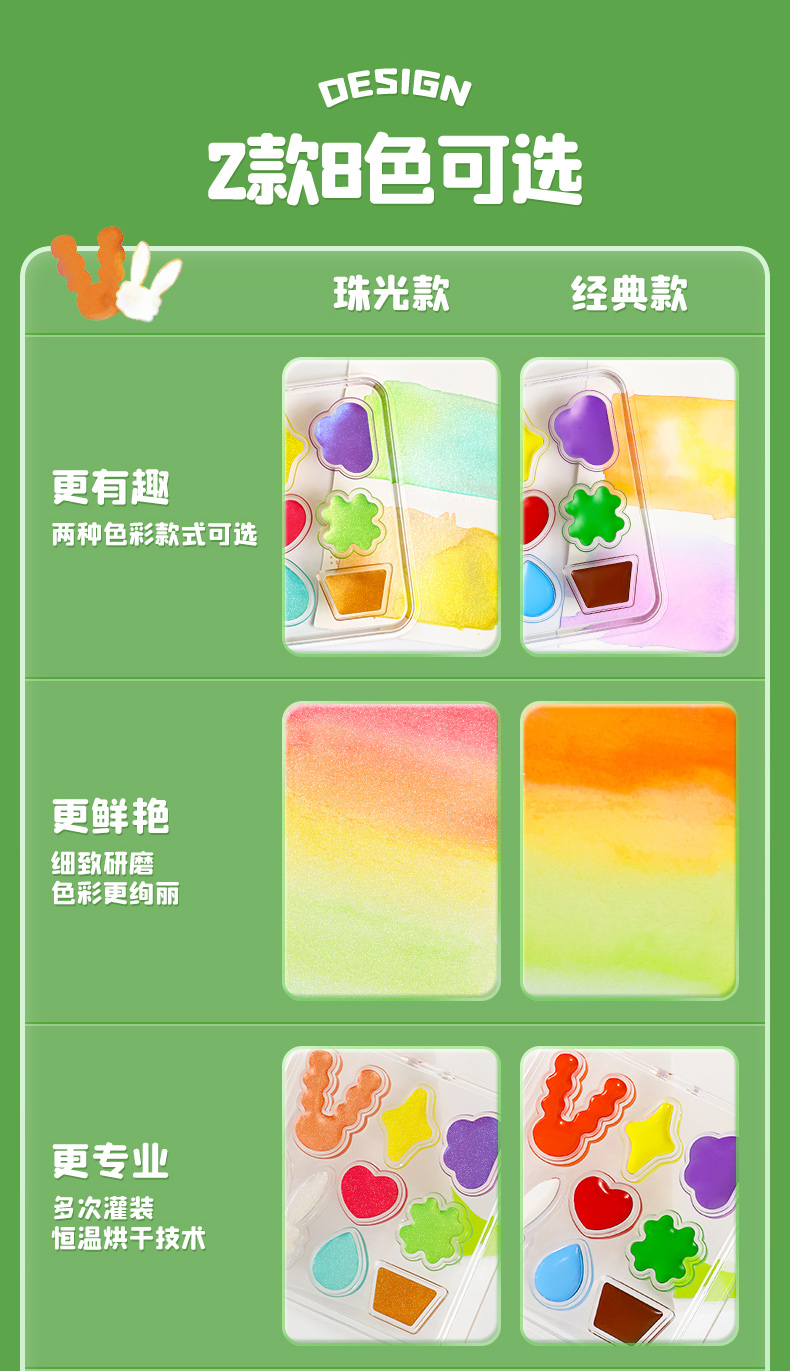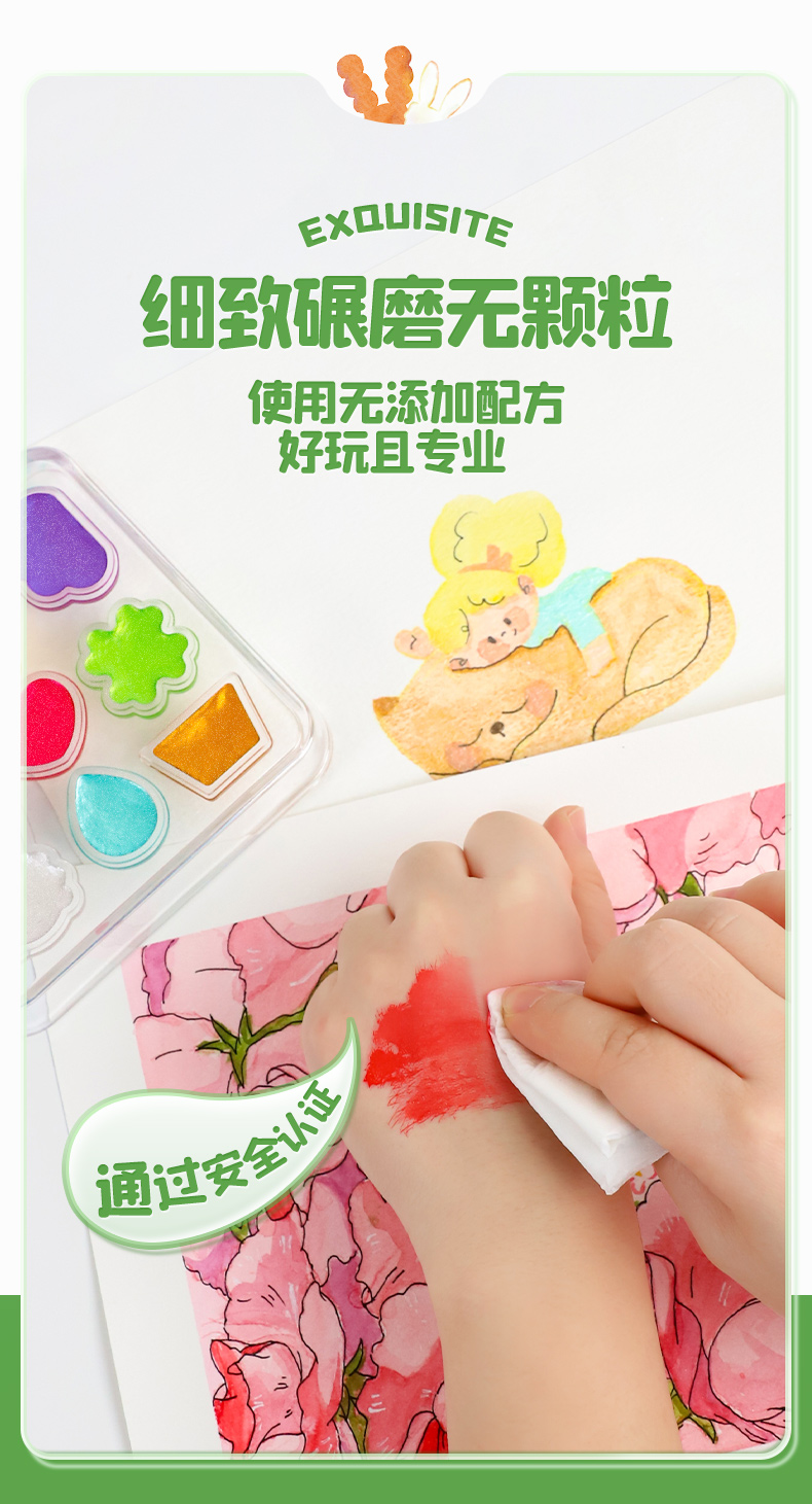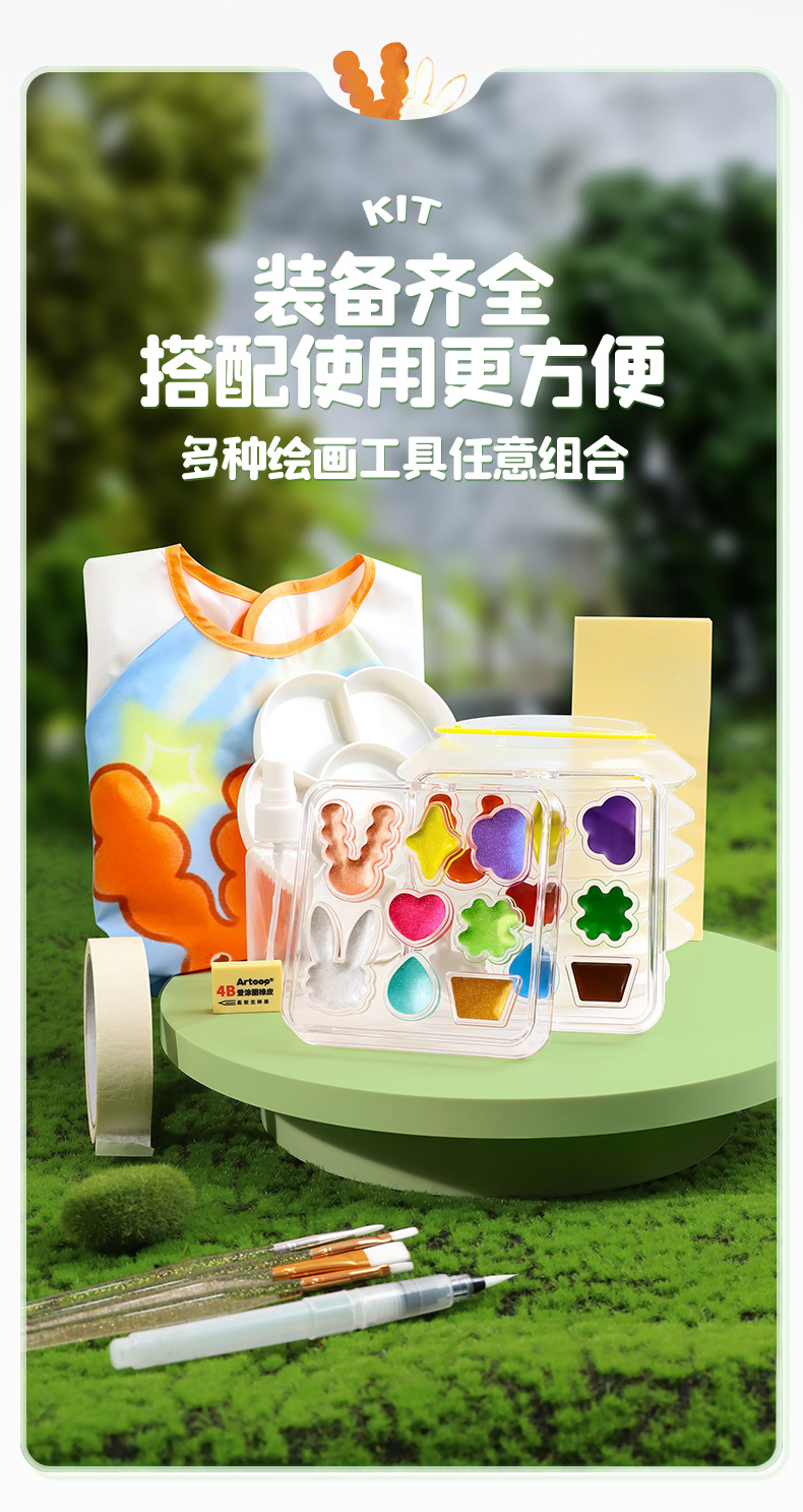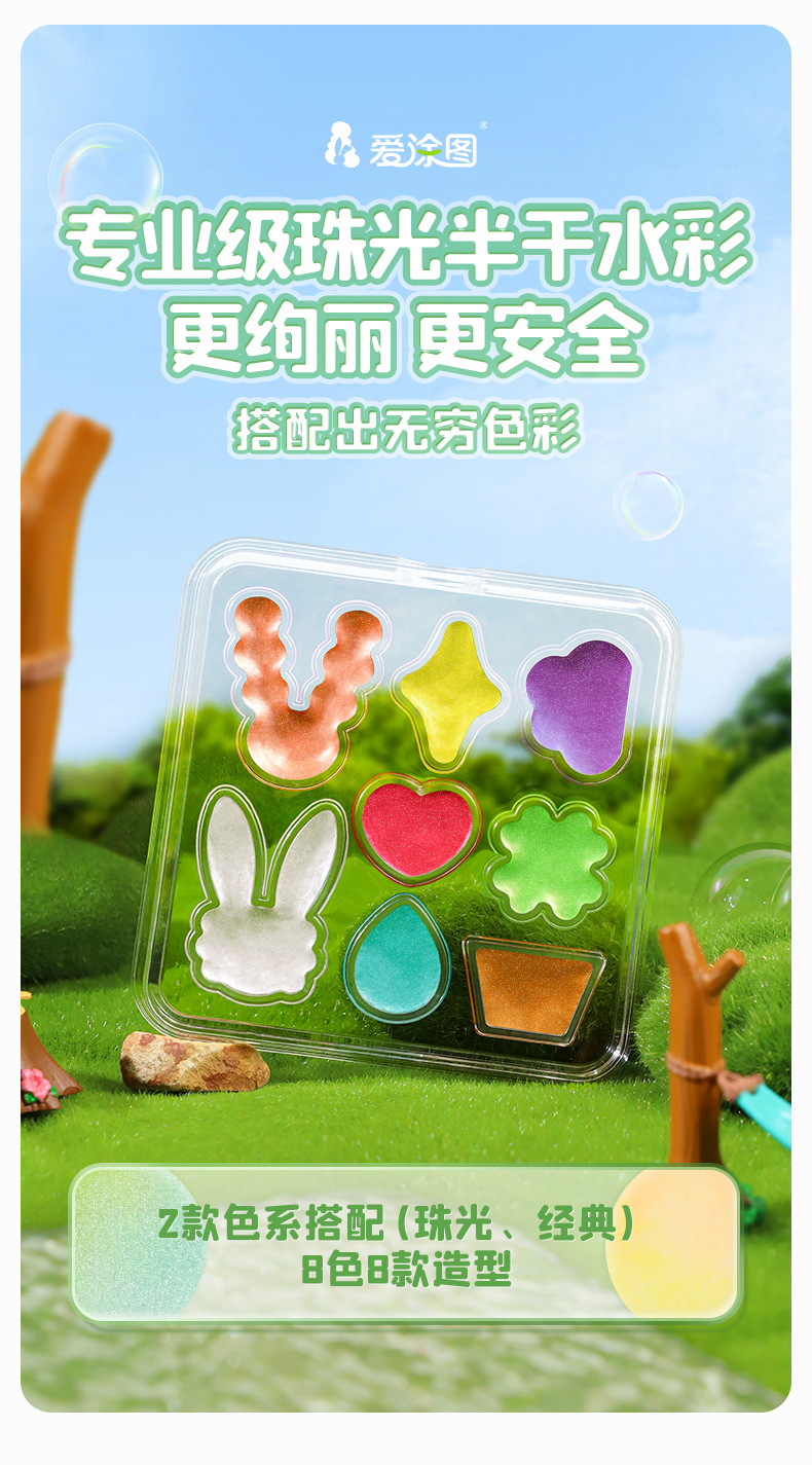 爱涂图水彩颜料儿童8色固体水彩水粉画颜料工具套装美术专用便携分装儿童水彩颜料无毒可水洗小学生初学者绘画线稿