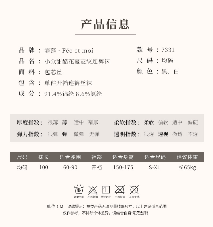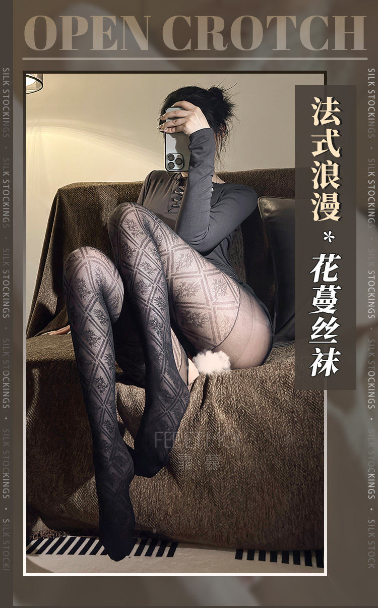 霏慕 小众甜酷花蔓菱纹连裤袜7331 情趣内衣性感纯欲免脱透肤黑丝丝袜