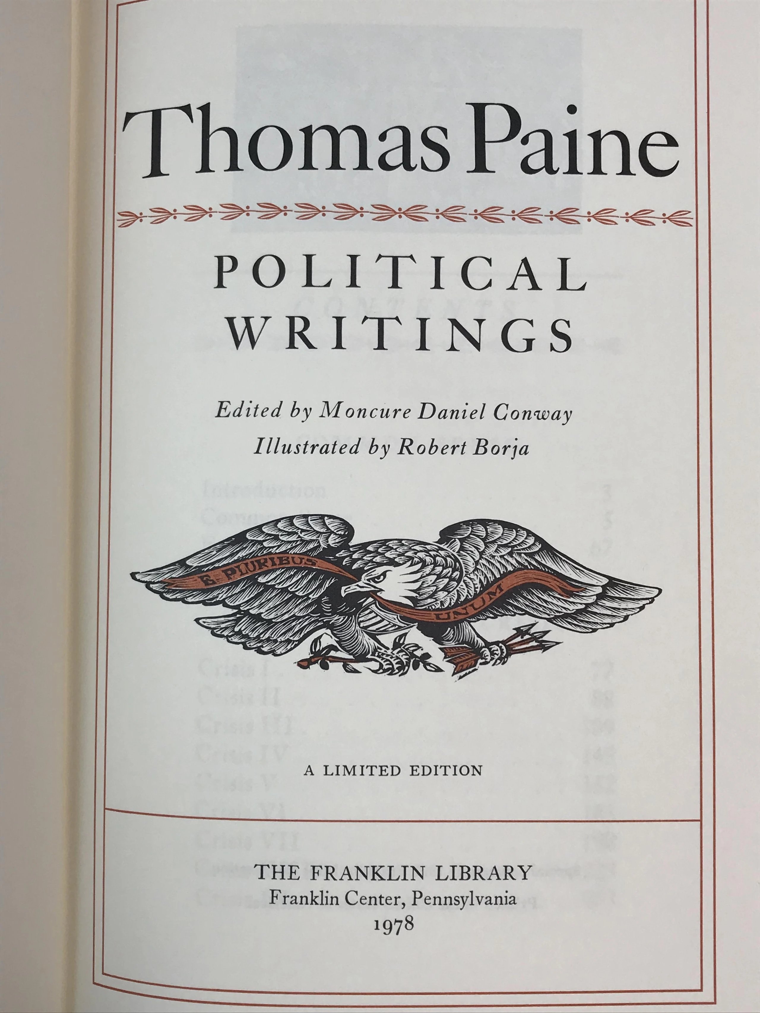 限量版!含藏书票 托马斯・潘恩《托马斯・潘恩政治文选》富兰克林图书馆豪华皮装本
