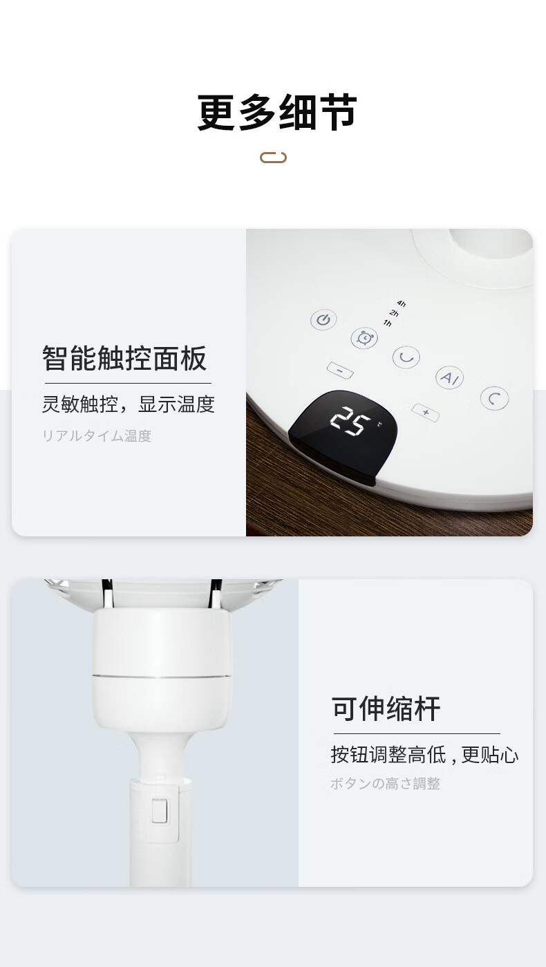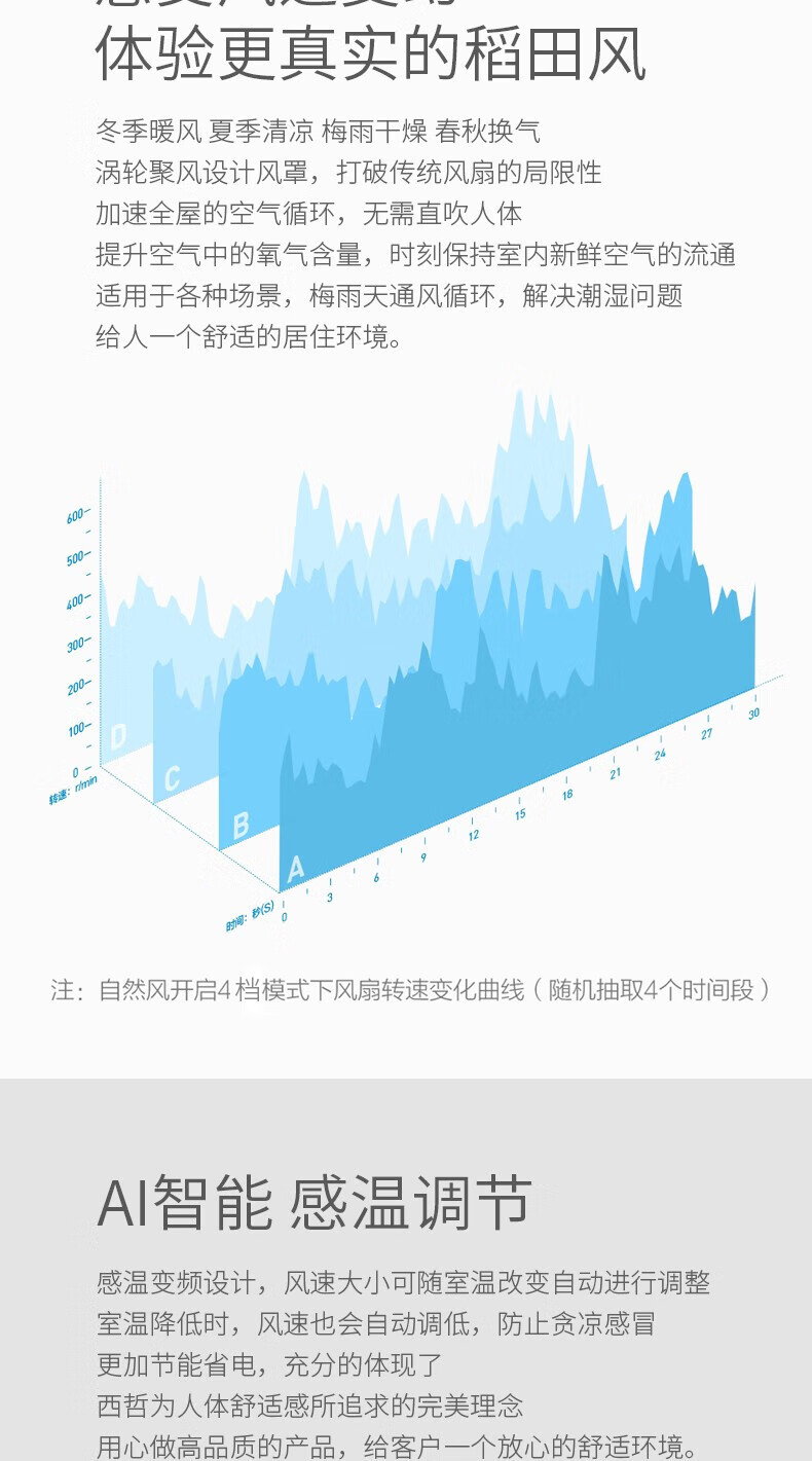 3.解决传统风扇易被噪音大、出风硬、久吹头痛、体积大占空间、功能单一等问题,给你最舒适的健康自然风